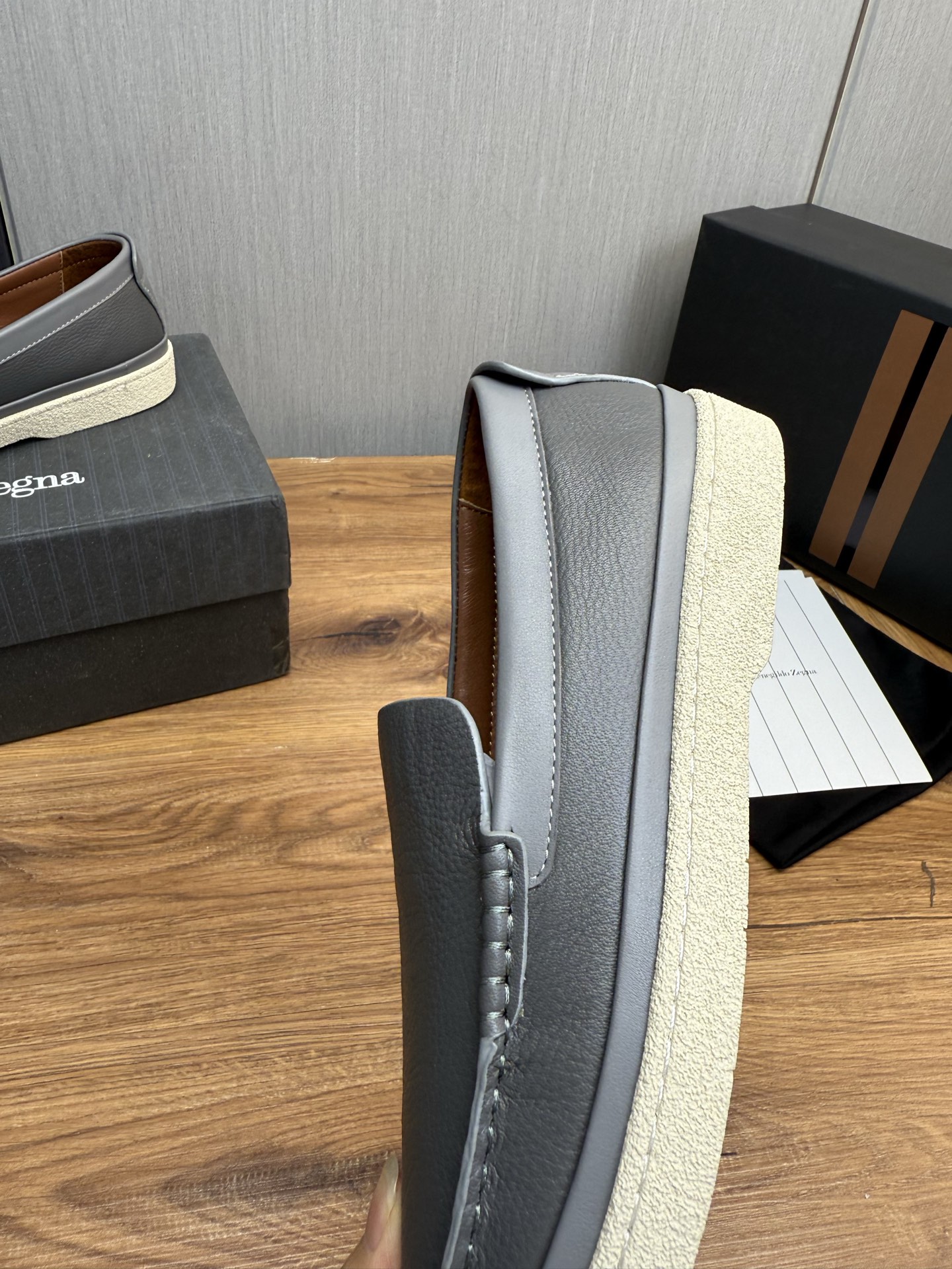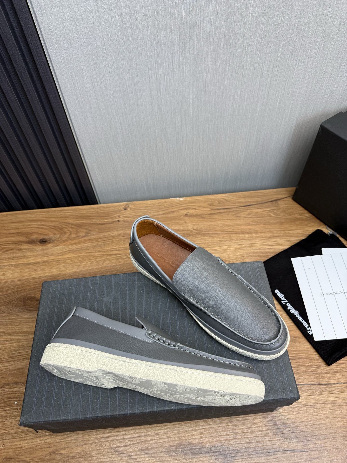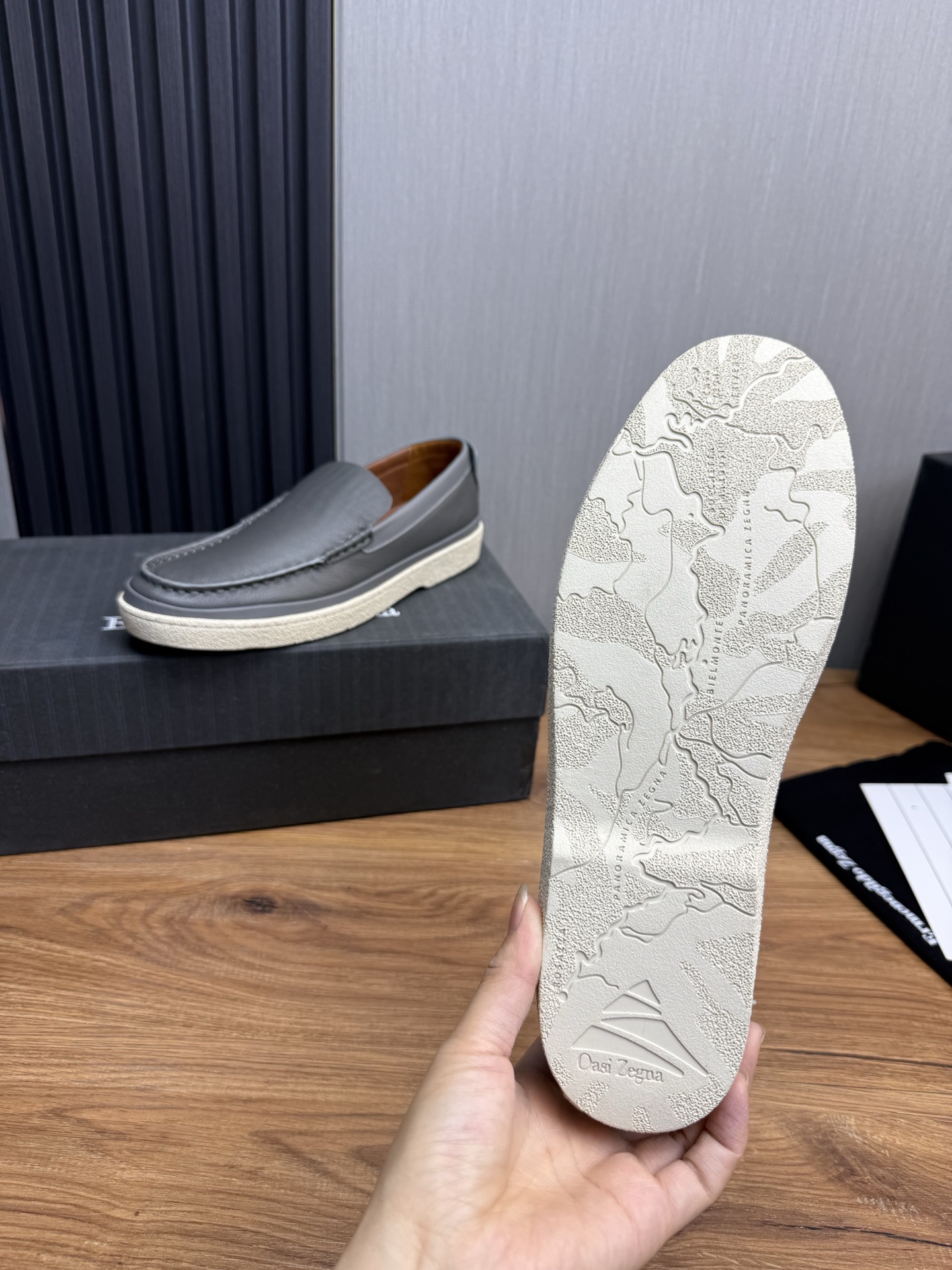 这款鞋子是AAAAA 1:1 质量 (非常棒). 使用了和原版一模一样的材料. 商标部分也保持了和杰尼亚/Zegna一样. 图片拍摄是实物鞋子拍摄, 您所收到的实物保证和我们图片一模一样.