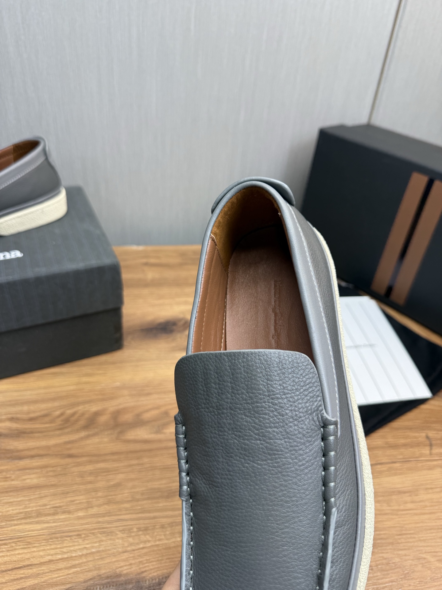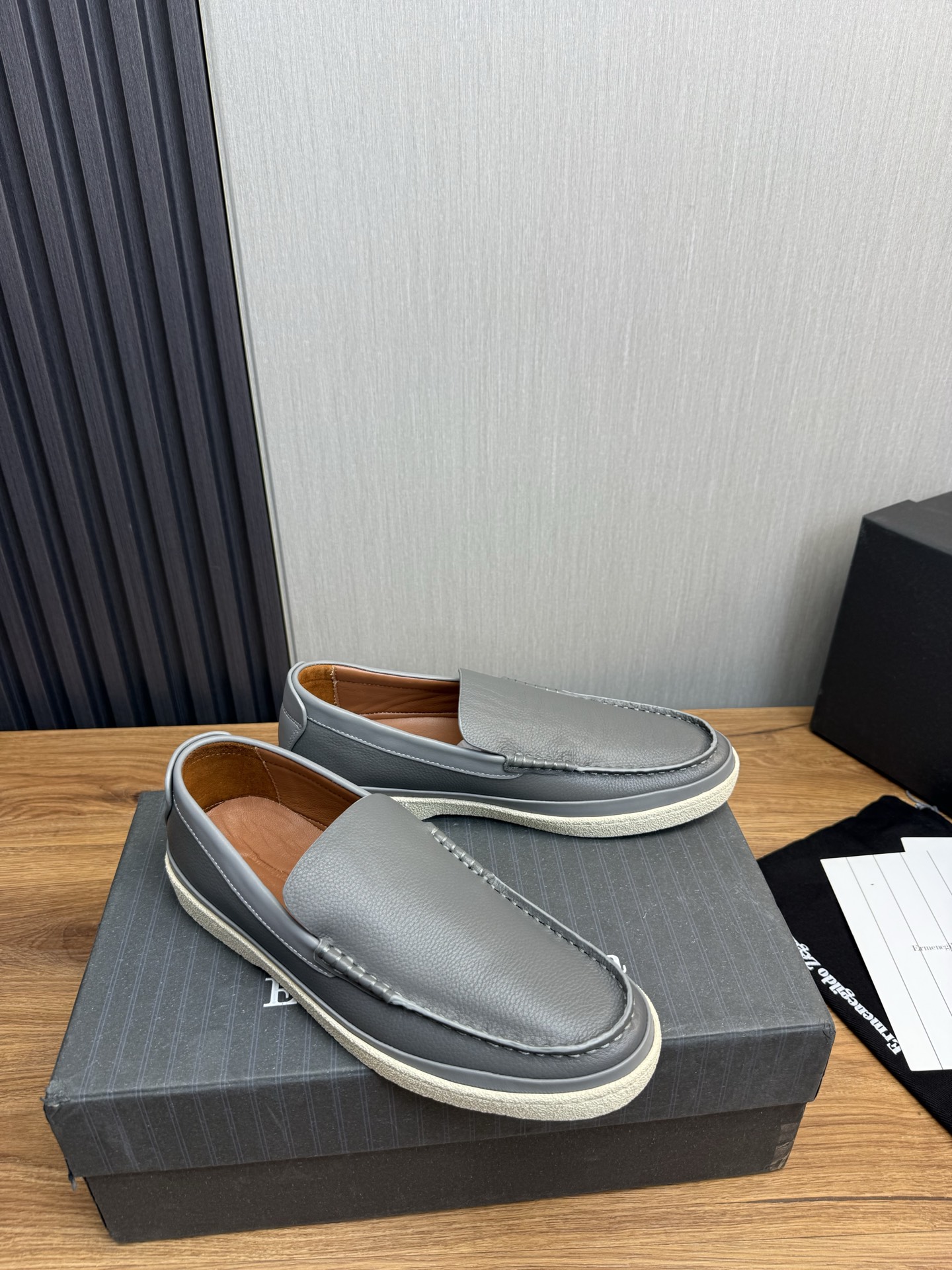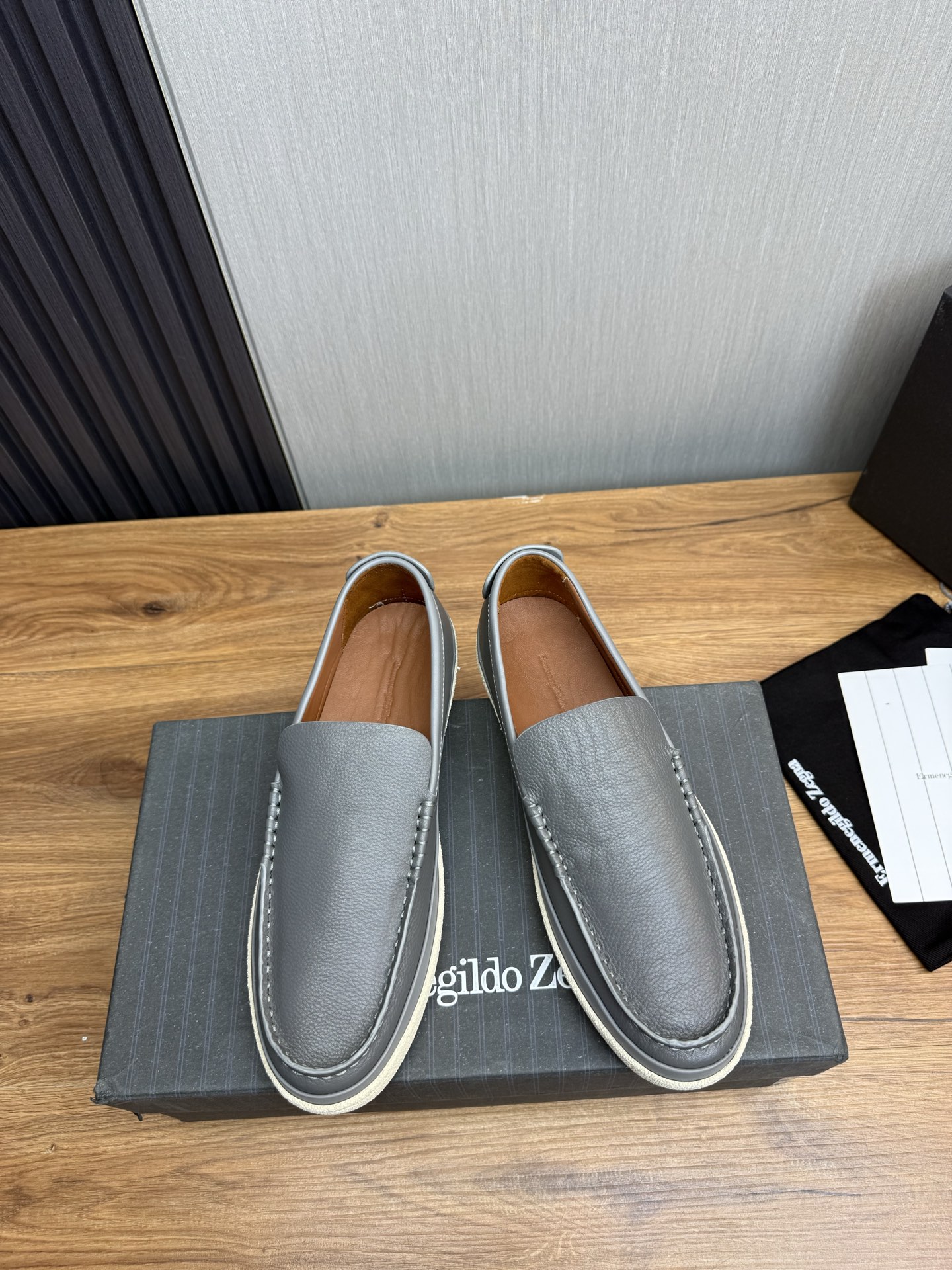 这款鞋子是AAAAA 1:1 质量 (非常棒). 使用了和原版一模一样的材料. 商标部分也保持了和杰尼亚/Zegna一样. 图片拍摄是实物鞋子拍摄, 您所收到的实物保证和我们图片一模一样.