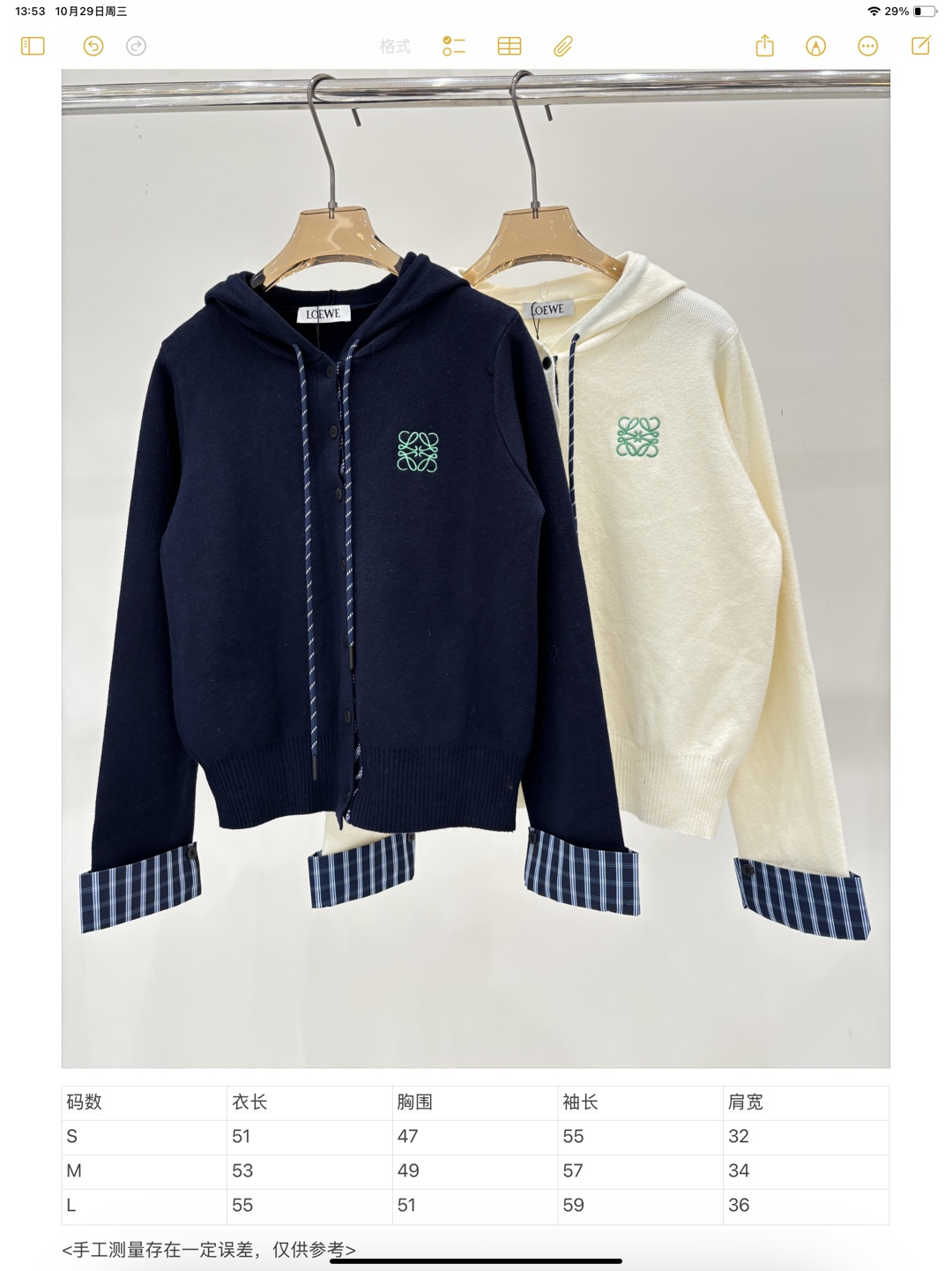 这款衣服是AAAAA 1:1 质量 (非常棒). 使用了和原版一模一样的材料. 商标部分也保持了和罗意威/Loewe一样. 图片拍摄是实物衣服拍摄, 您所收到的实物保证和我们图片一模一样.