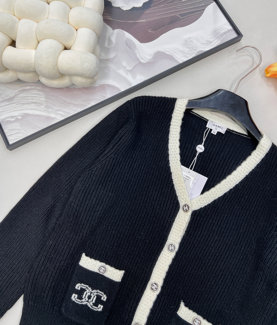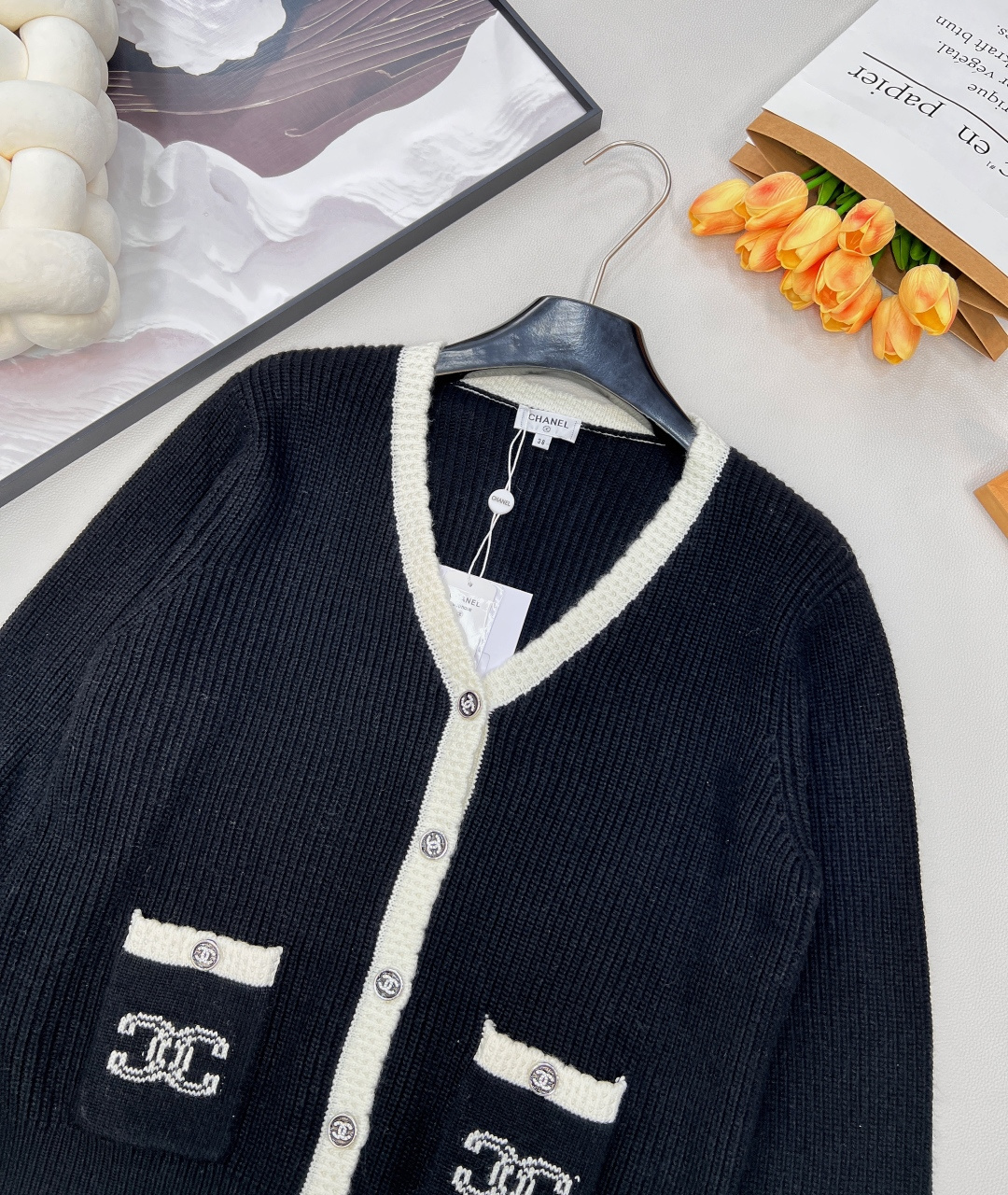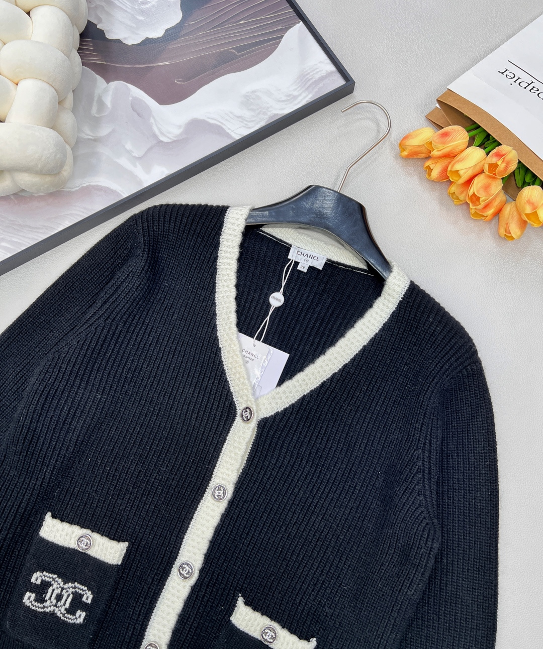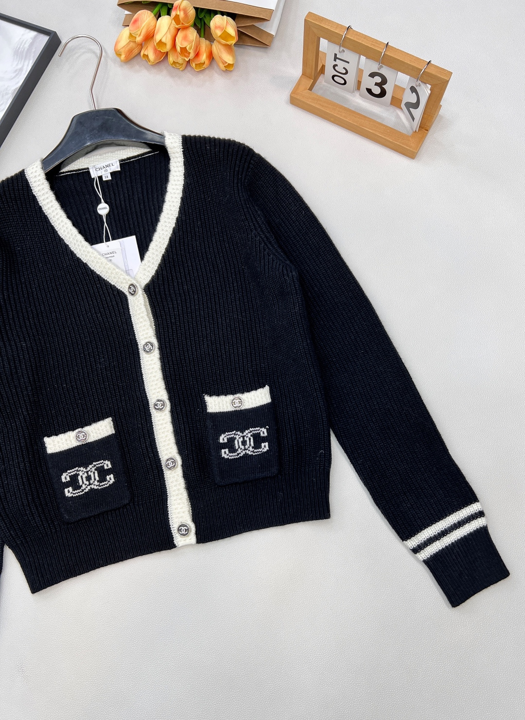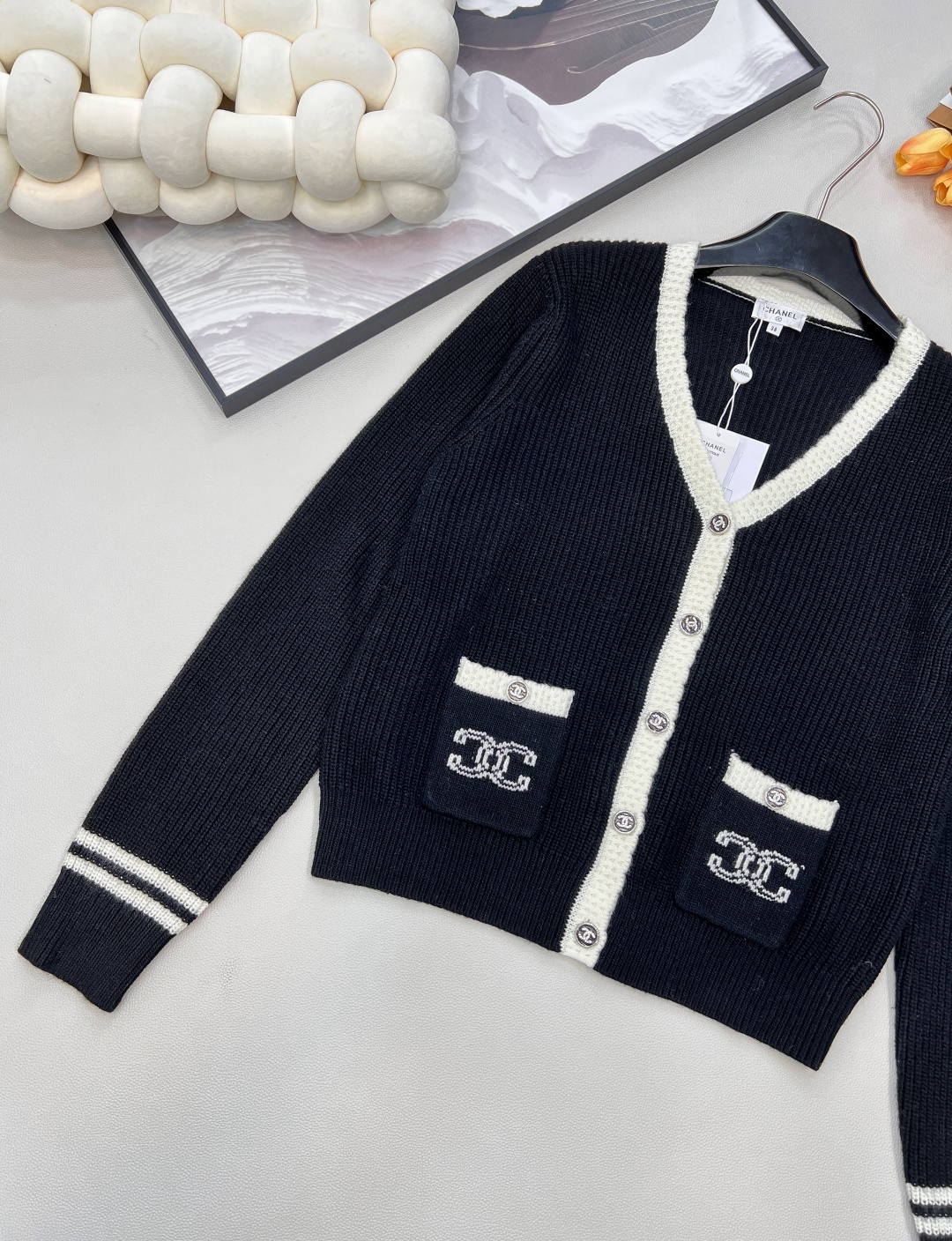 这款衣服是AAAAA 1:1 质量 (非常棒). 使用了和原版一模一样的材料. 商标部分也保持了和香奈儿/Chanel一样. 图片拍摄是实物衣服拍摄, 您所收到的实物保证和我们图片一模一样.