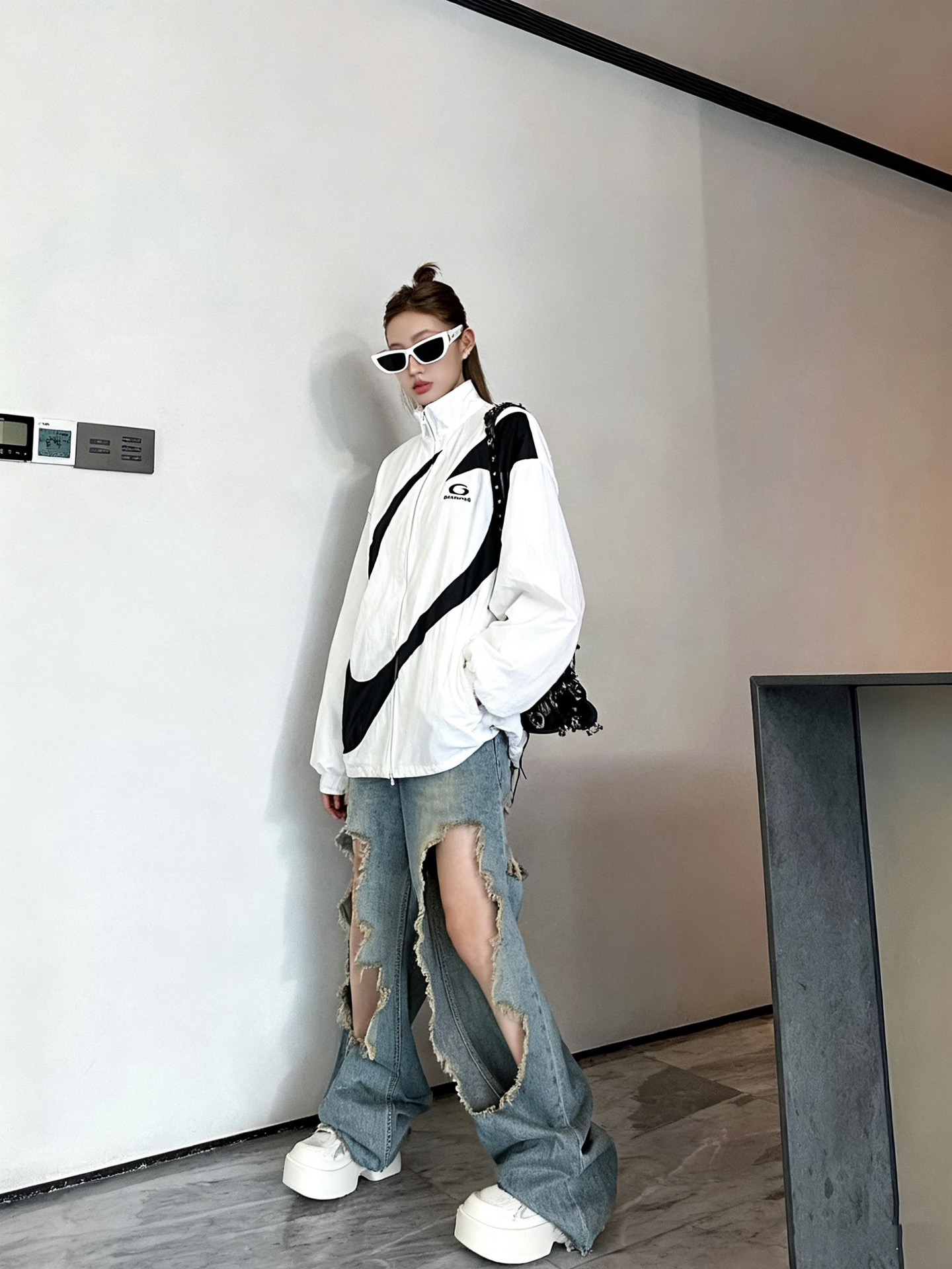 这款衣服是AAAAA 1:1 质量 (非常棒). 使用了和原版一模一样的材料. 商标部分也保持了和巴黎世家/Balenciaga一样. 图片拍摄是实物衣服拍摄, 您所收到的实物保证和我们图片一模一样.