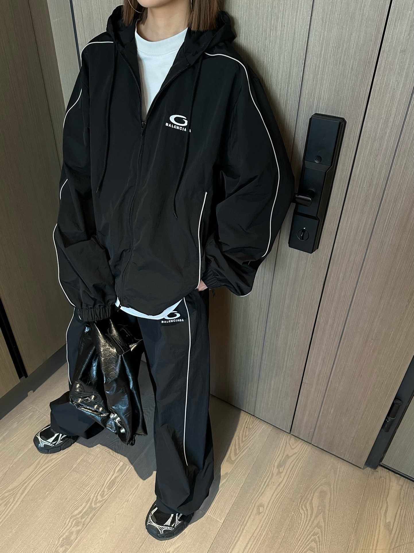 这款衣服是AAAAA 1:1 质量 (非常棒). 使用了和原版一模一样的材料. 商标部分也保持了和巴黎世家/Balenciaga一样. 图片拍摄是实物衣服拍摄, 您所收到的实物保证和我们图片一模一样.