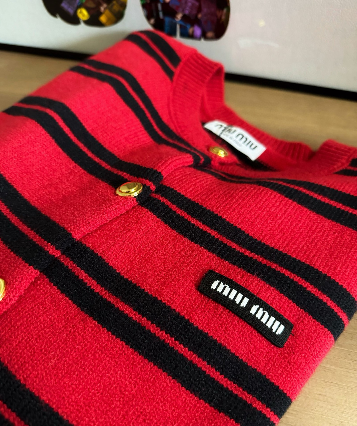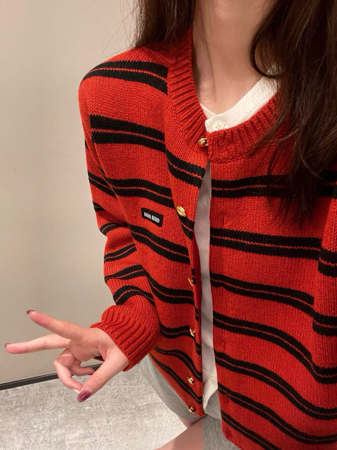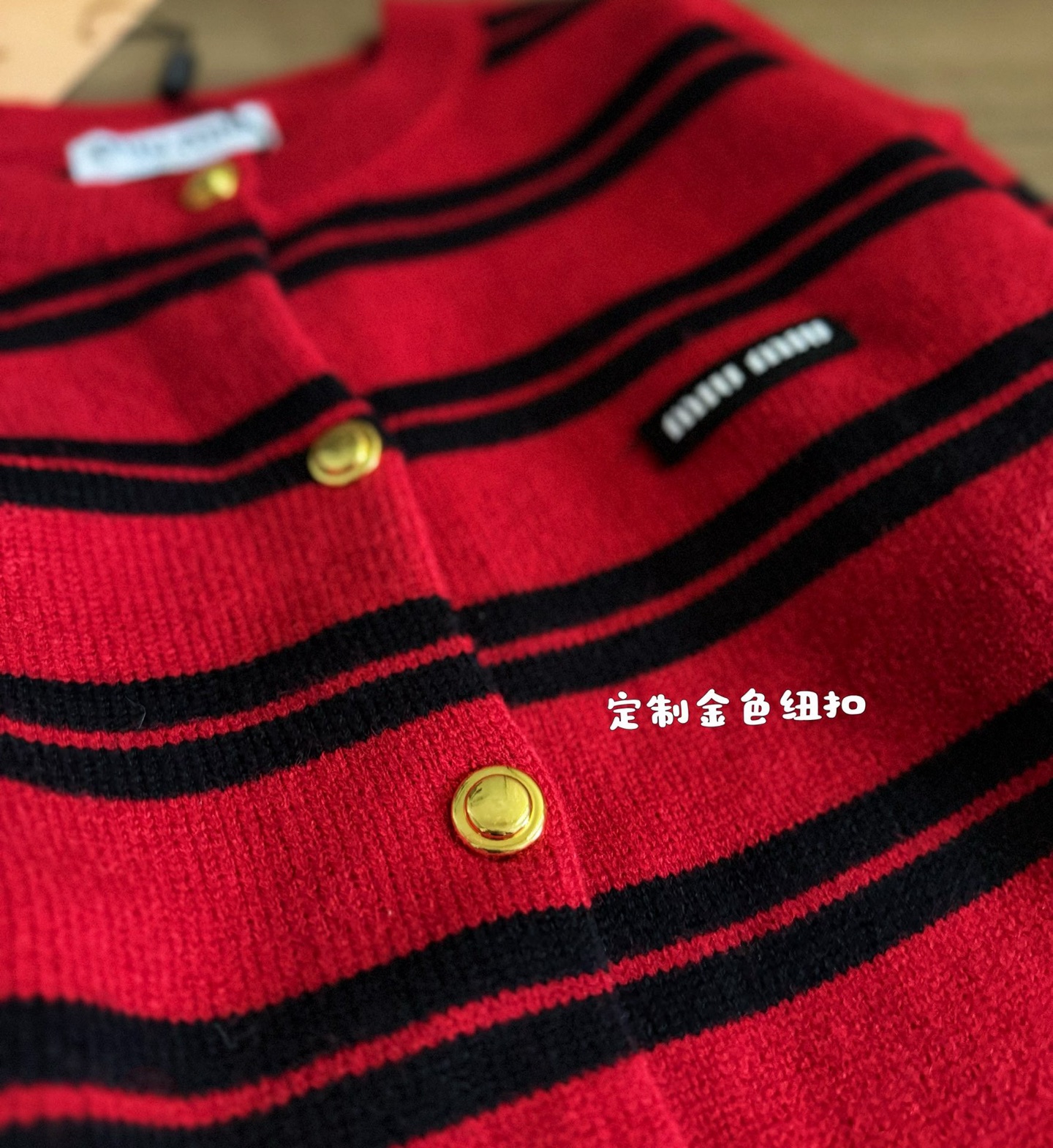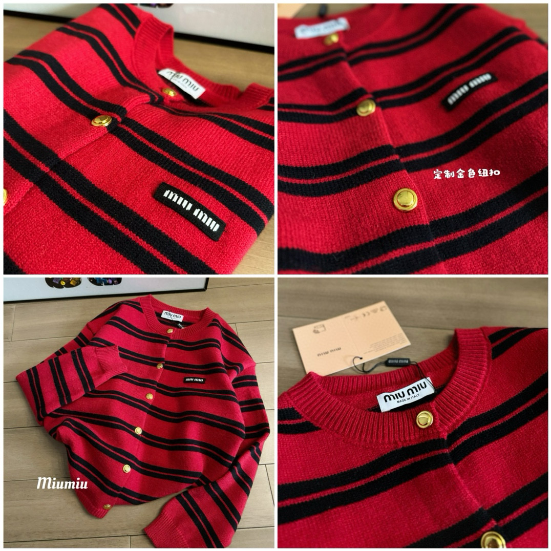这款衣服是AAAAA 1:1 质量 (非常棒). 使用了和原版一模一样的材料. 商标部分也保持了和缪缪/Miu Miu一样. 图片拍摄是实物衣服拍摄, 您所收到的实物保证和我们图片一模一样.