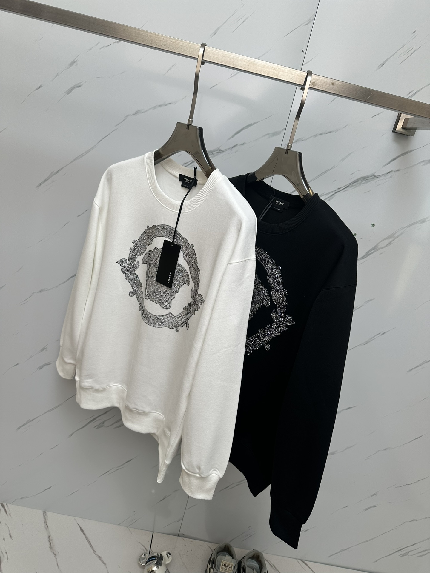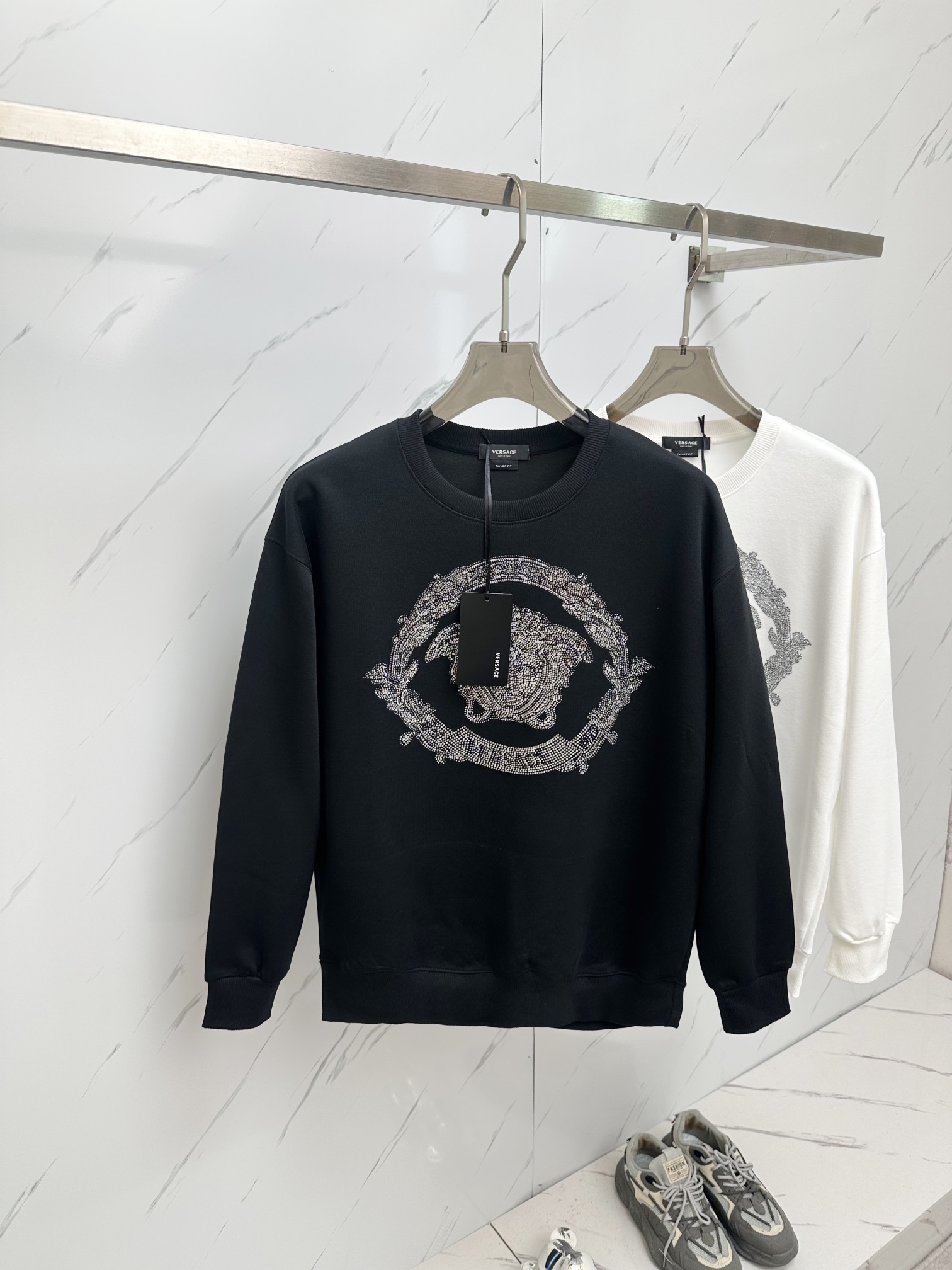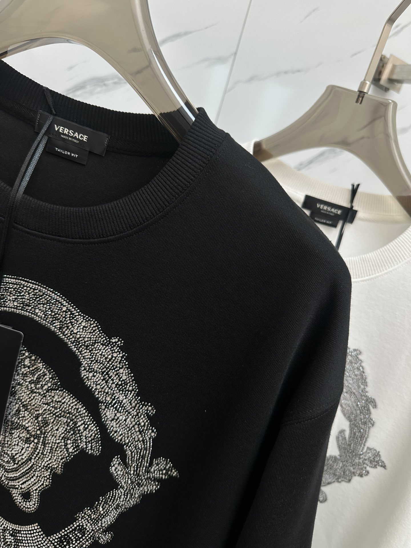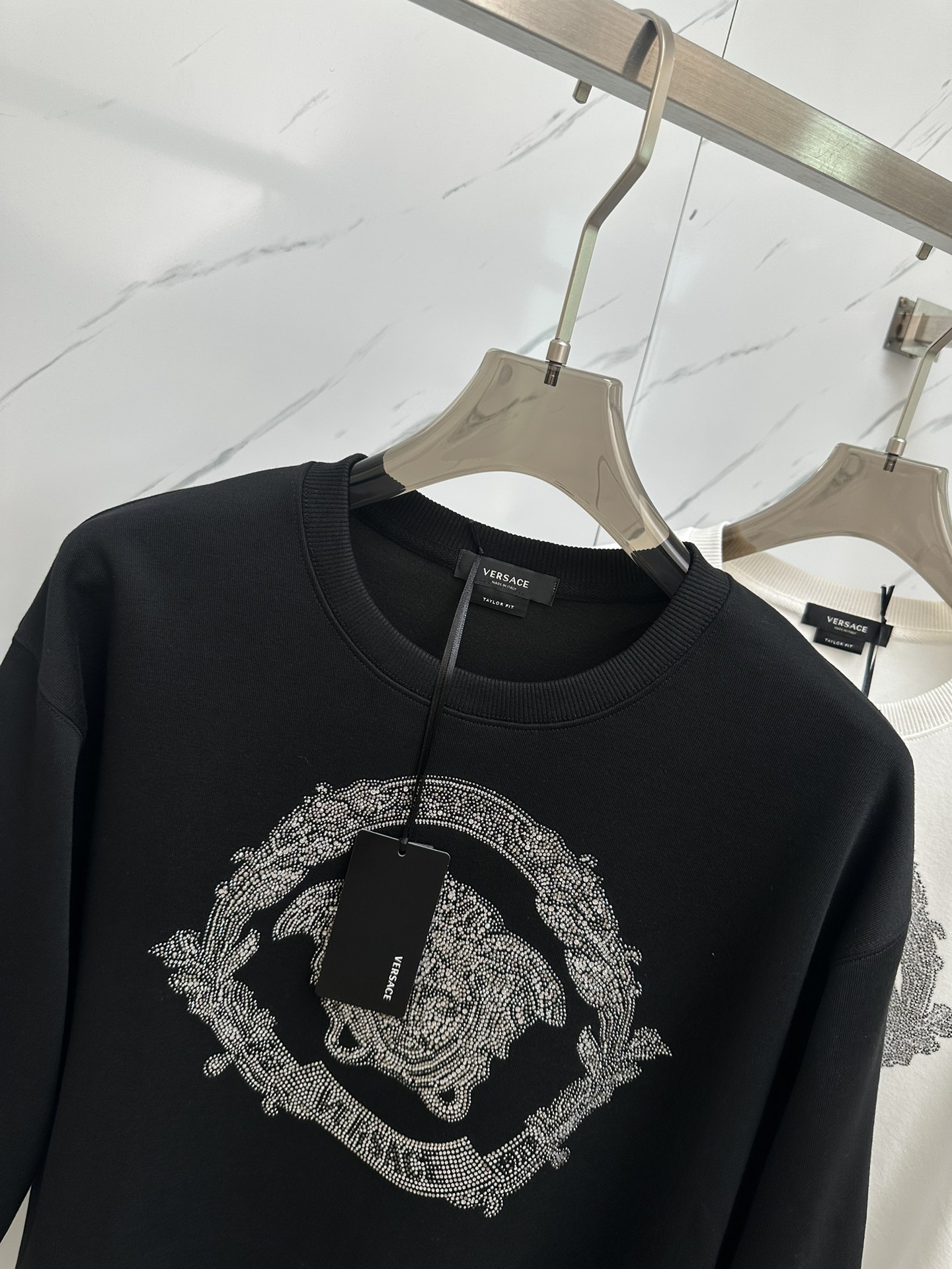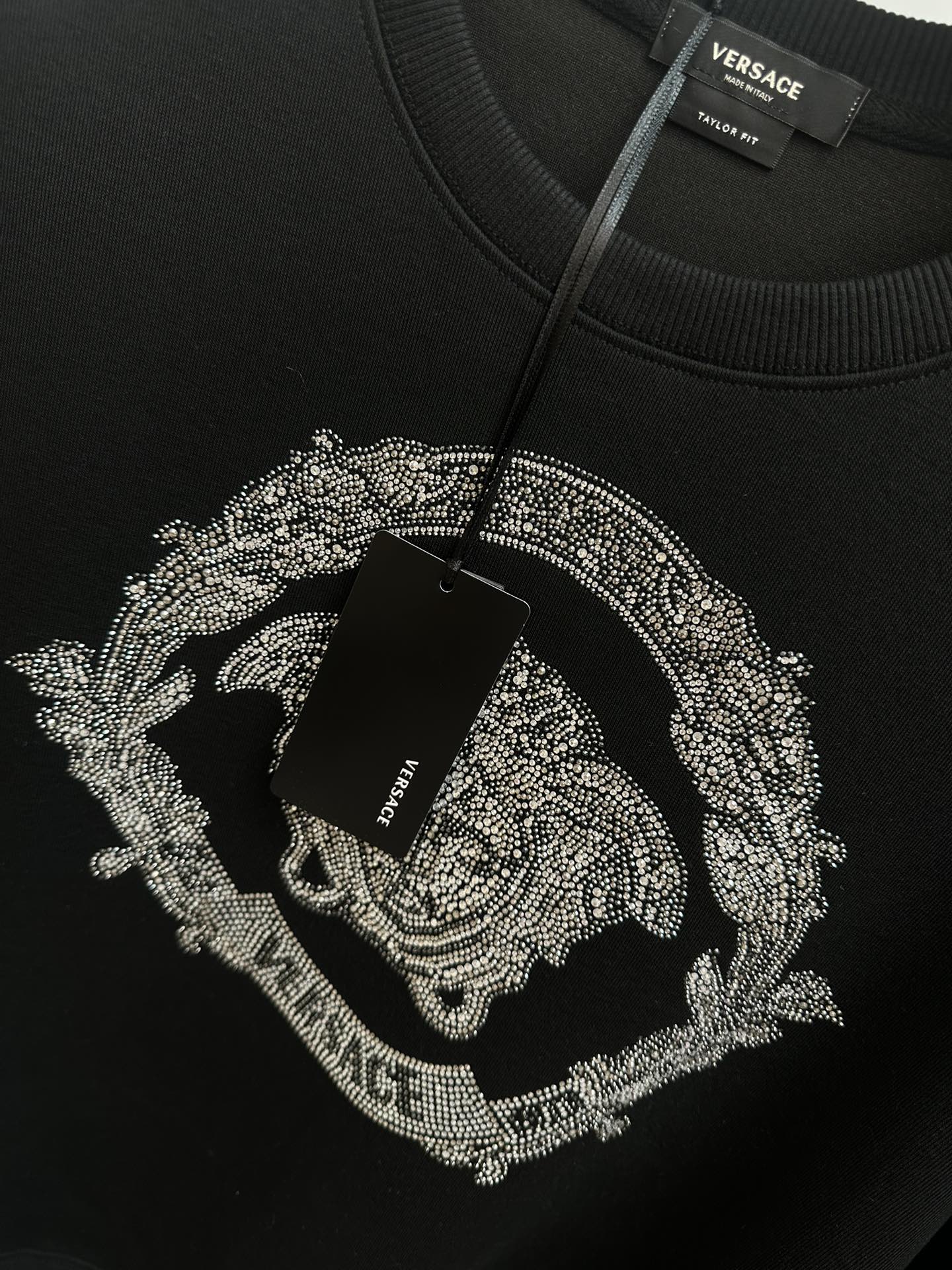 这款衣服是AAAAA 1:1 质量 (非常棒). 使用了和原版一模一样的材料. 商标部分也保持了和范思哲/Versace一样. 图片拍摄是实物衣服拍摄, 您所收到的实物保证和我们图片一模一样.