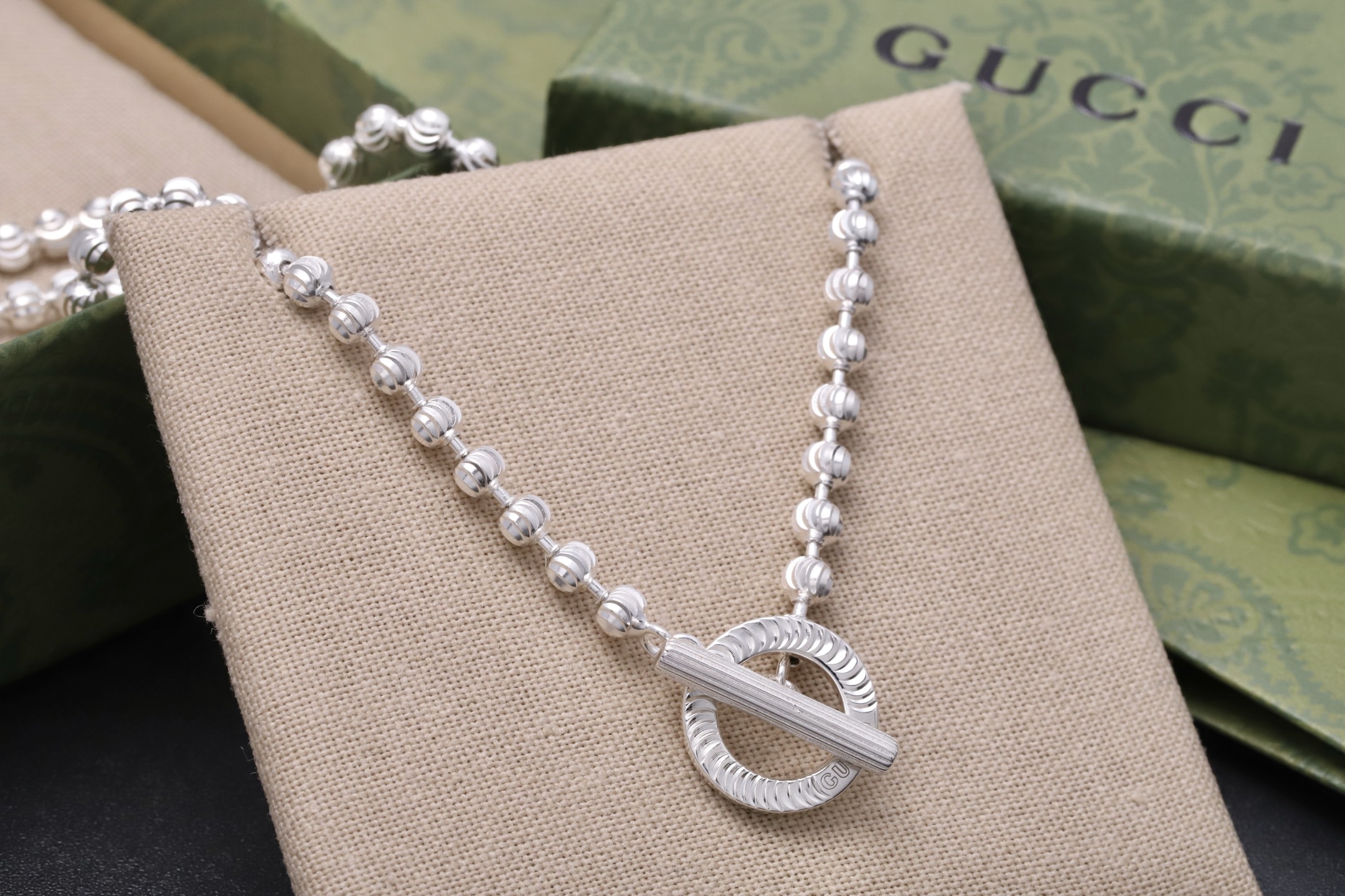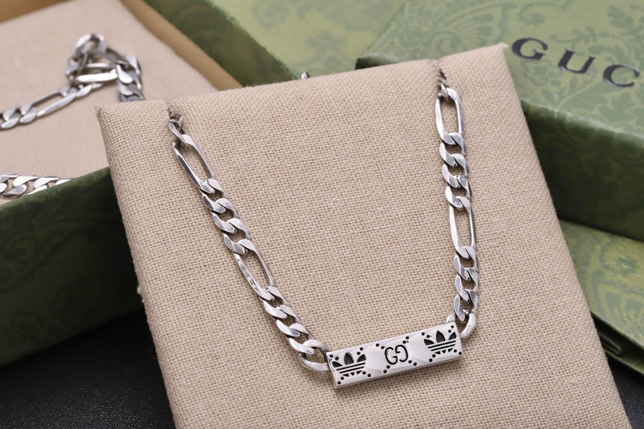 这款首饰是AAAAA 1:1 质量 (非常棒). 使用了和原版一模一样的材料. 商标部分也保持了和古奇/Gucci一样. 图片拍摄是实物首饰拍摄, 您所收到的实物保证和我们图片一模一样.