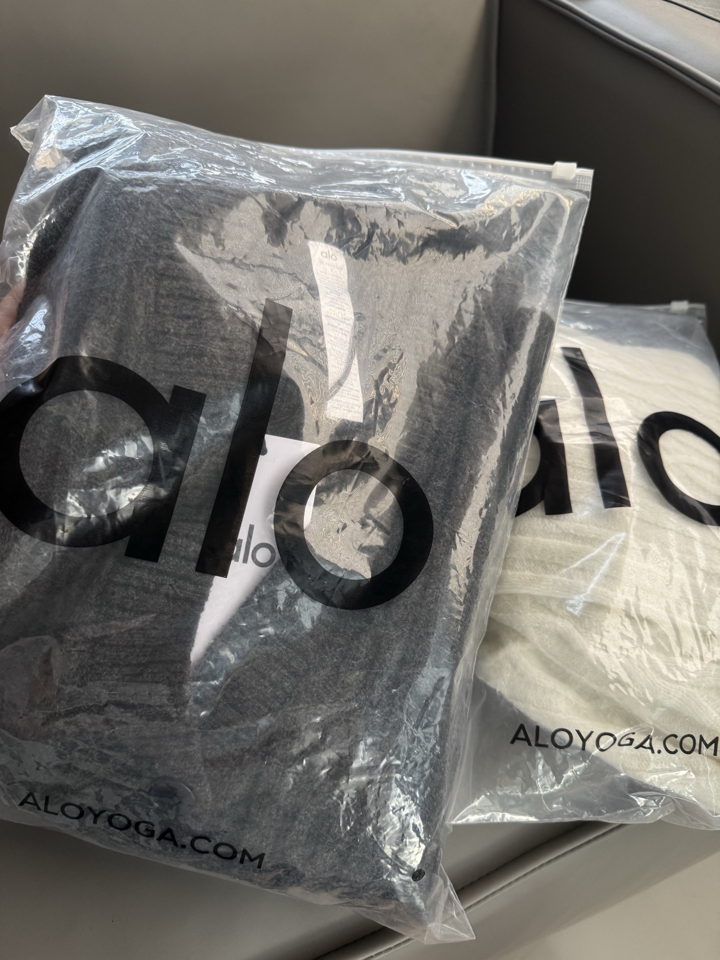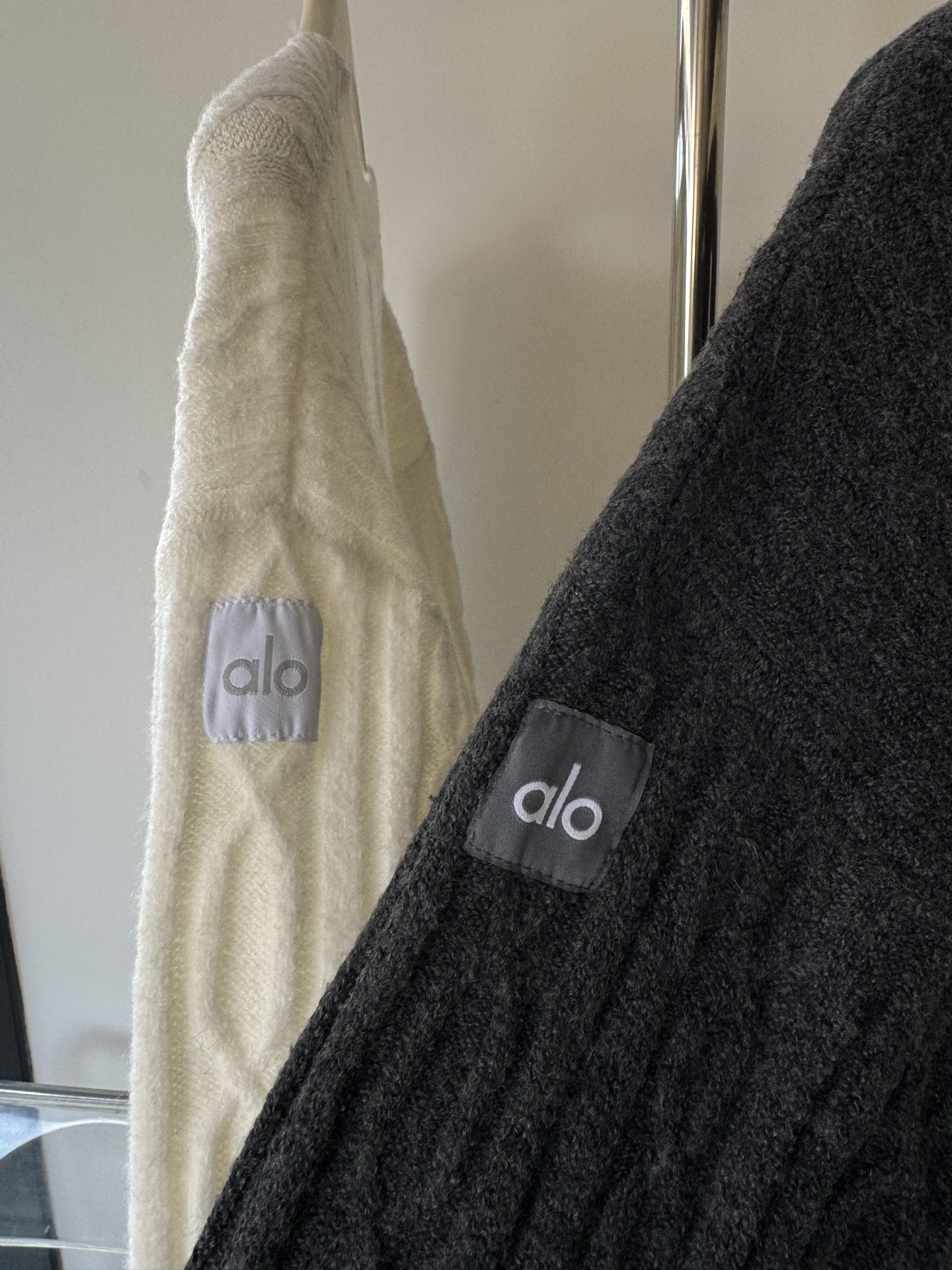 这款衣服是AAAAA 1:1 质量 (非常棒). 使用了和原版一模一样的材料. 商标部分也保持了和Alo Yoga一样. 图片拍摄是实物衣服拍摄, 您所收到的实物保证和我们图片一模一样.