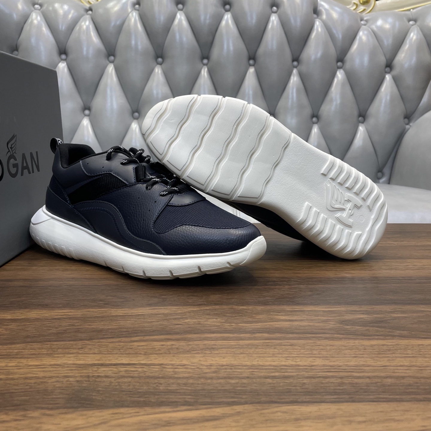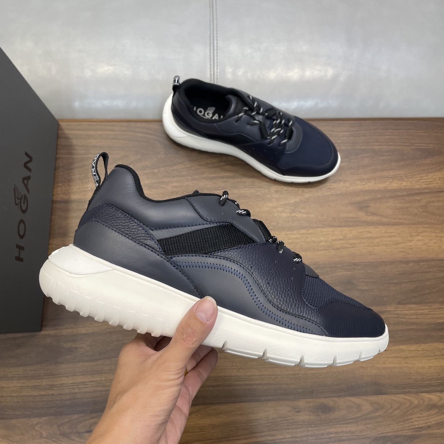 这款鞋子是AAAAA 1:1 质量 (非常棒). 使用了和原版一模一样的材料. 商标部分也保持了和Hogan一样. 图片拍摄是实物鞋子拍摄, 您所收到的实物保证和我们图片一模一样.