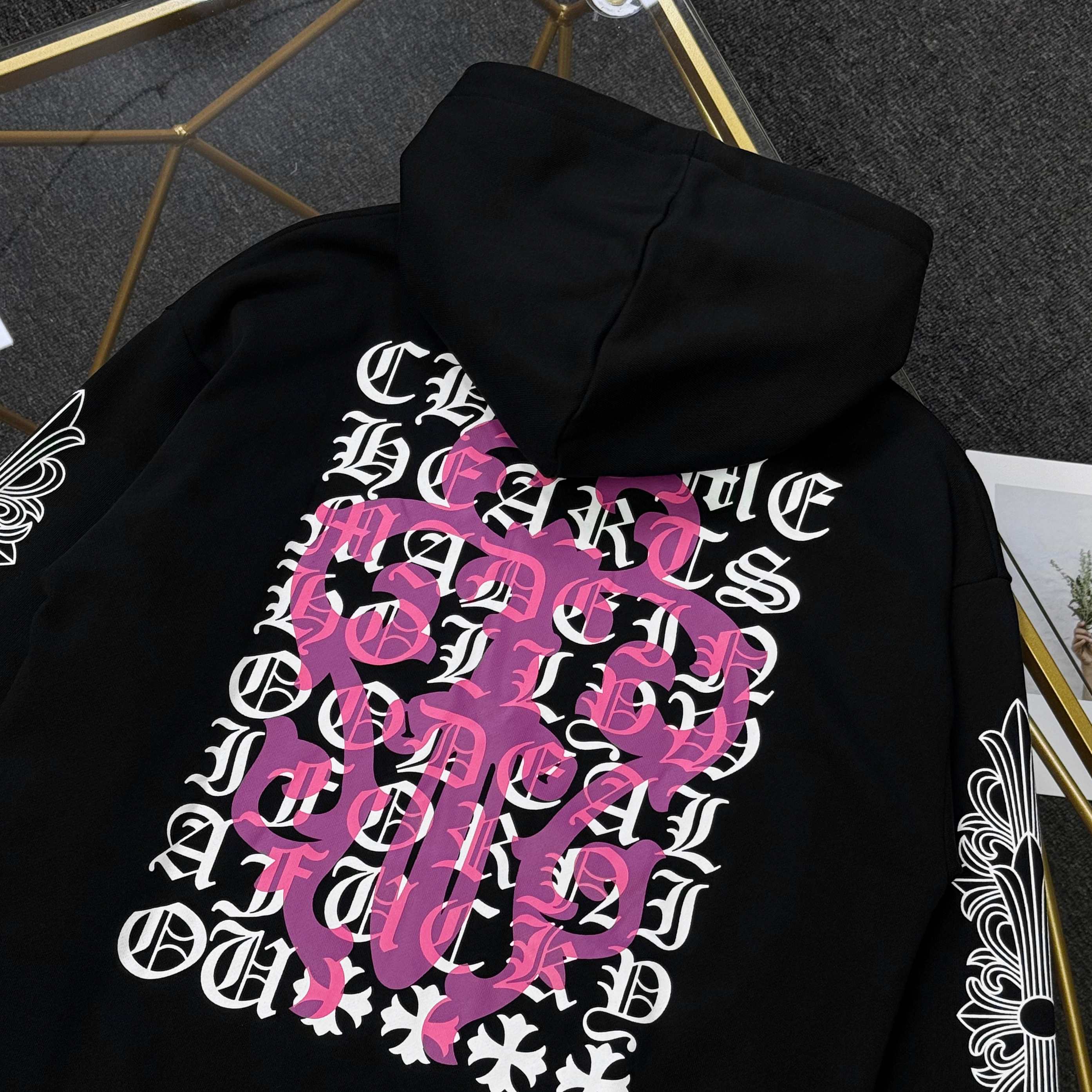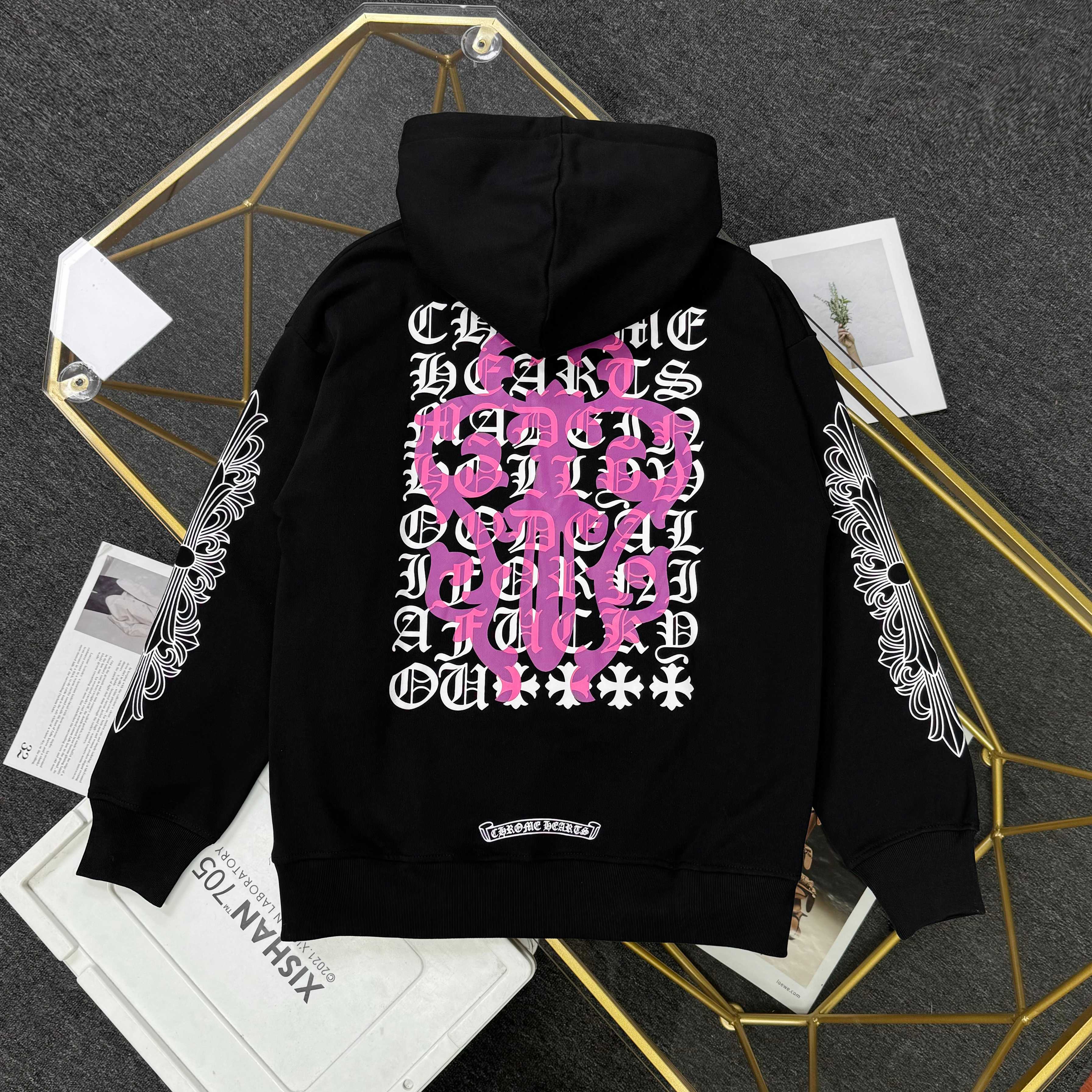 这款衣服是AAAAA 1:1 质量 (非常棒). 使用了和原版一模一样的材料. 商标部分也保持了和克罗心/Chrome Hearts一样. 图片拍摄是实物衣服拍摄, 您所收到的实物保证和我们图片一模一样.