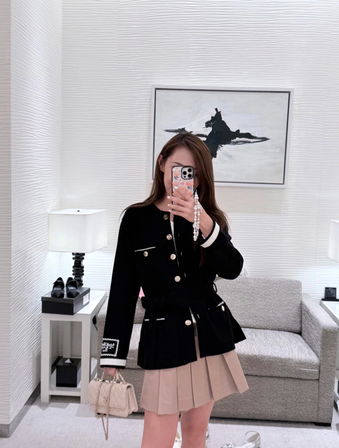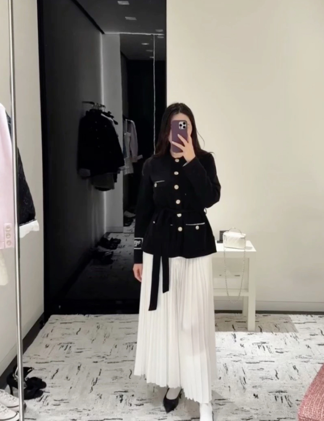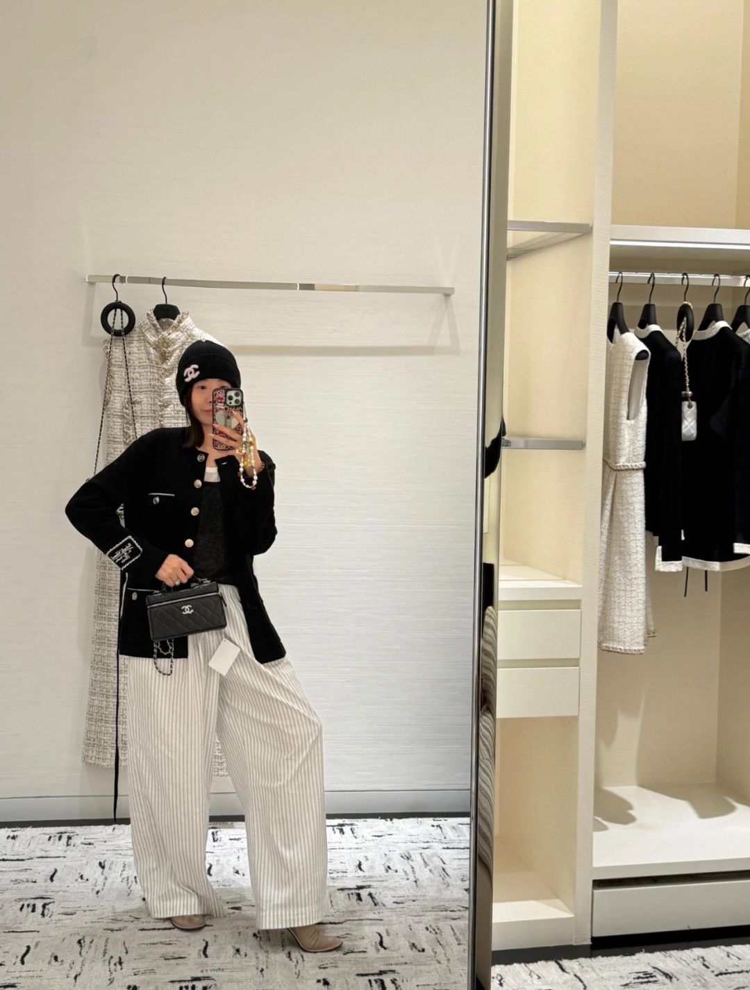 这款衣服是AAAAA 1:1 质量 (非常棒). 使用了和原版一模一样的材料. 商标部分也保持了和香奈儿/Chanel一样. 图片拍摄是实物衣服拍摄, 您所收到的实物保证和我们图片一模一样.