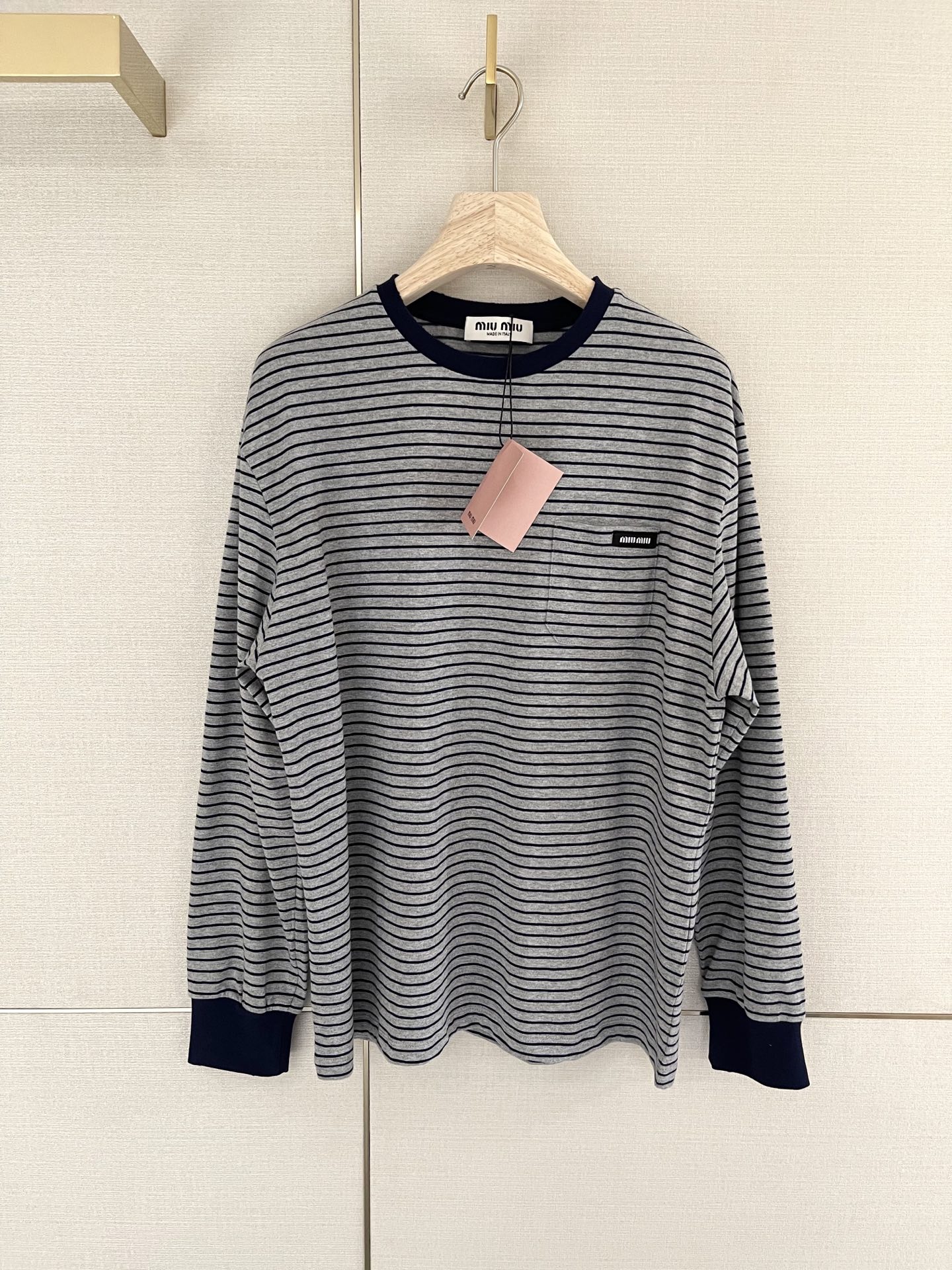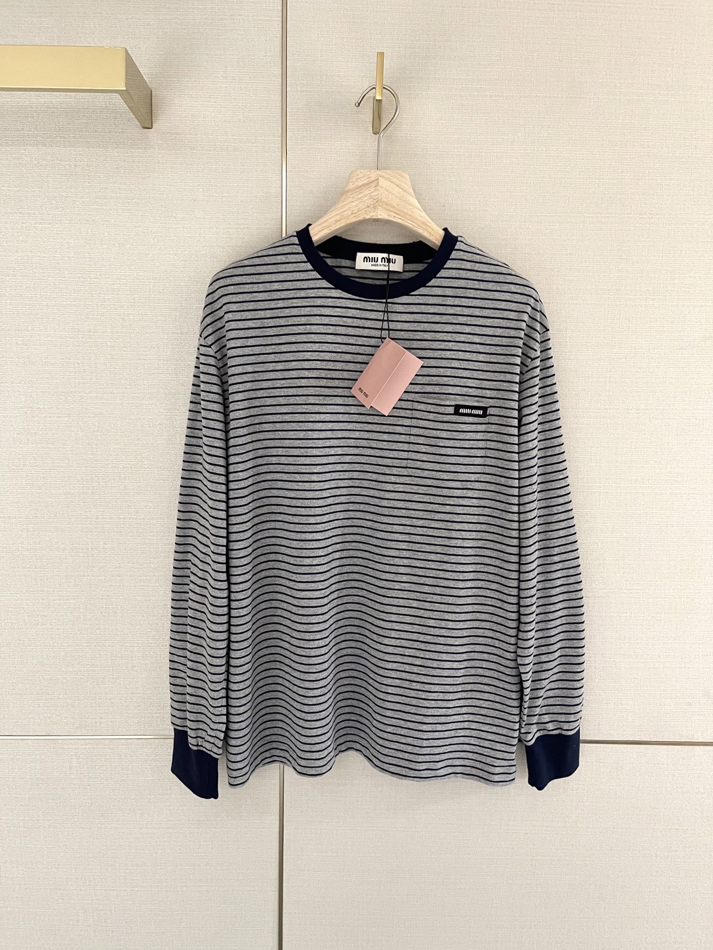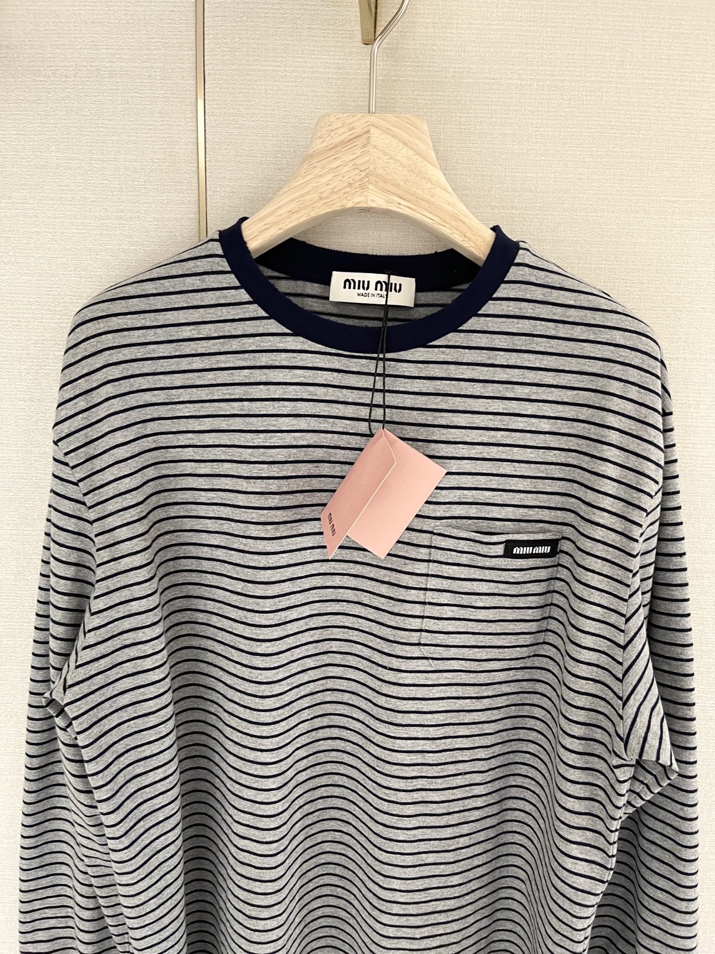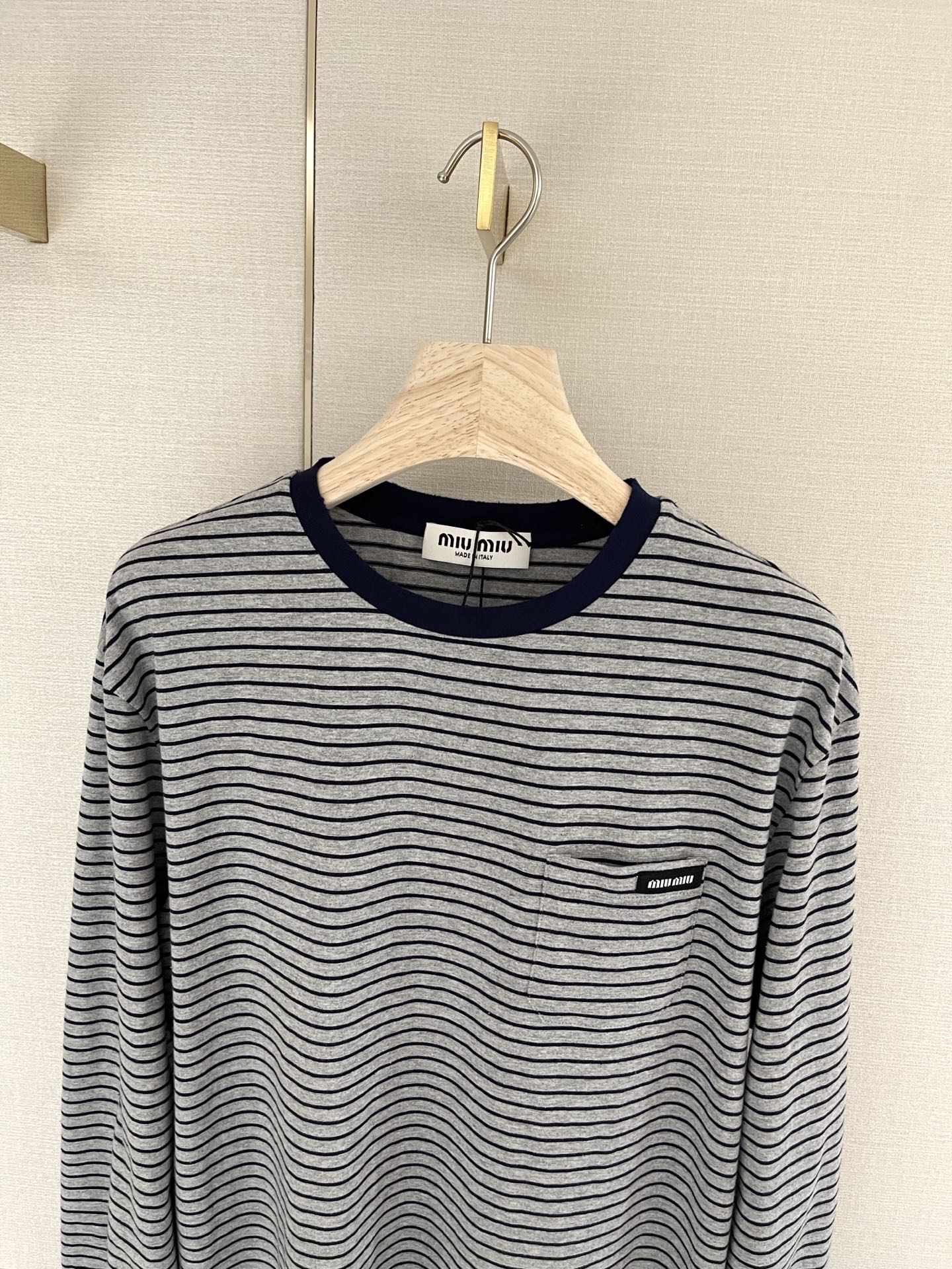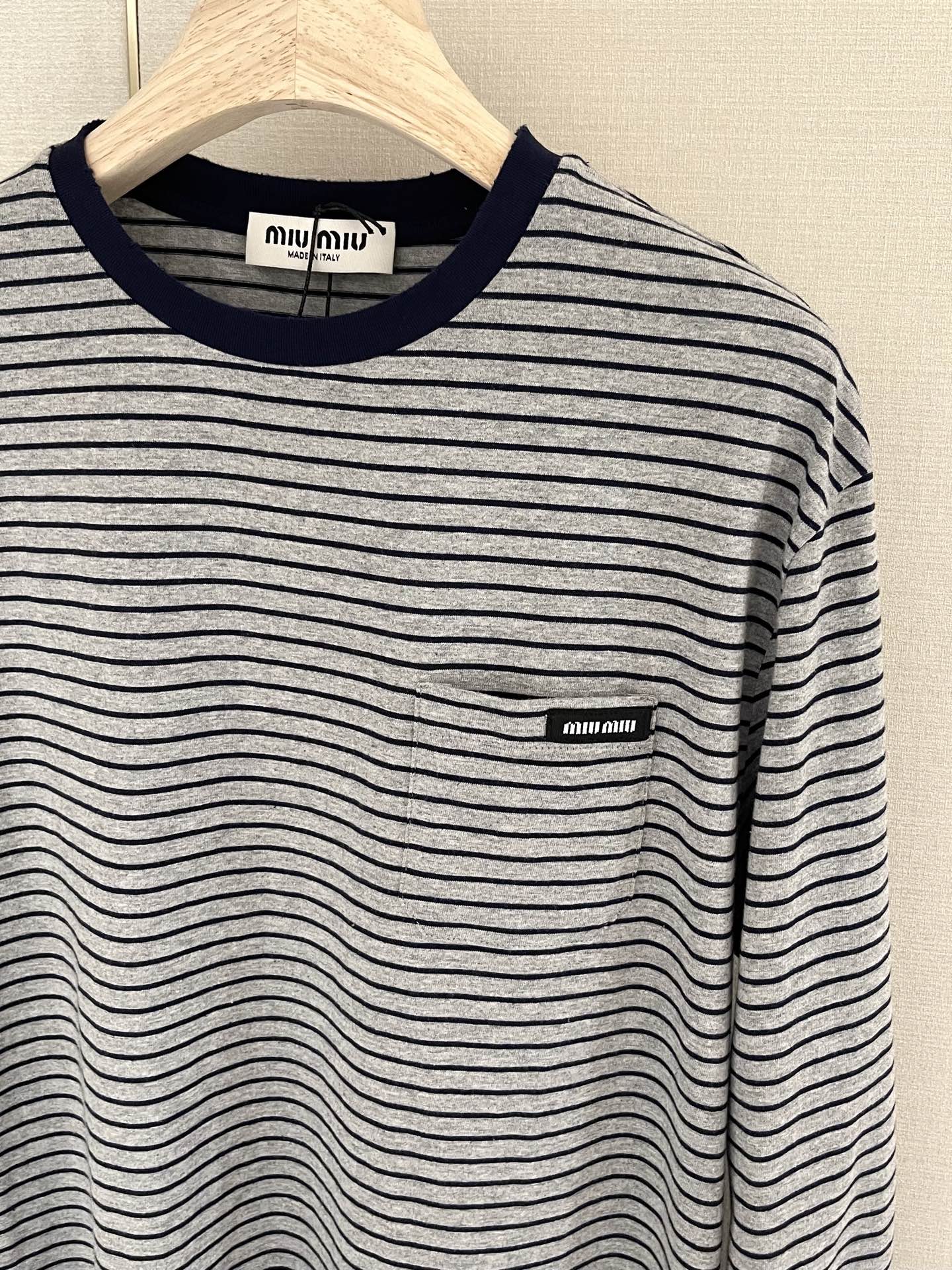 这款衣服是AAAAA 1:1 质量 (非常棒). 使用了和原版一模一样的材料. 商标部分也保持了和缪缪/Miu Miu一样. 图片拍摄是实物衣服拍摄, 您所收到的实物保证和我们图片一模一样.