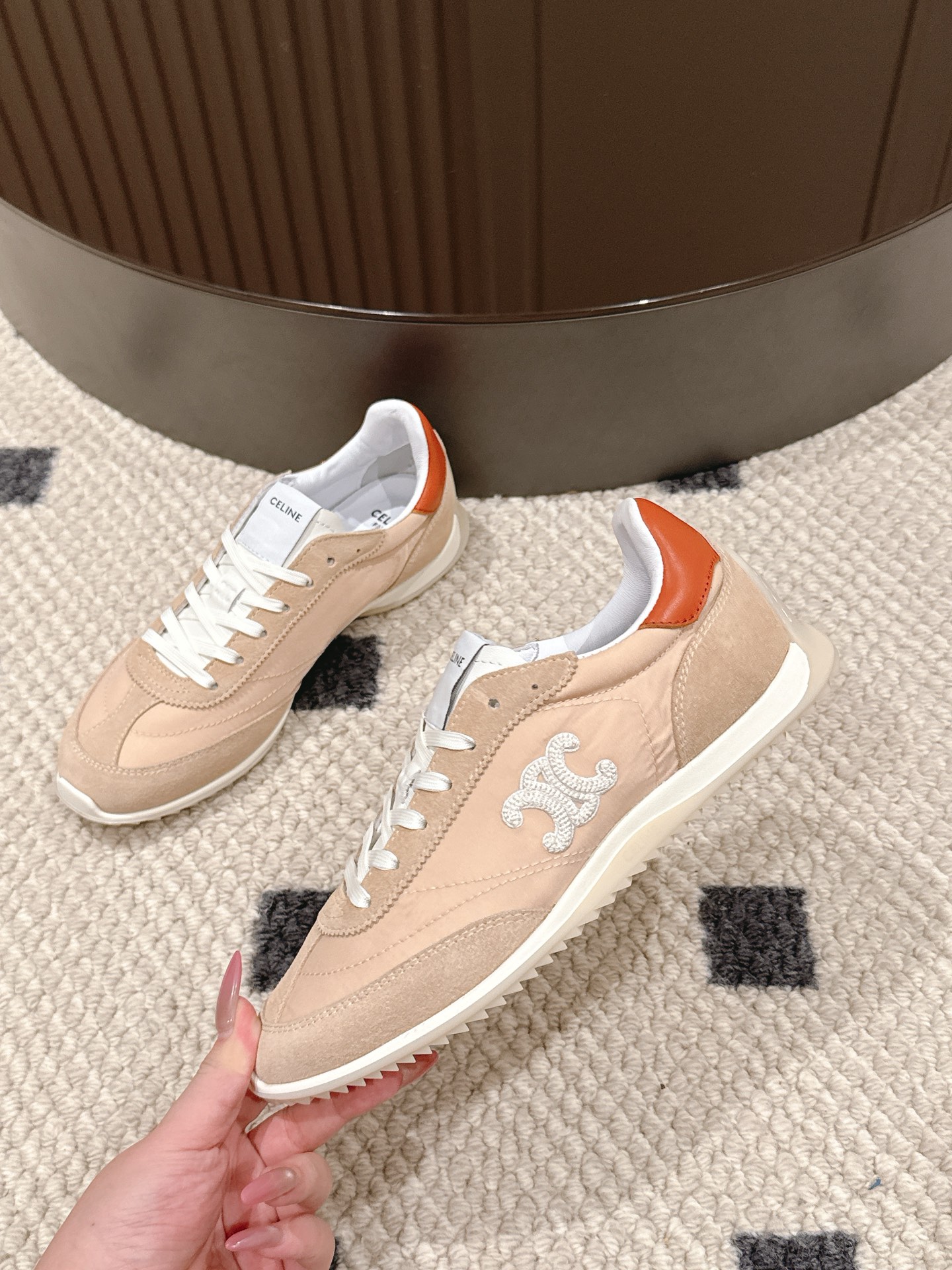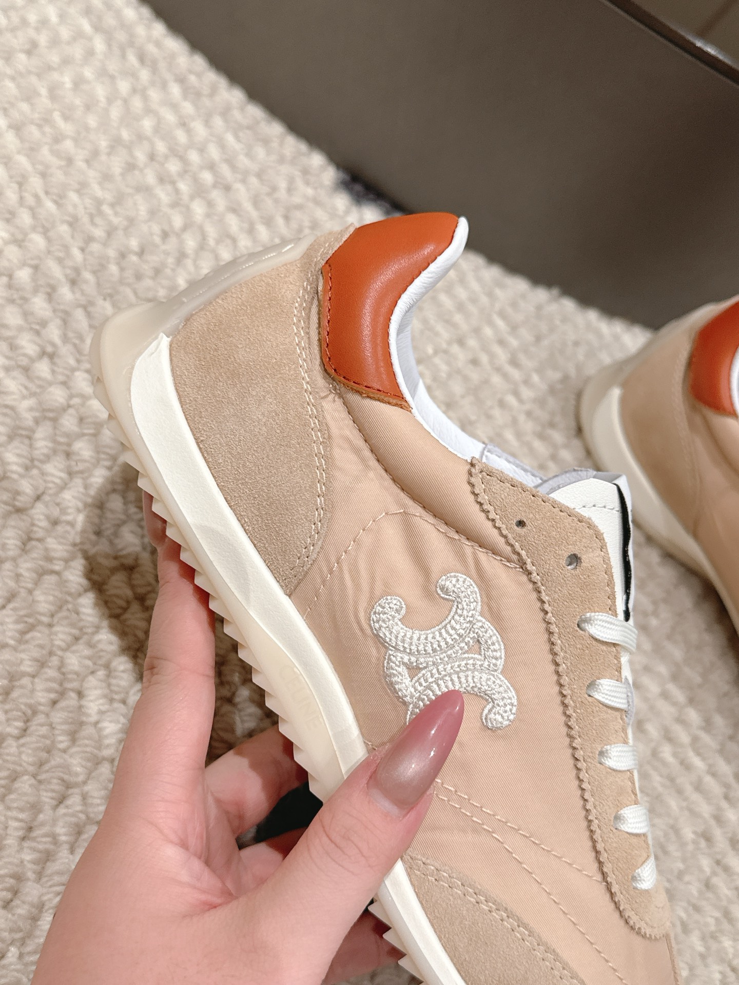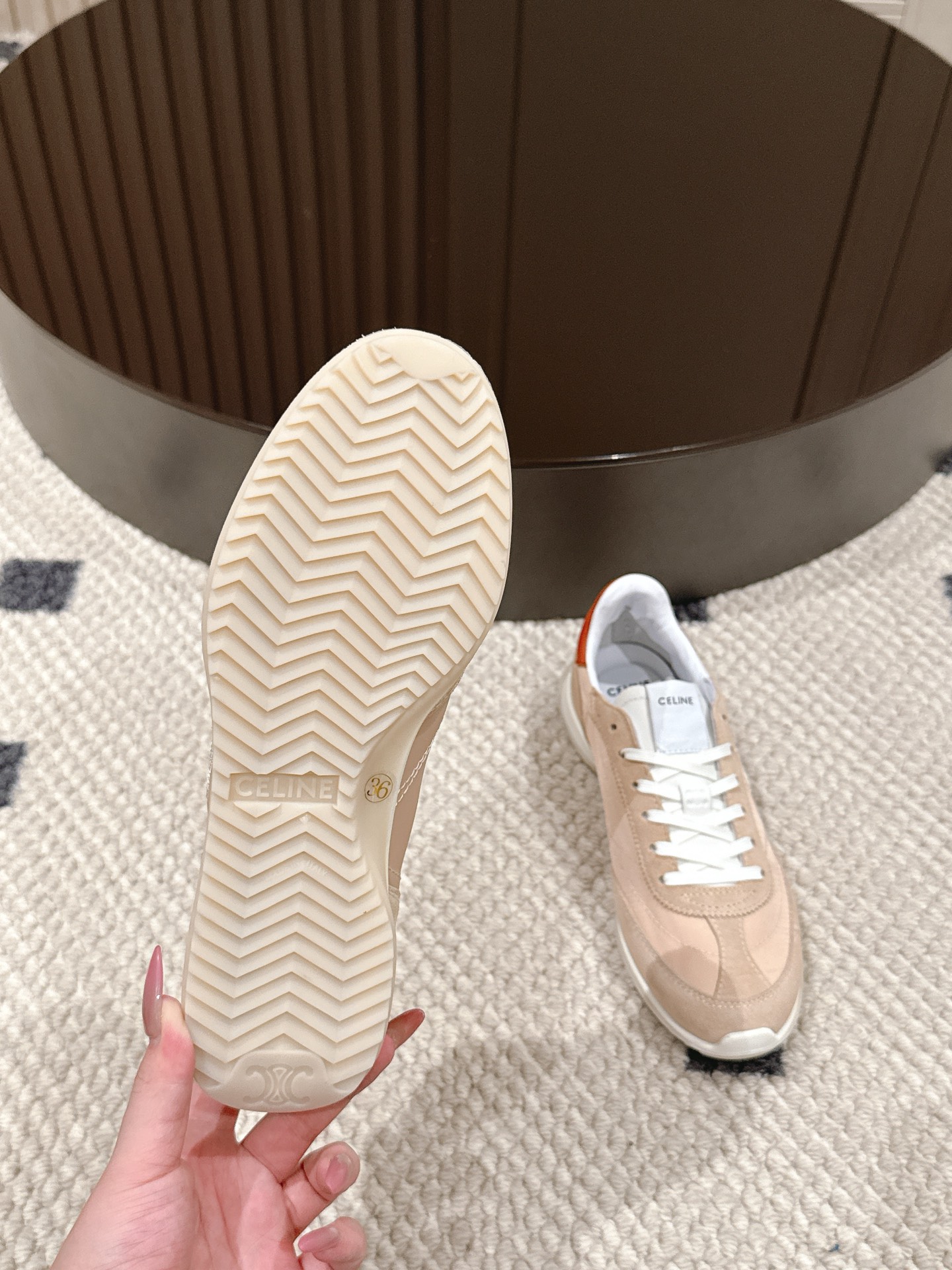 这款鞋子是AAAAA 1:1 质量 (非常棒). 使用了和原版一模一样的材料. 商标部分也保持了和思琳/Celine一样. 图片拍摄是实物鞋子拍摄, 您所收到的实物保证和我们图片一模一样.