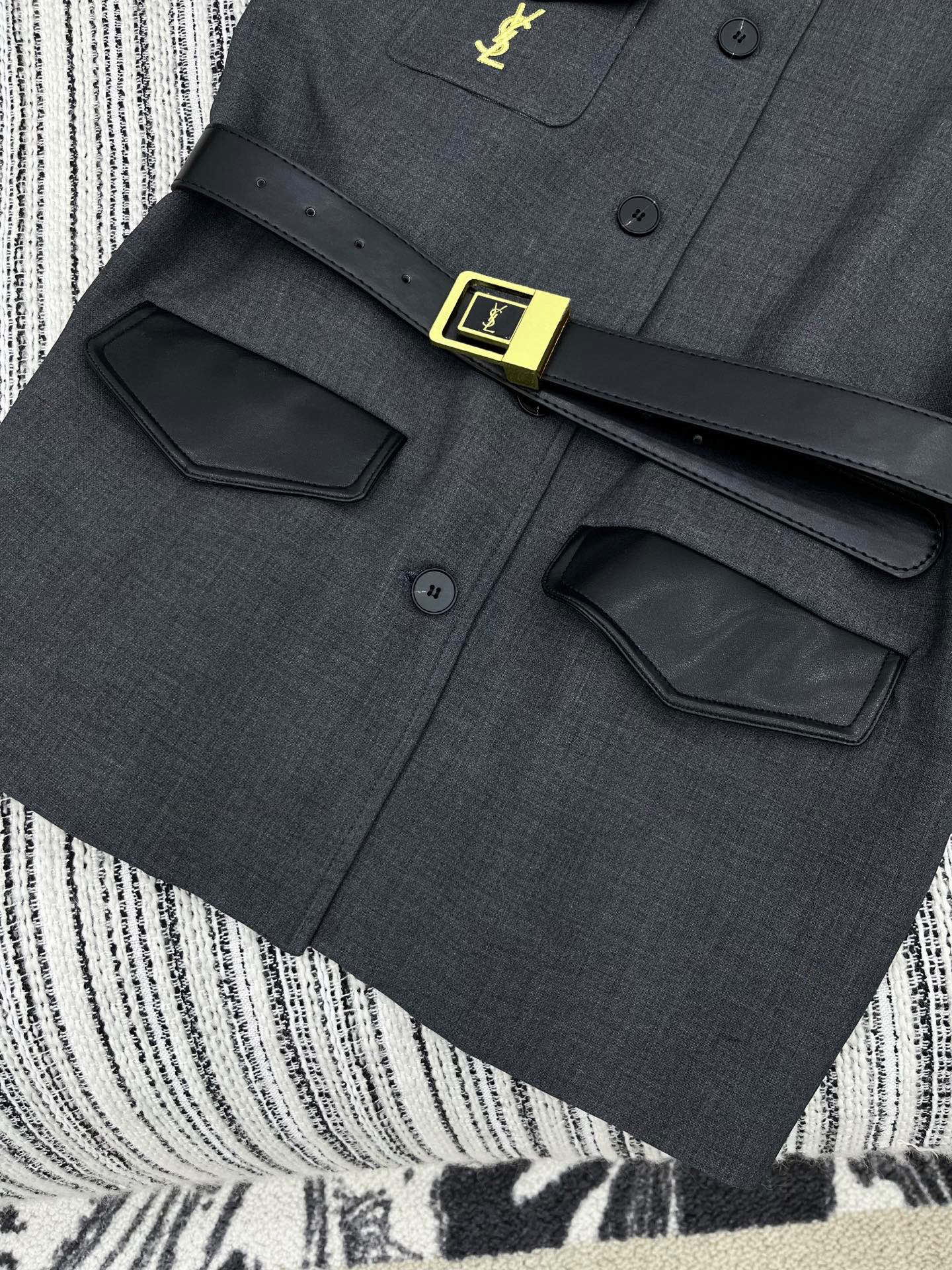 这款衣服是AAAAA 1:1 质量 (非常棒). 使用了和原版一模一样的材料. 商标部分也保持了和圣罗兰/Saint Laurent一样. 图片拍摄是实物衣服拍摄, 您所收到的实物保证和我们图片一模一样.