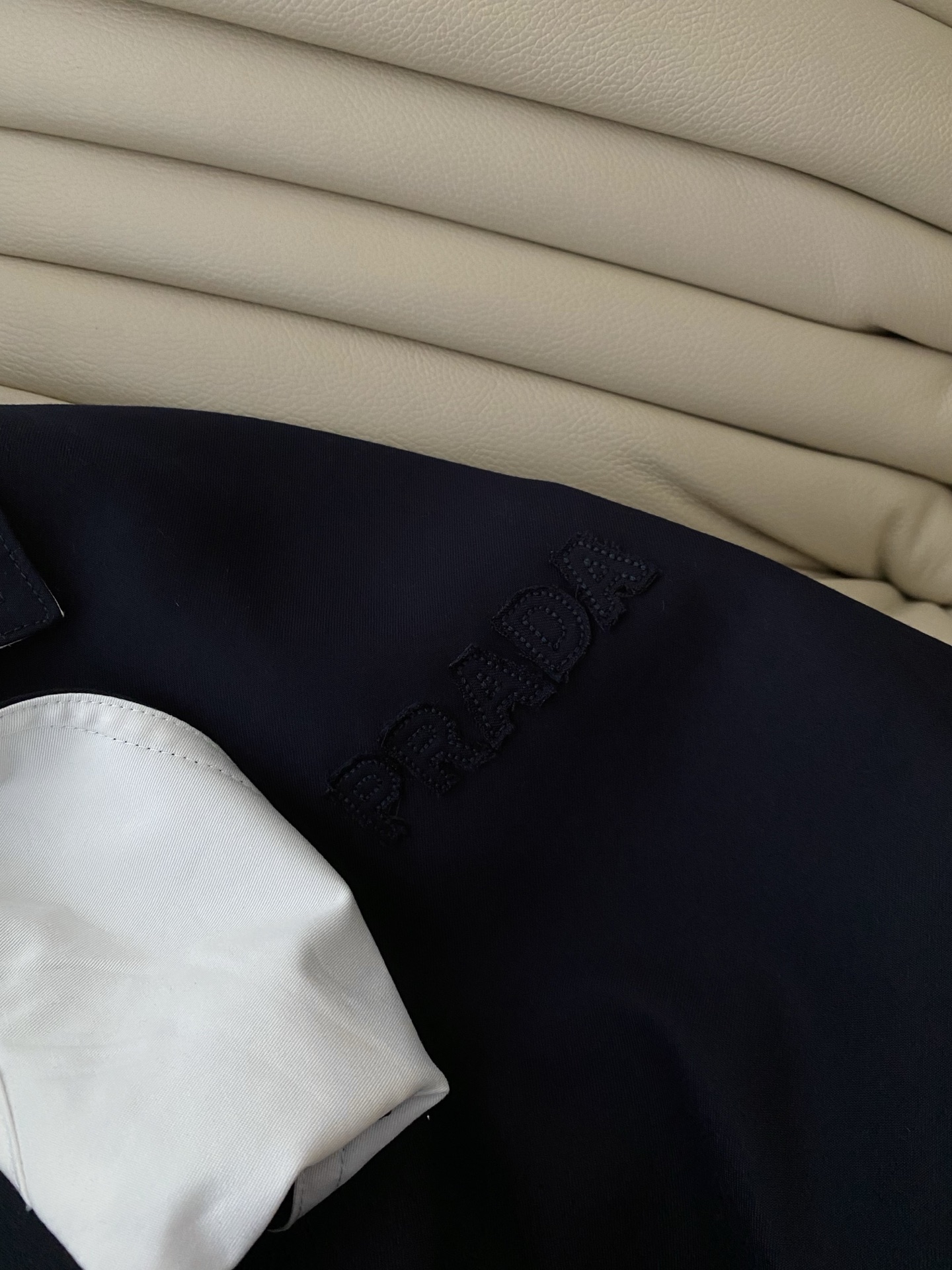 这款衣服是AAAAA 1:1 质量 (非常棒). 使用了和原版一模一样的材料. 商标部分也保持了和普拉达/Prada一样. 图片拍摄是实物衣服拍摄, 您所收到的实物保证和我们图片一模一样.