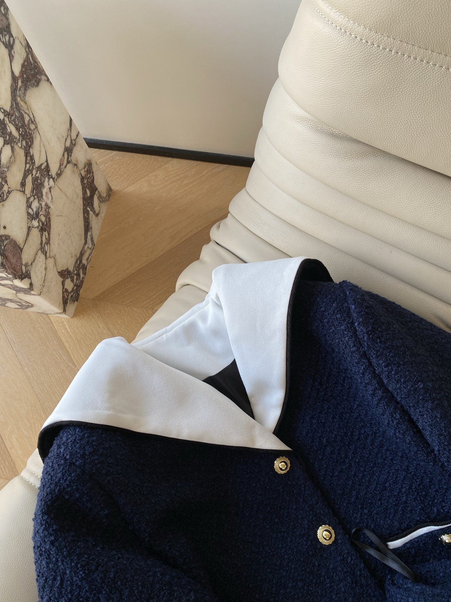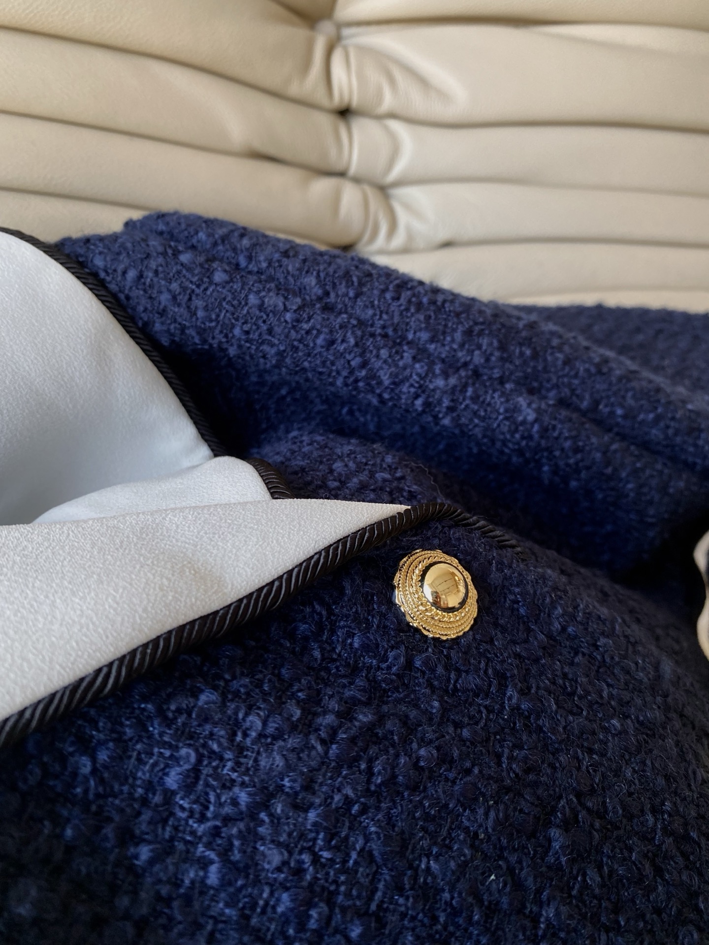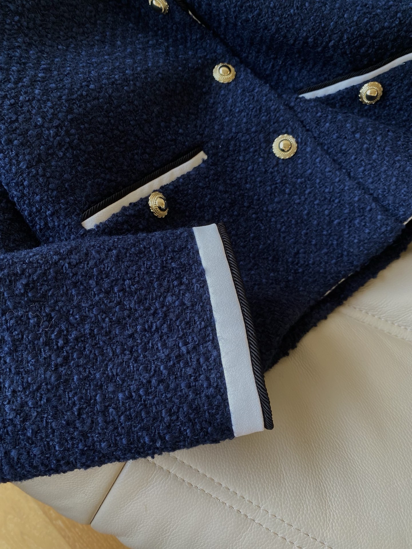 这款衣服是AAAAA 1:1 质量 (非常棒). 使用了和原版一模一样的材料. 商标部分也保持了和香奈儿/Chanel一样. 图片拍摄是实物衣服拍摄, 您所收到的实物保证和我们图片一模一样.