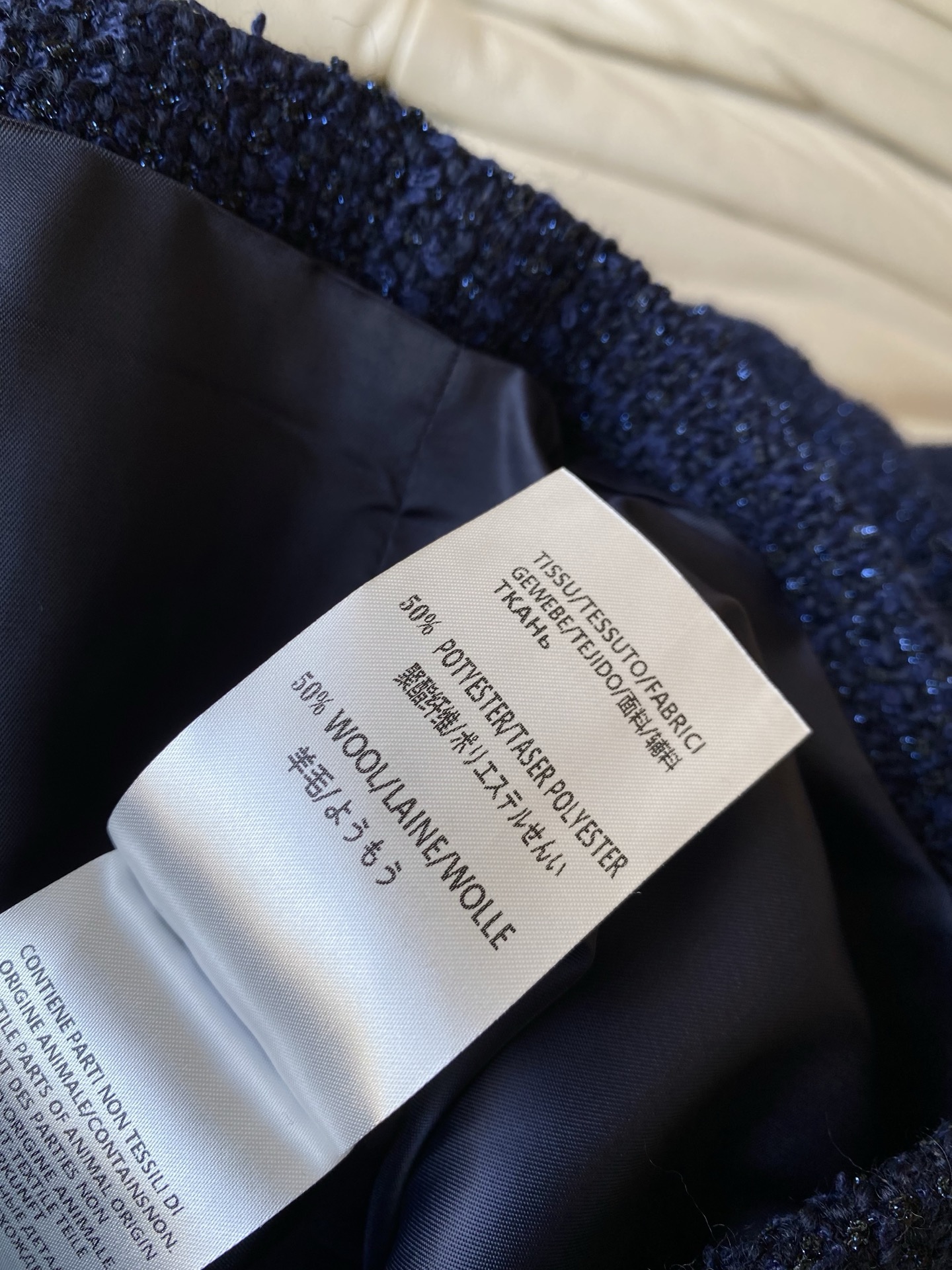 这款衣服是AAAAA 1:1 质量 (非常棒). 使用了和原版一模一样的材料. 商标部分也保持了和香奈儿/Chanel一样. 图片拍摄是实物衣服拍摄, 您所收到的实物保证和我们图片一模一样.