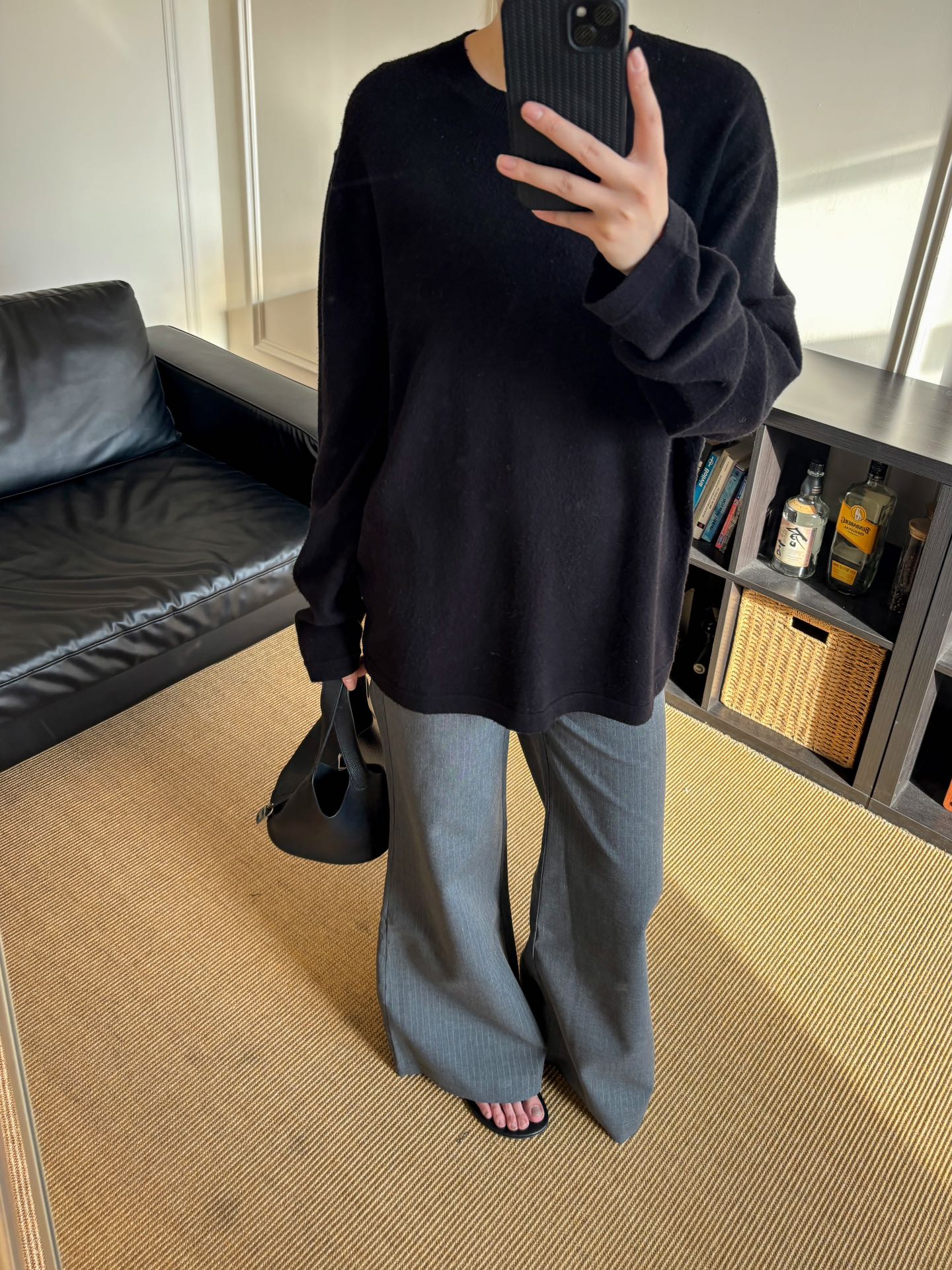 这款衣服是AAAAA 1:1 质量 (非常棒). 使用了和原版一模一样的材料. 商标部分也保持了和The Row一样. 图片拍摄是实物衣服拍摄, 您所收到的实物保证和我们图片一模一样.