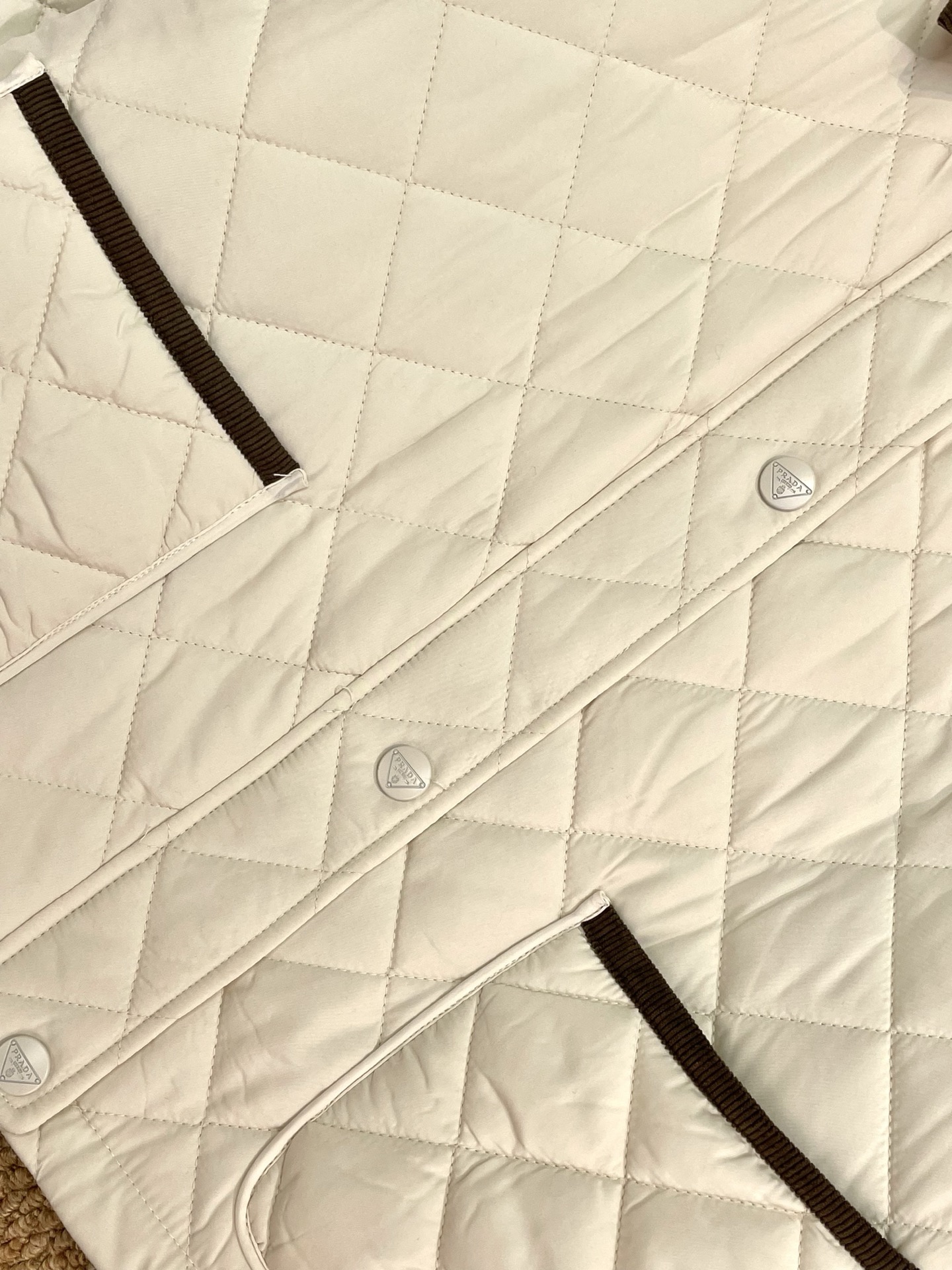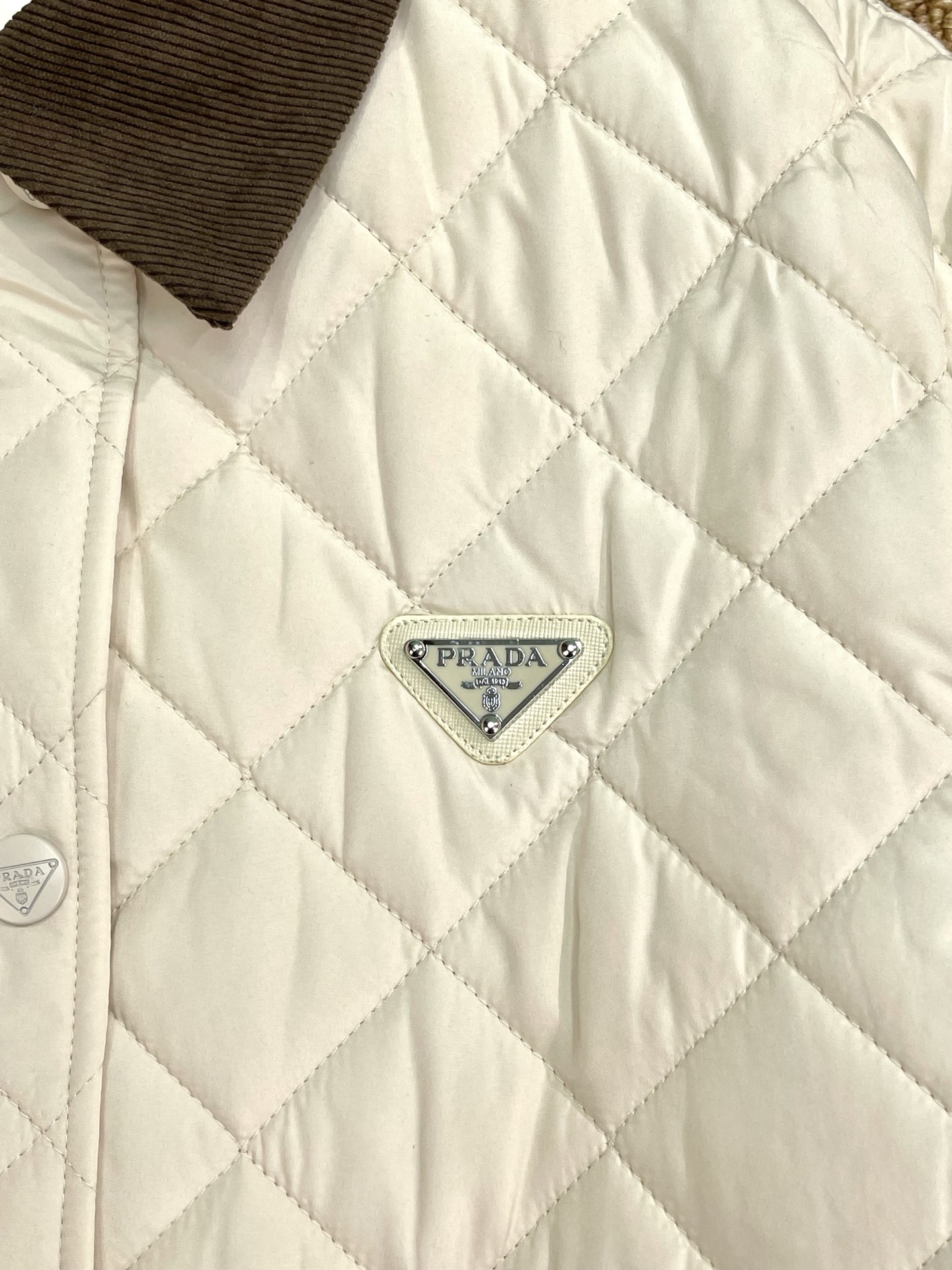 这款衣服是AAAAA 1:1 质量 (非常棒). 使用了和原版一模一样的材料. 商标部分也保持了和普拉达/Prada一样. 图片拍摄是实物衣服拍摄, 您所收到的实物保证和我们图片一模一样.