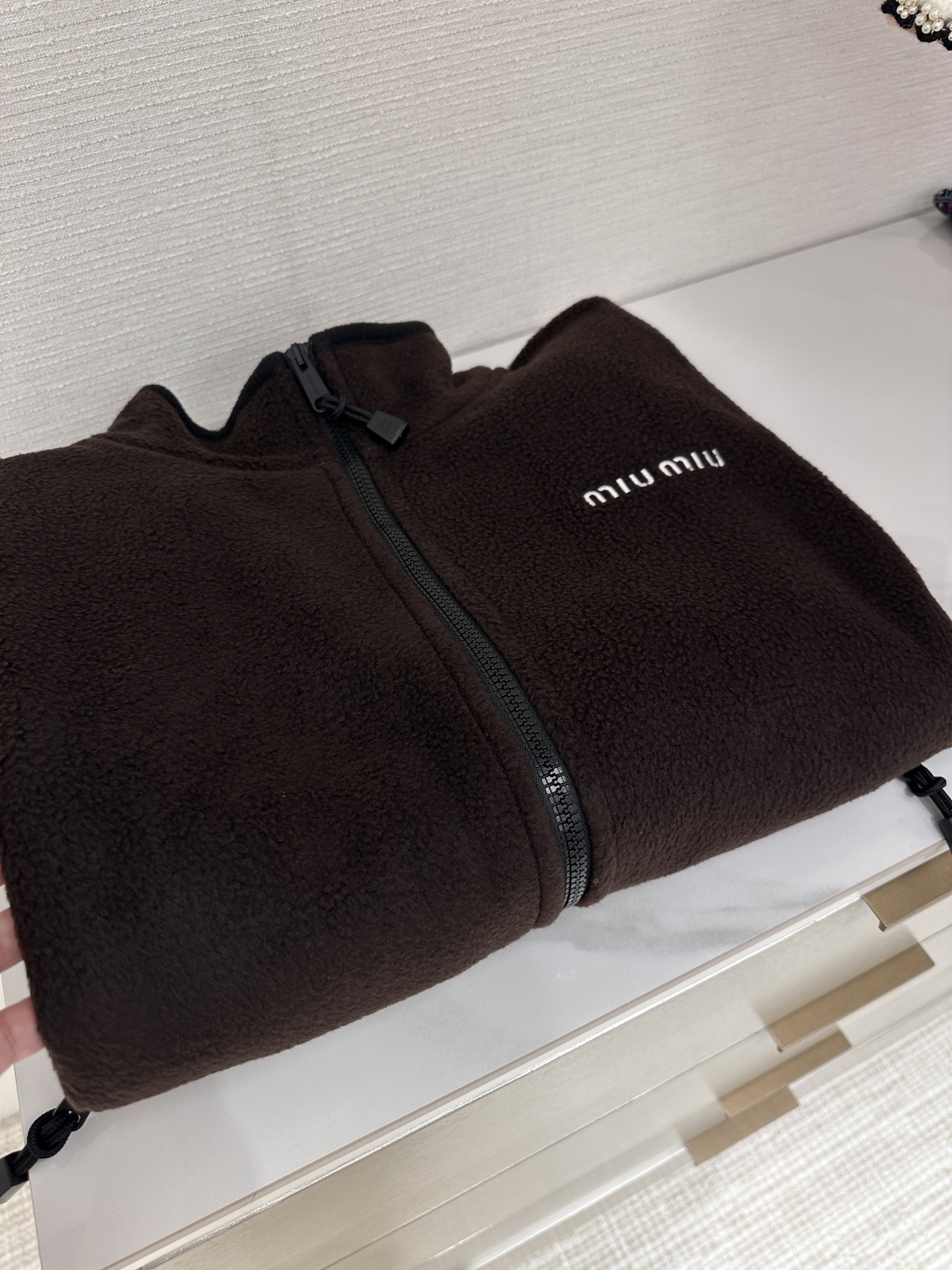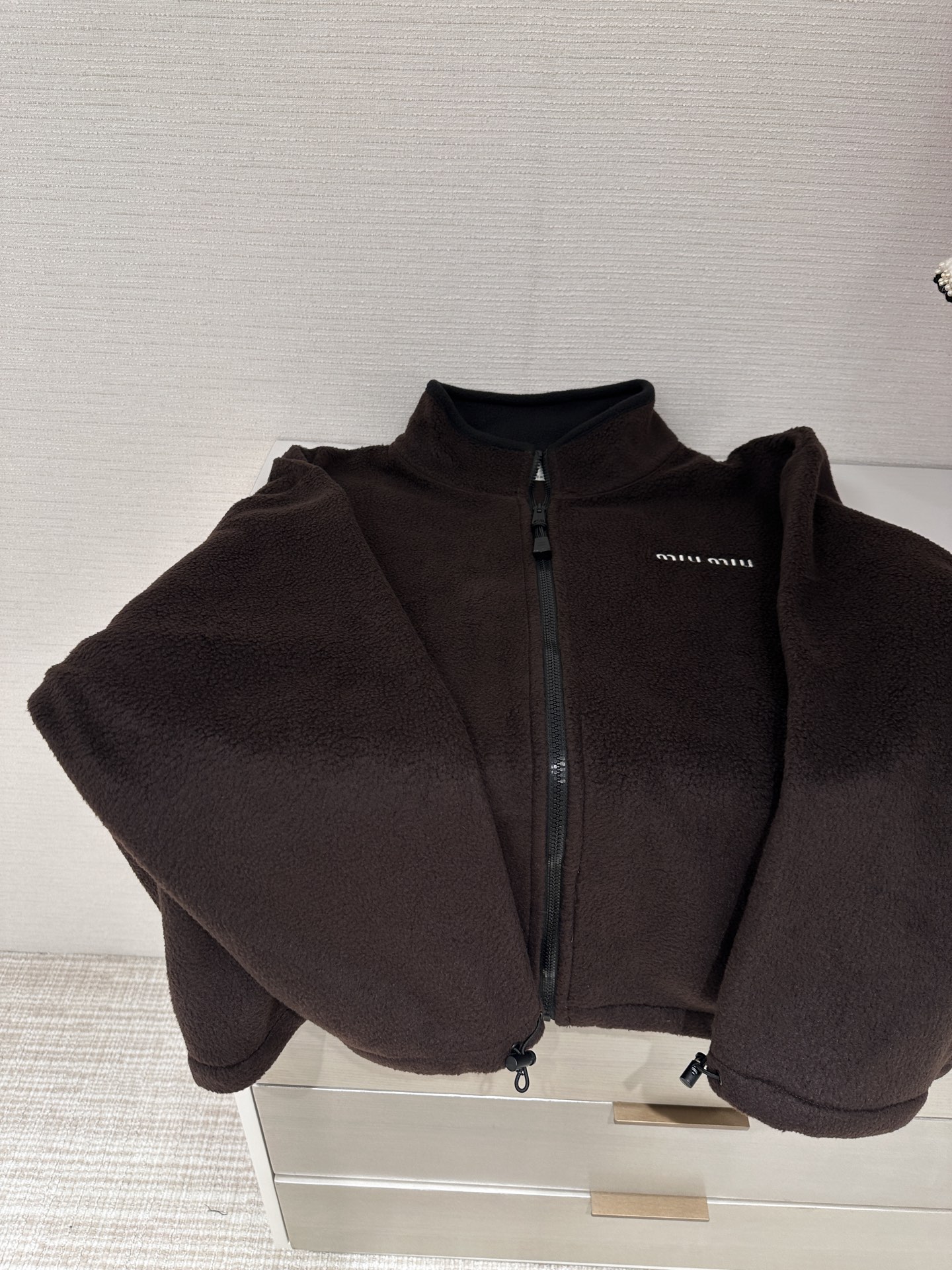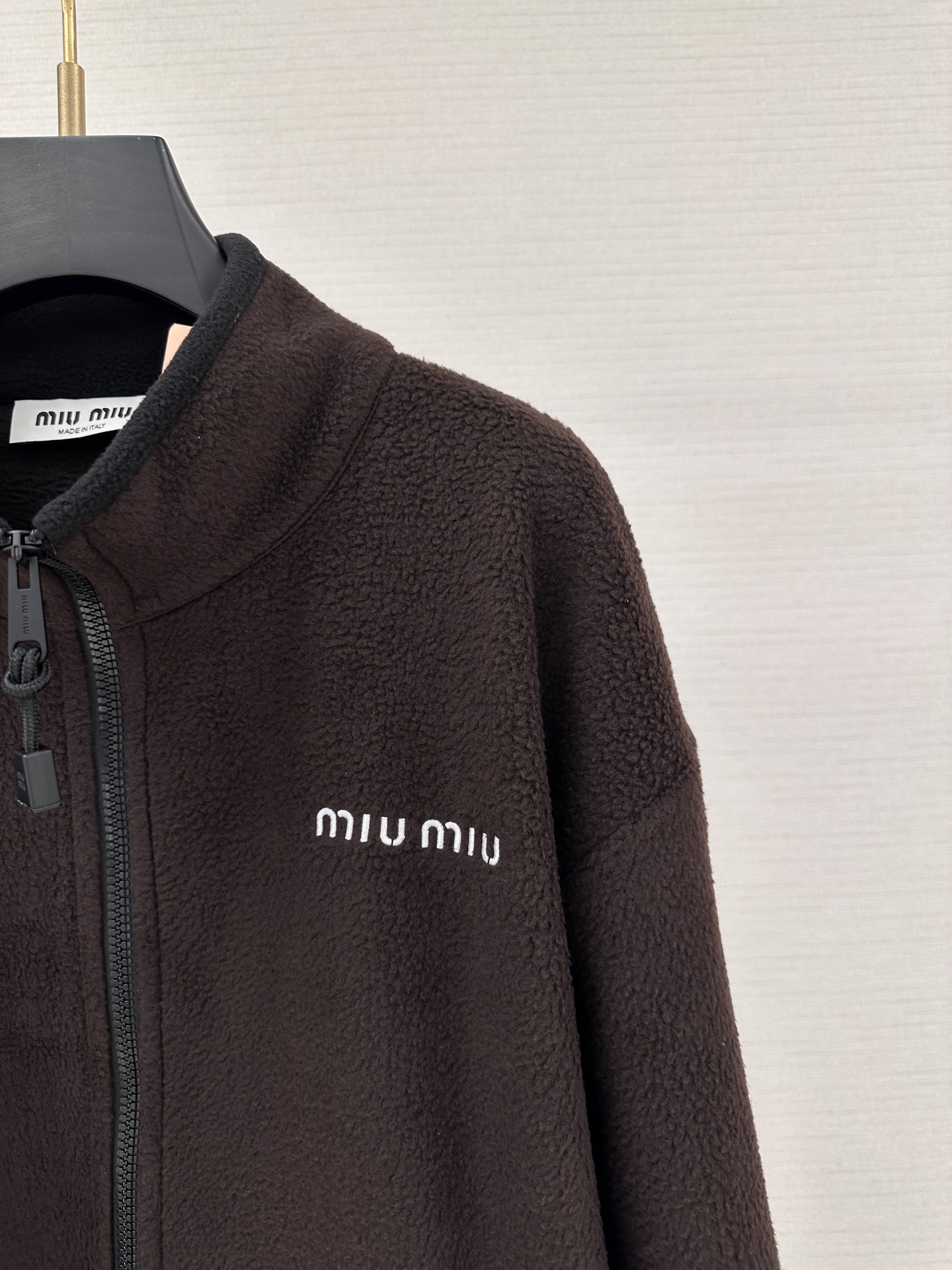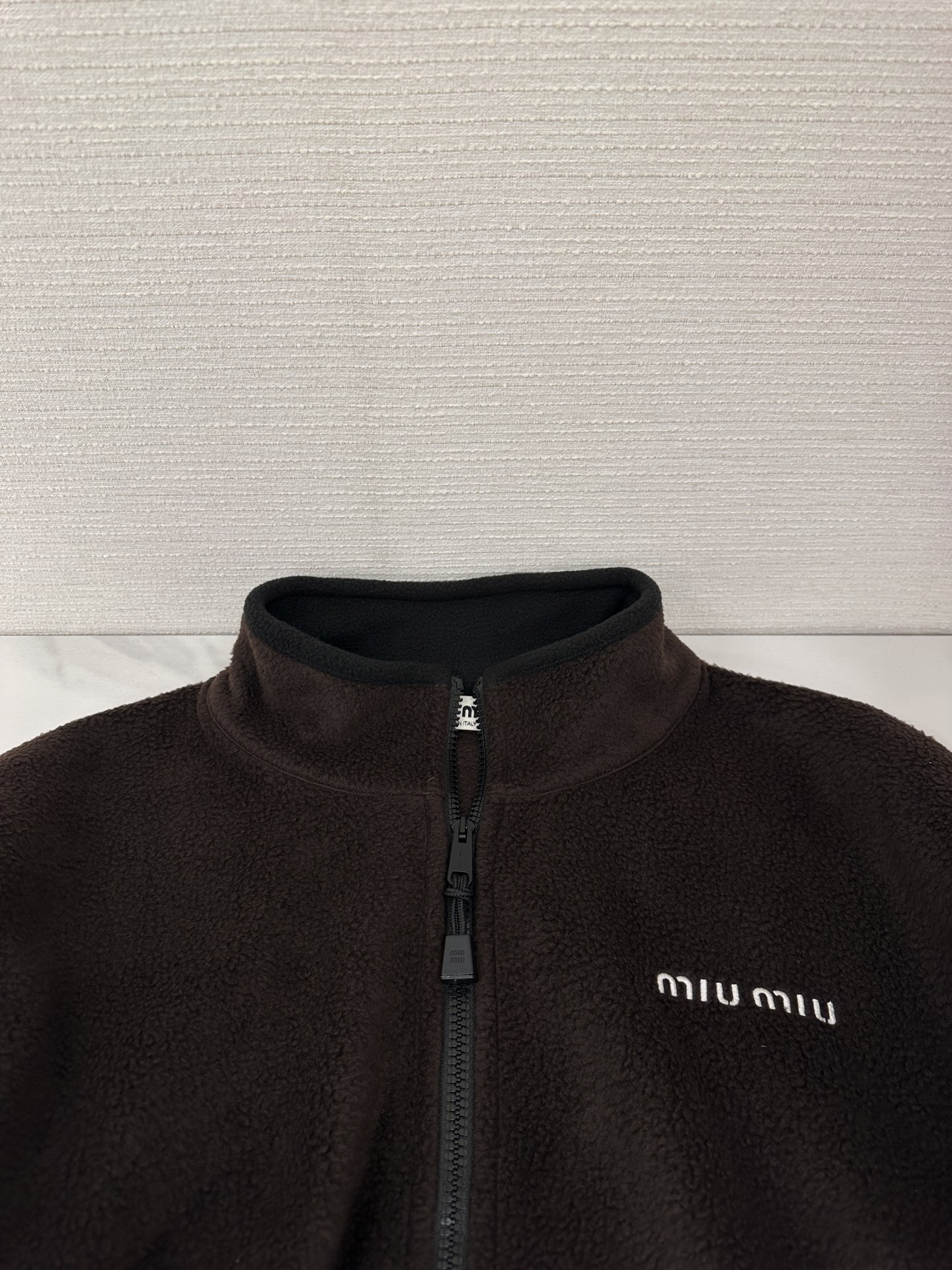 这款衣服是AAAAA 1:1 质量 (非常棒). 使用了和原版一模一样的材料. 商标部分也保持了和缪缪/Miu Miu一样. 图片拍摄是实物衣服拍摄, 您所收到的实物保证和我们图片一模一样.