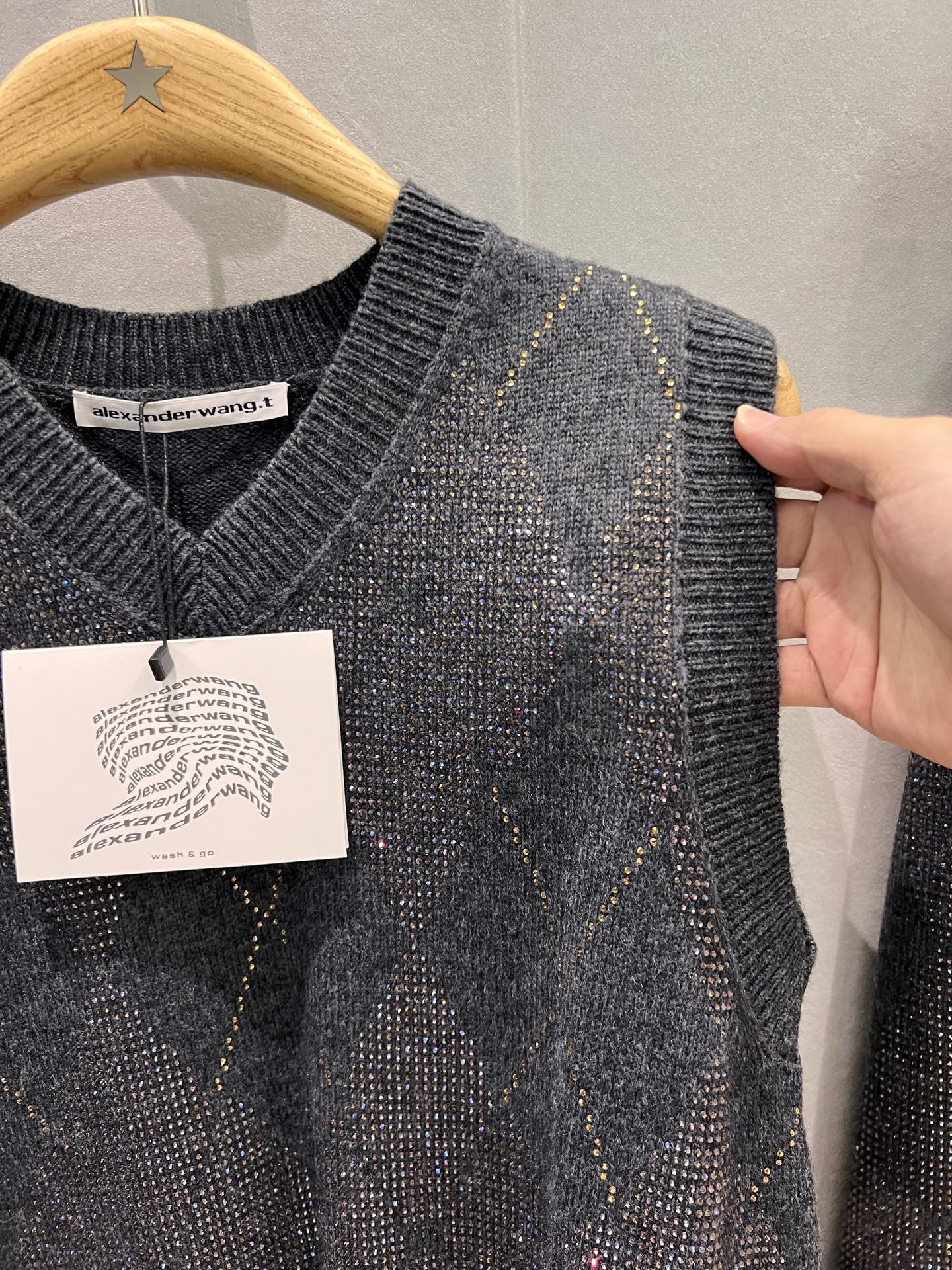 这款衣服是AAAAA 1:1 质量 (非常棒). 使用了和原版一模一样的材料. 商标部分也保持了和亚历山大王/Alexander Wang一样. 图片拍摄是实物衣服拍摄, 您所收到的实物保证和我们图片一模一样.