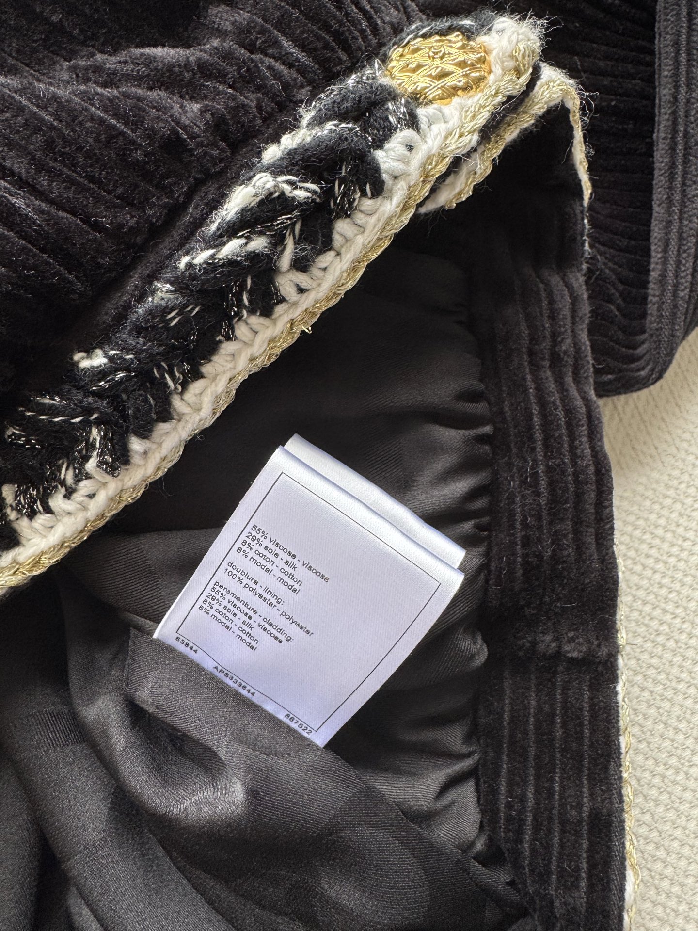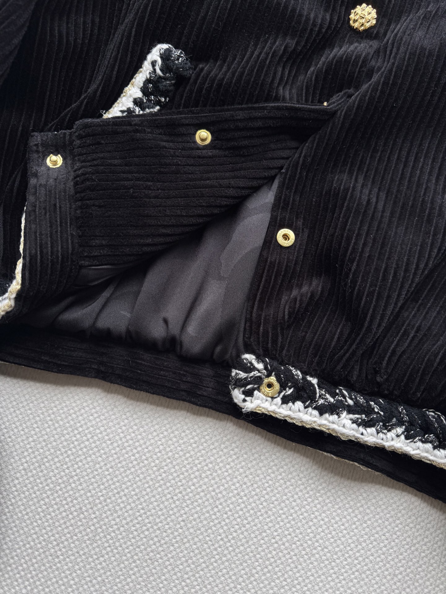 这款衣服是AAAAA 1:1 质量 (非常棒). 使用了和原版一模一样的材料. 商标部分也保持了和香奈儿/Chanel一样. 图片拍摄是实物衣服拍摄, 您所收到的实物保证和我们图片一模一样.