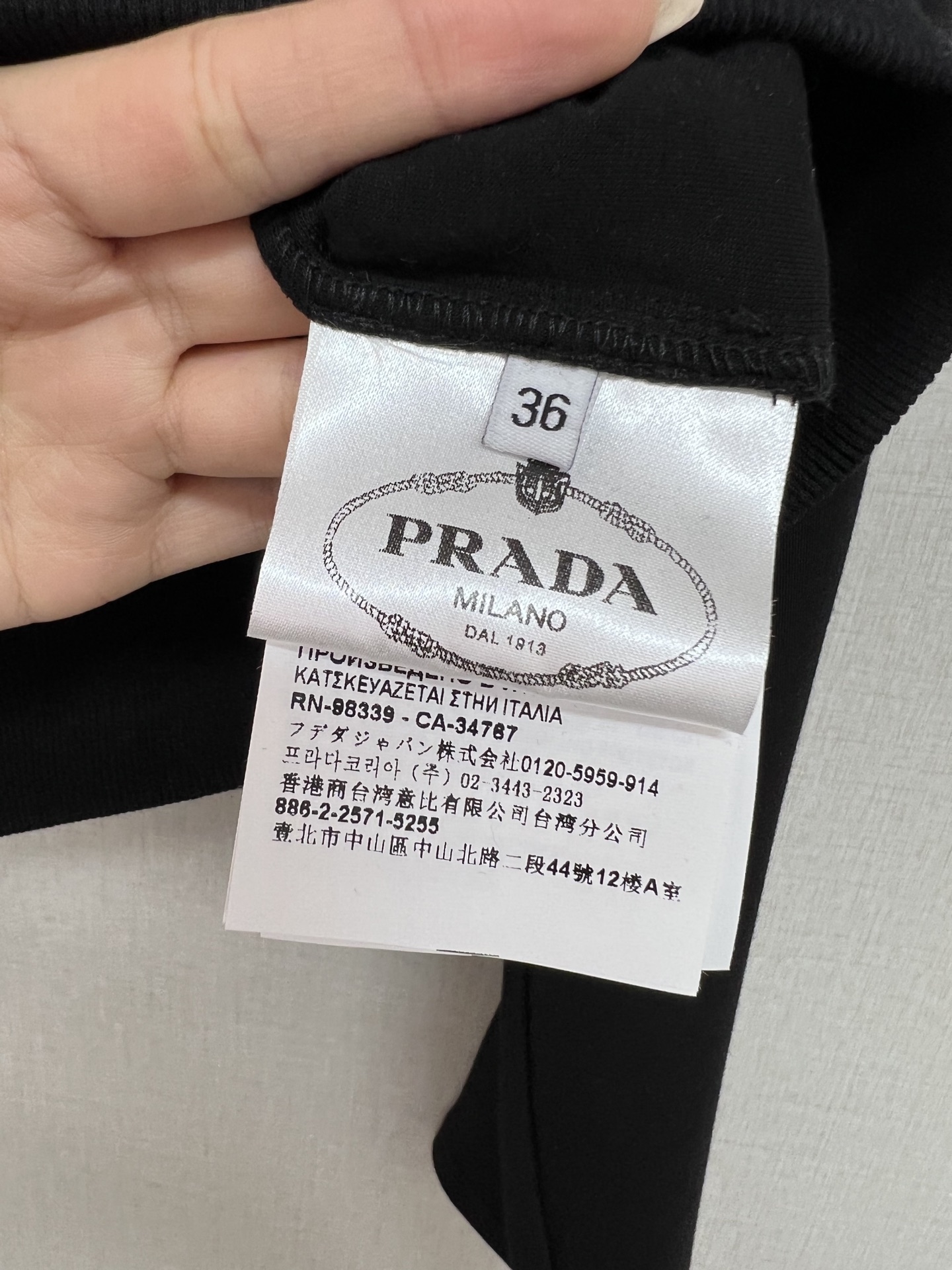 这款衣服是AAAAA 1:1 质量 (非常棒). 使用了和原版一模一样的材料. 商标部分也保持了和普拉达/Prada一样. 图片拍摄是实物衣服拍摄, 您所收到的实物保证和我们图片一模一样.