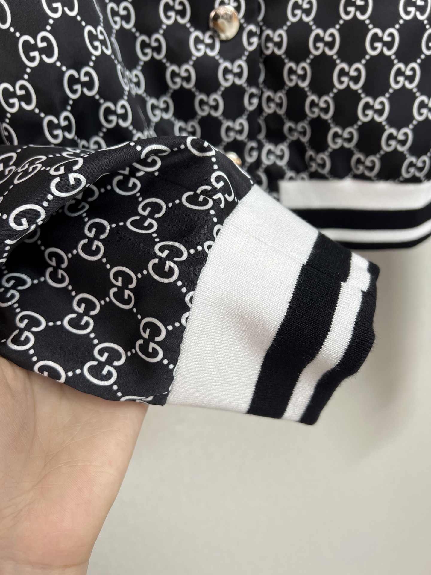 这款衣服是AAAAA 1:1 质量 (非常棒). 使用了和原版一模一样的材料. 商标部分也保持了和古奇/Gucci一样. 图片拍摄是实物衣服拍摄, 您所收到的实物保证和我们图片一模一样.