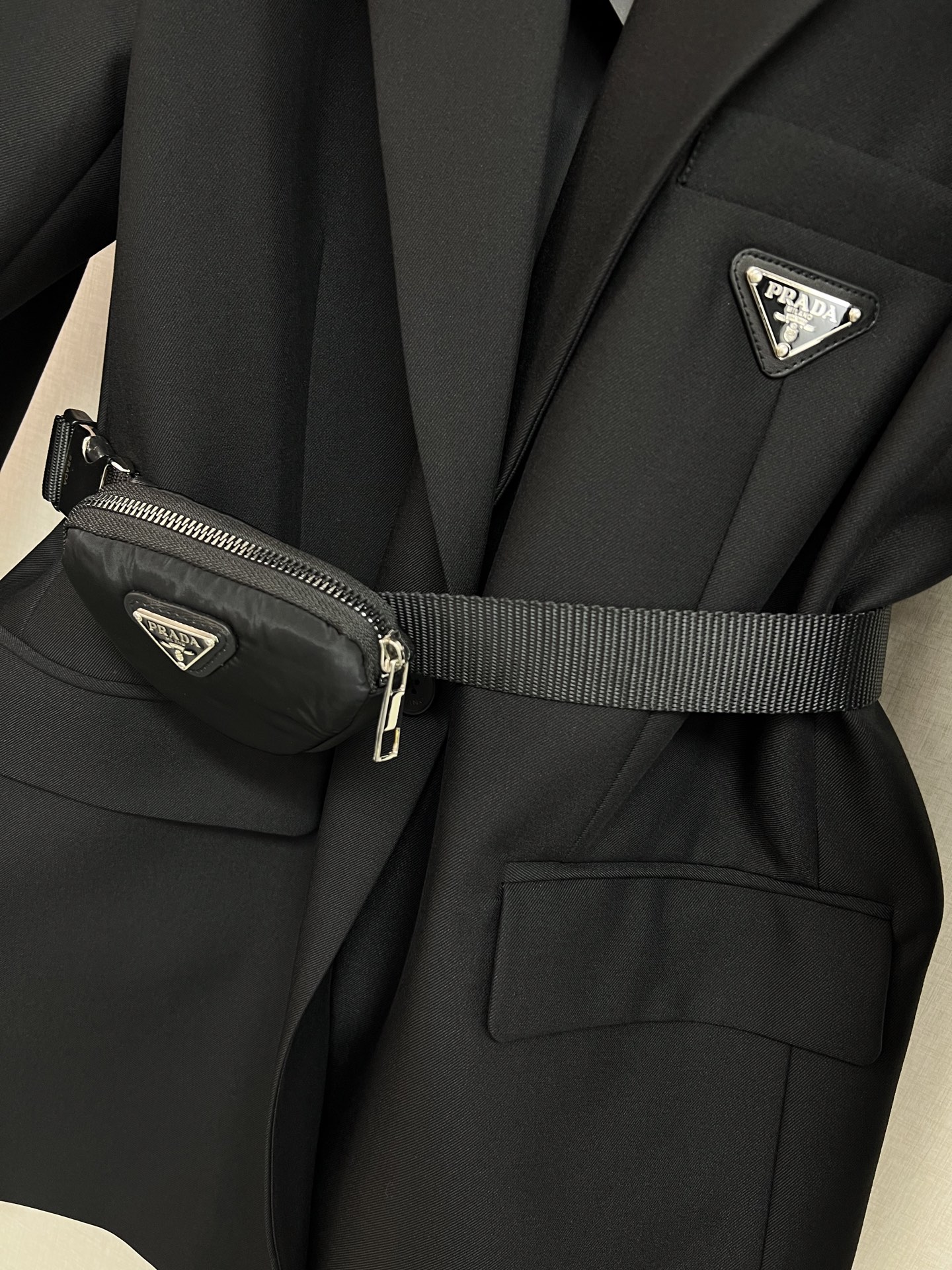 这款衣服是AAAAA 1:1 质量 (非常棒). 使用了和原版一模一样的材料. 商标部分也保持了和普拉达/Prada一样. 图片拍摄是实物衣服拍摄, 您所收到的实物保证和我们图片一模一样.
