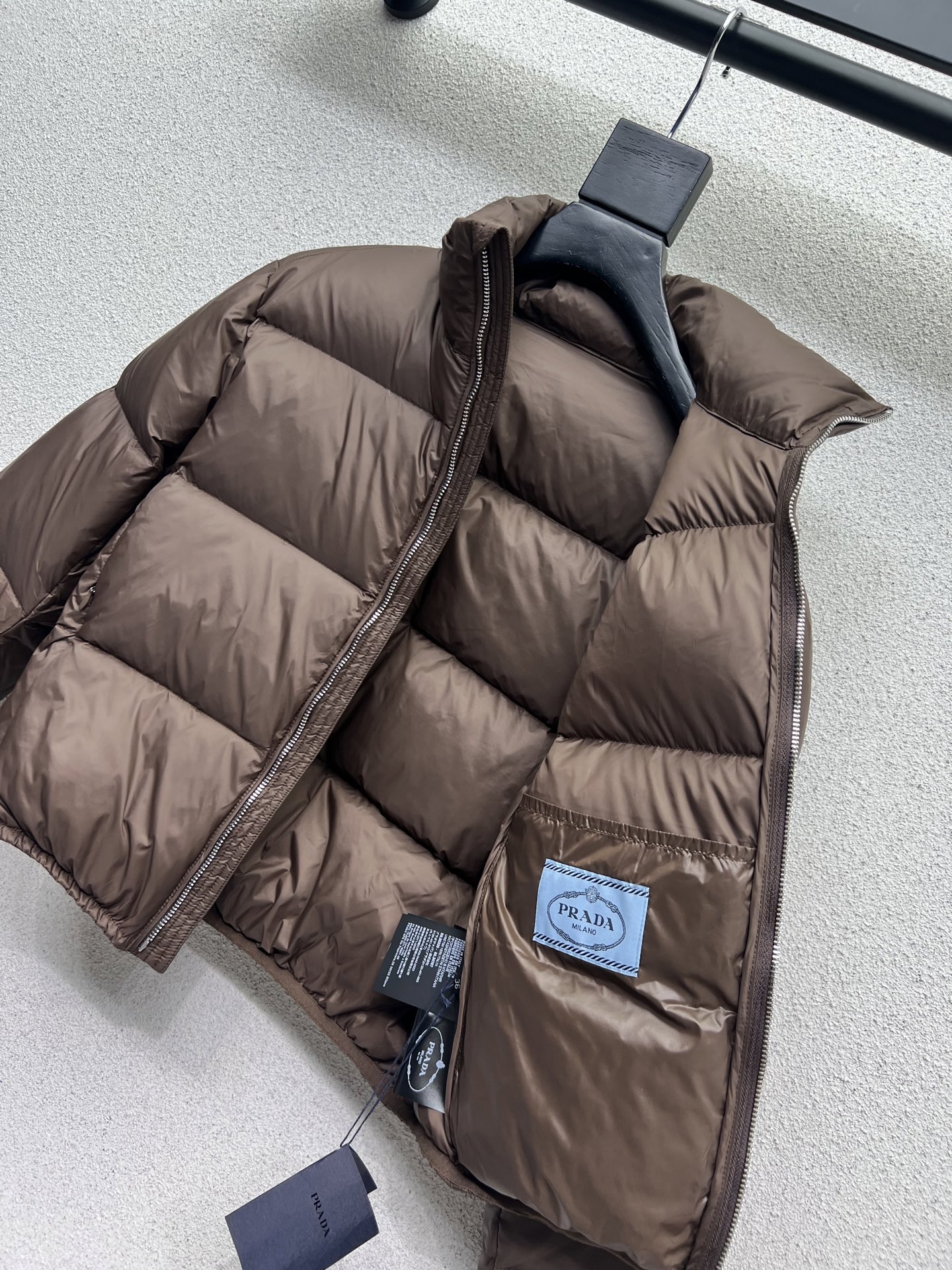 这款衣服是AAAAA 1:1 质量 (非常棒). 使用了和原版一模一样的材料. 商标部分也保持了和普拉达/Prada一样. 图片拍摄是实物衣服拍摄, 您所收到的实物保证和我们图片一模一样.