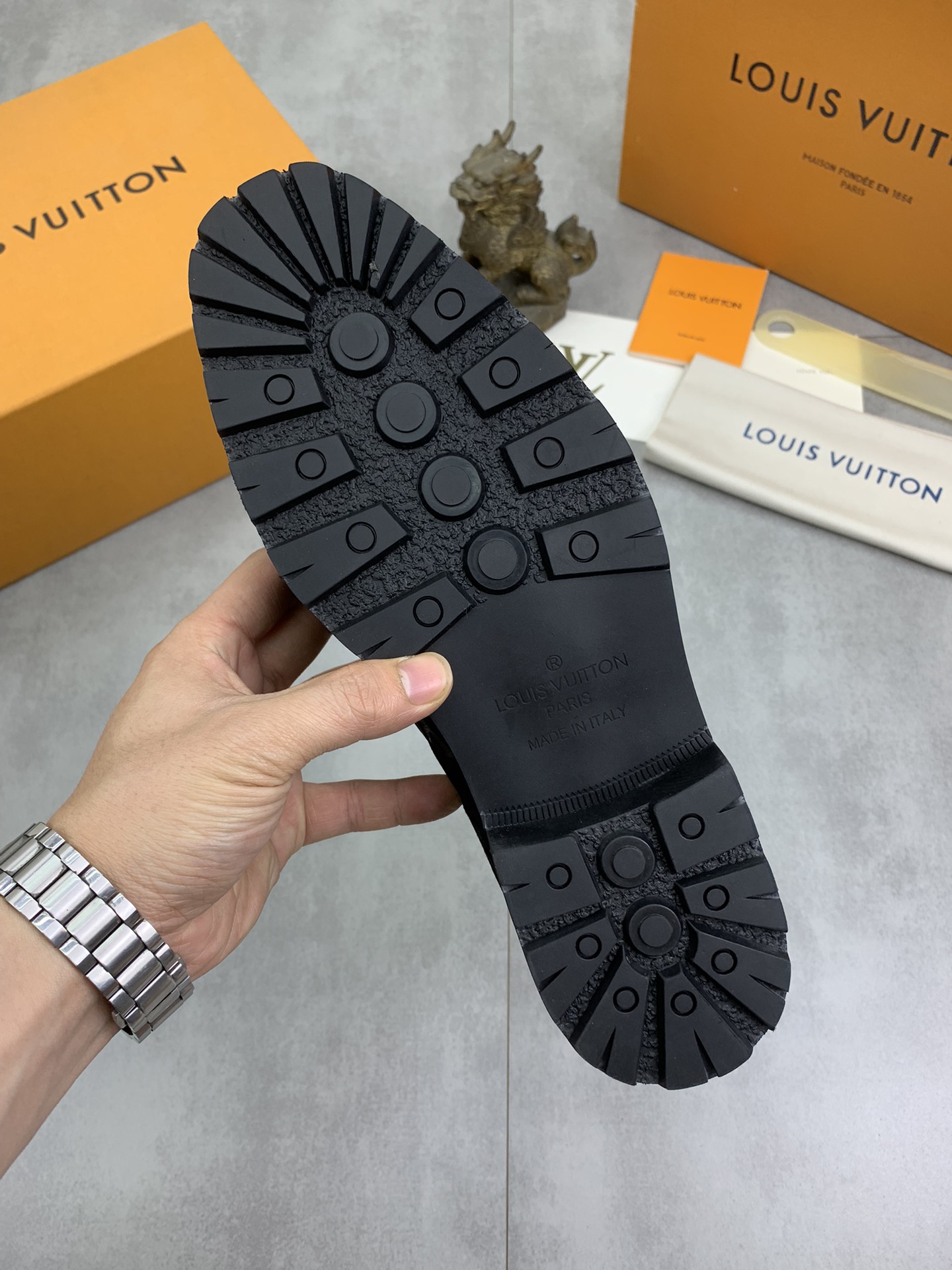 这款鞋子是AAAAA 1:1 质量 (非常棒). 使用了和原版一模一样的材料. 商标部分也保持了和路易威登/Louis Vuitton一样. 图片拍摄是实物鞋子拍摄, 您所收到的实物保证和我们图片一模一样.