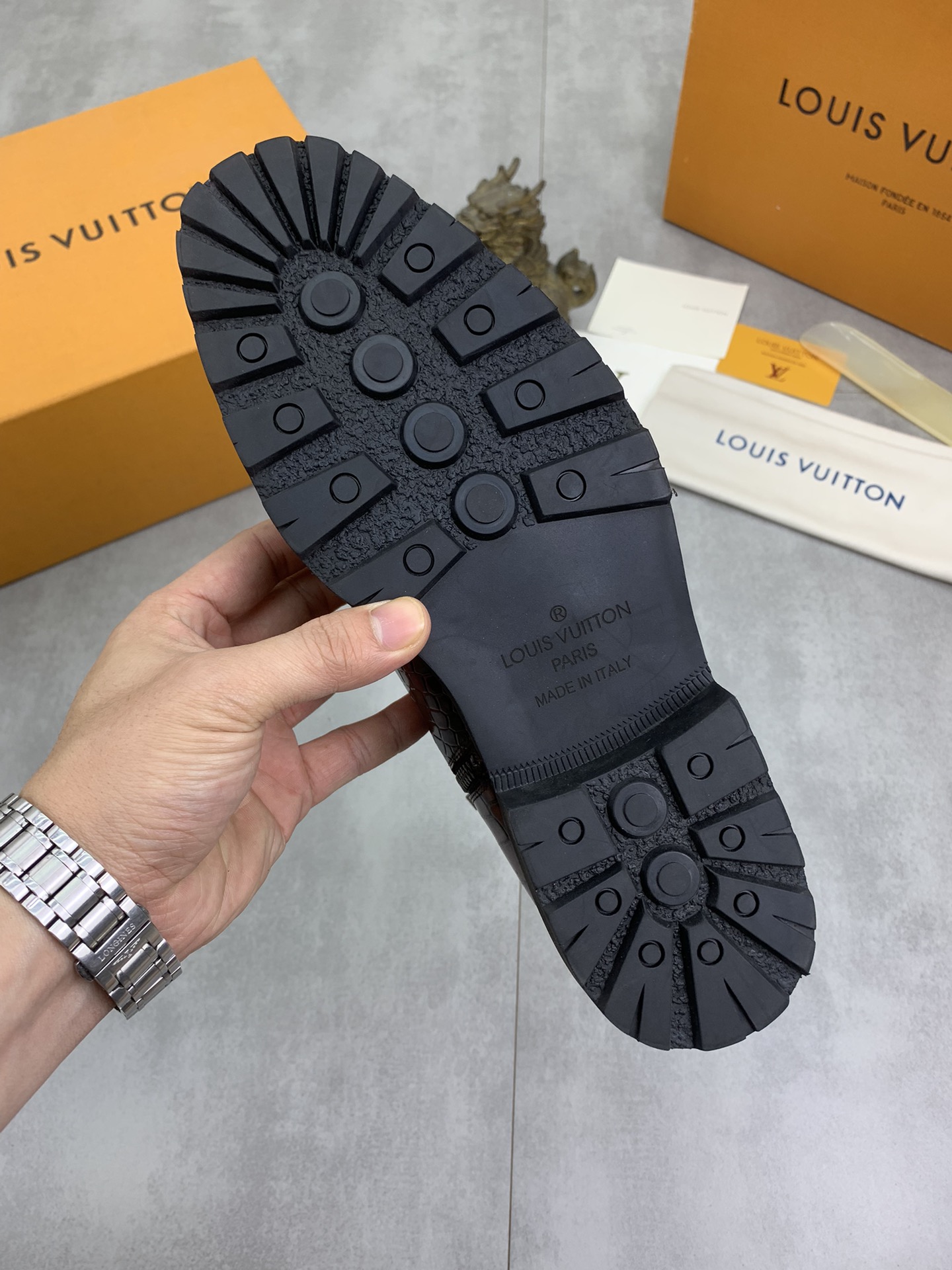 这款鞋子是AAAAA 1:1 质量 (非常棒). 使用了和原版一模一样的材料. 商标部分也保持了和路易威登/Louis Vuitton一样. 图片拍摄是实物鞋子拍摄, 您所收到的实物保证和我们图片一模一样.