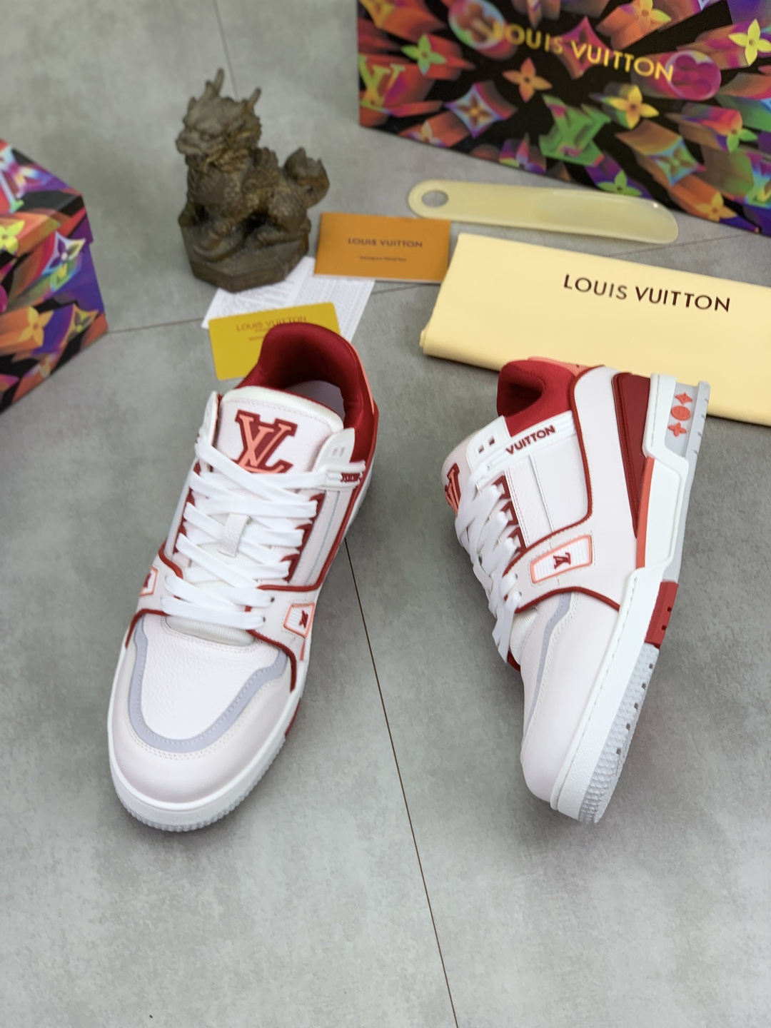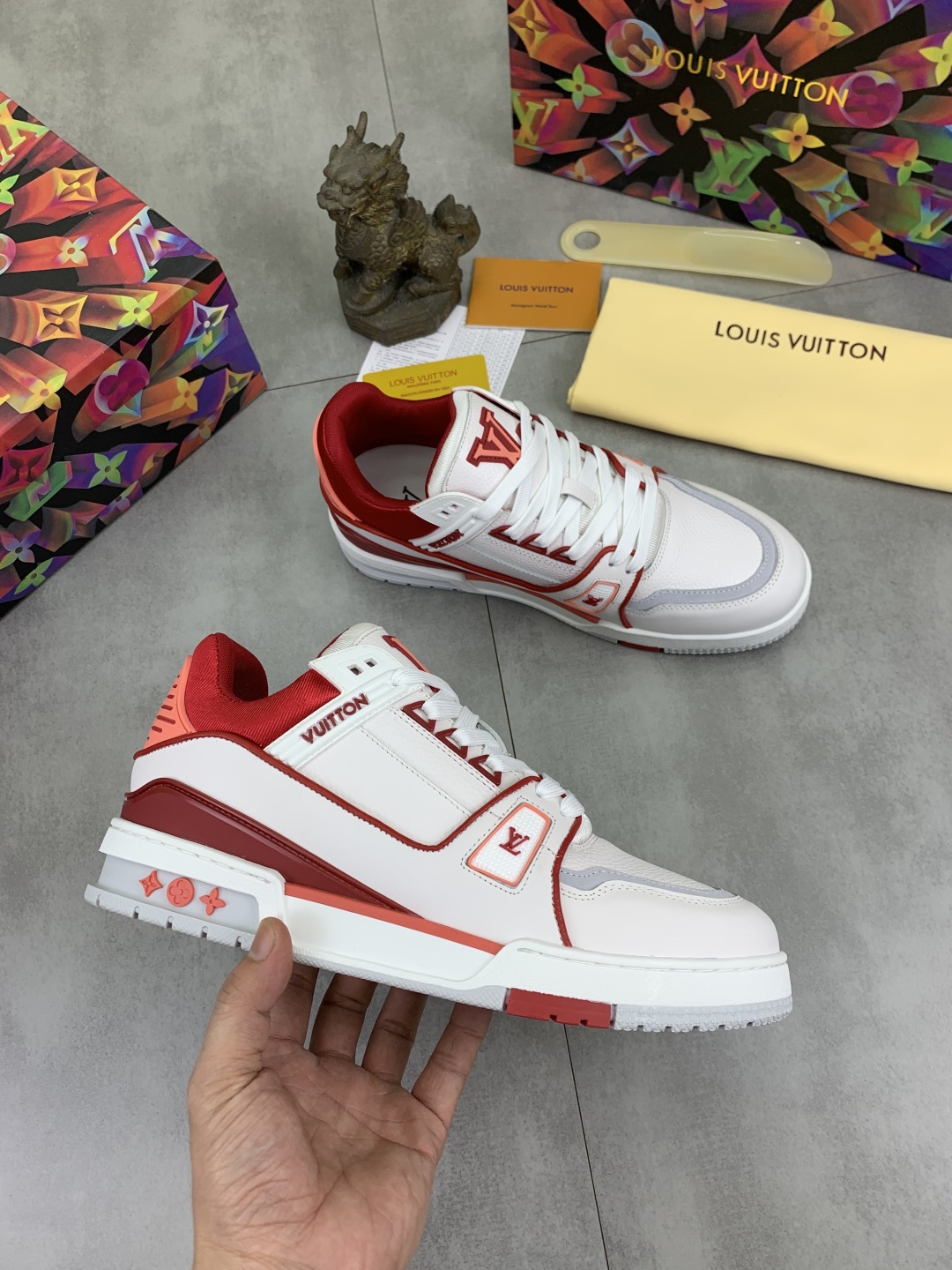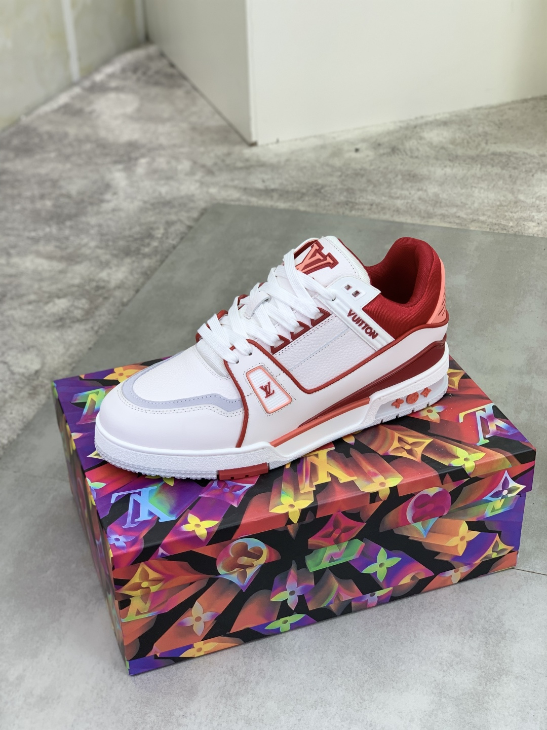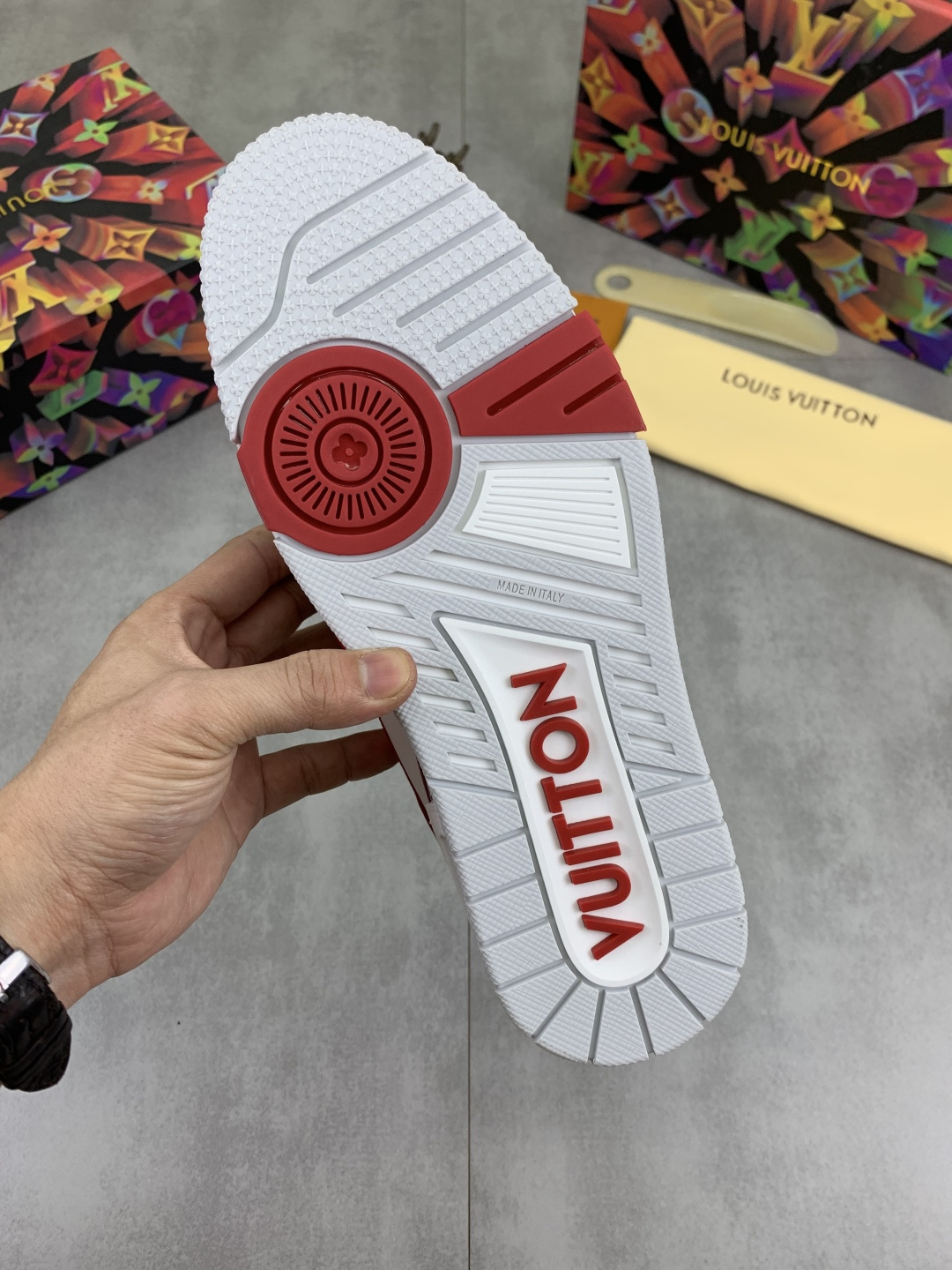 这款鞋子是AAAAA 1:1 质量 (非常棒). 使用了和原版一模一样的材料. 商标部分也保持了和路易威登/Louis Vuitton一样. 图片拍摄是实物鞋子拍摄, 您所收到的实物保证和我们图片一模一样.