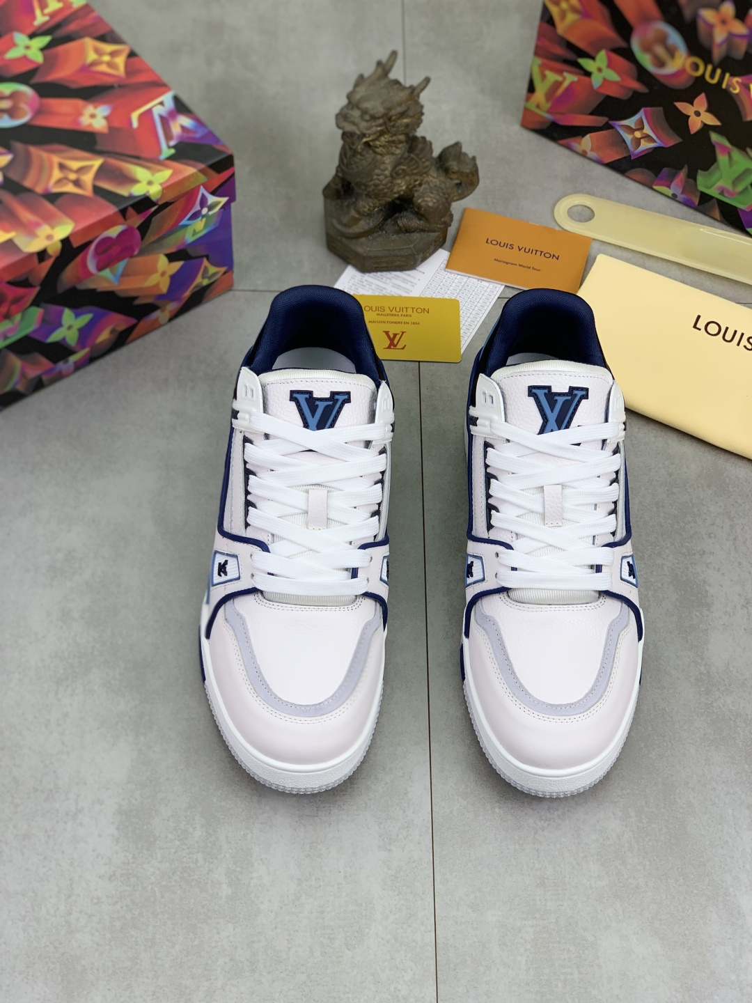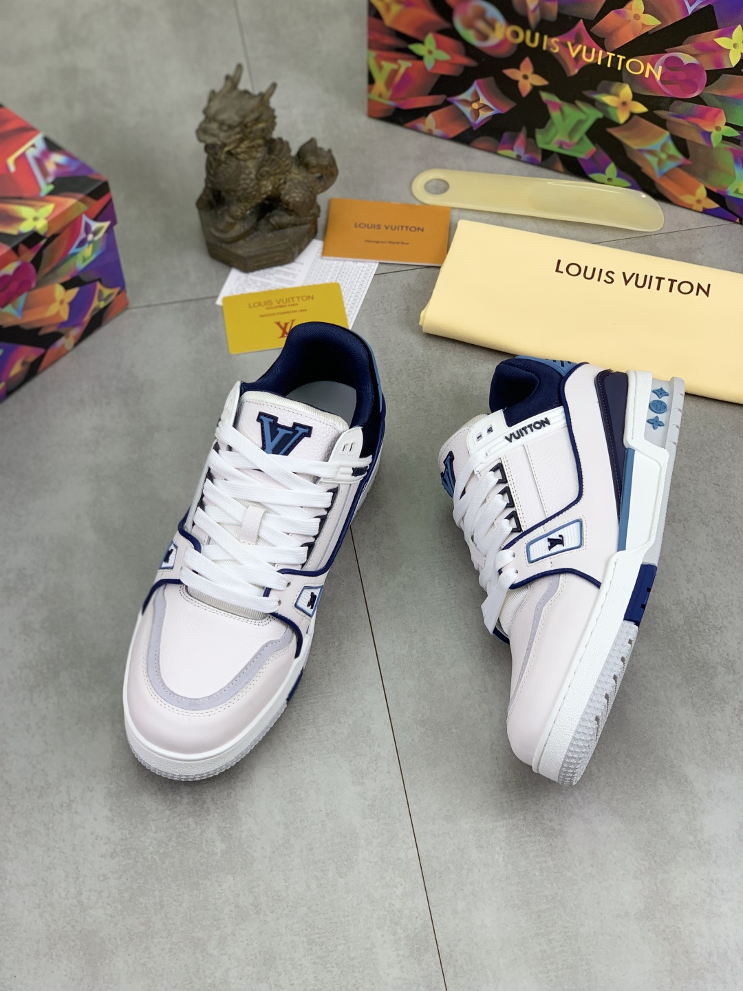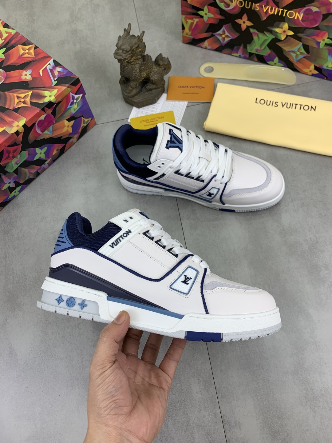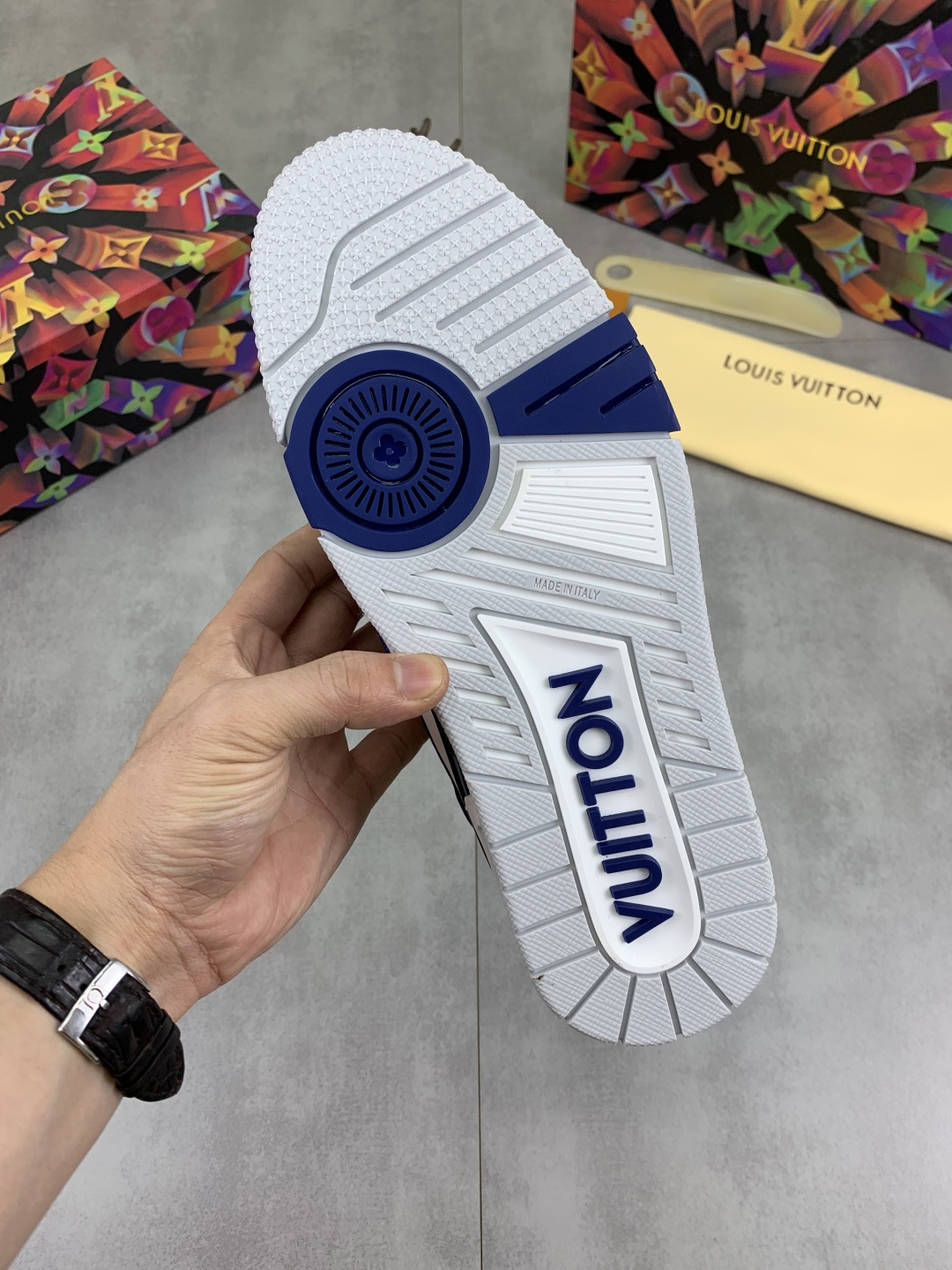 这款鞋子是AAAAA 1:1 质量 (非常棒). 使用了和原版一模一样的材料. 商标部分也保持了和路易威登/Louis Vuitton一样. 图片拍摄是实物鞋子拍摄, 您所收到的实物保证和我们图片一模一样.