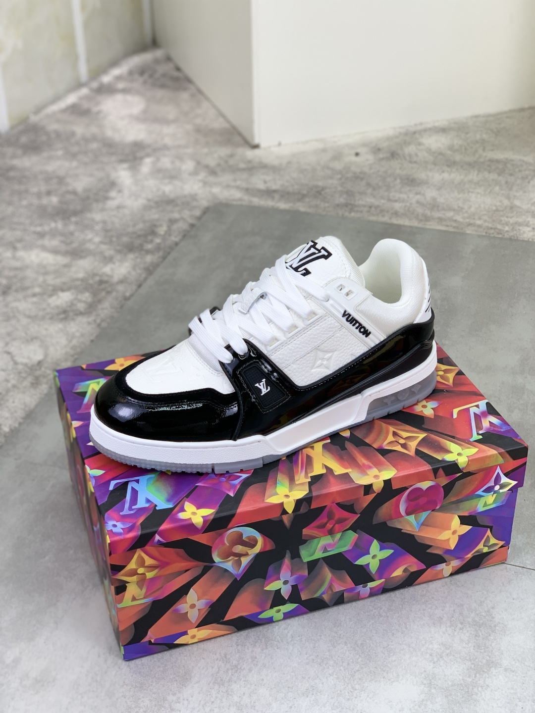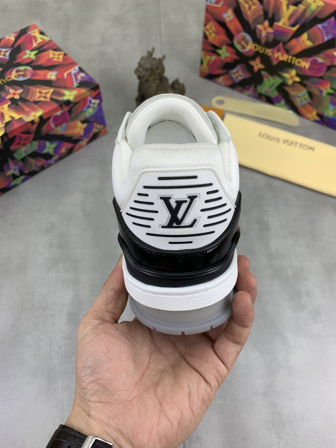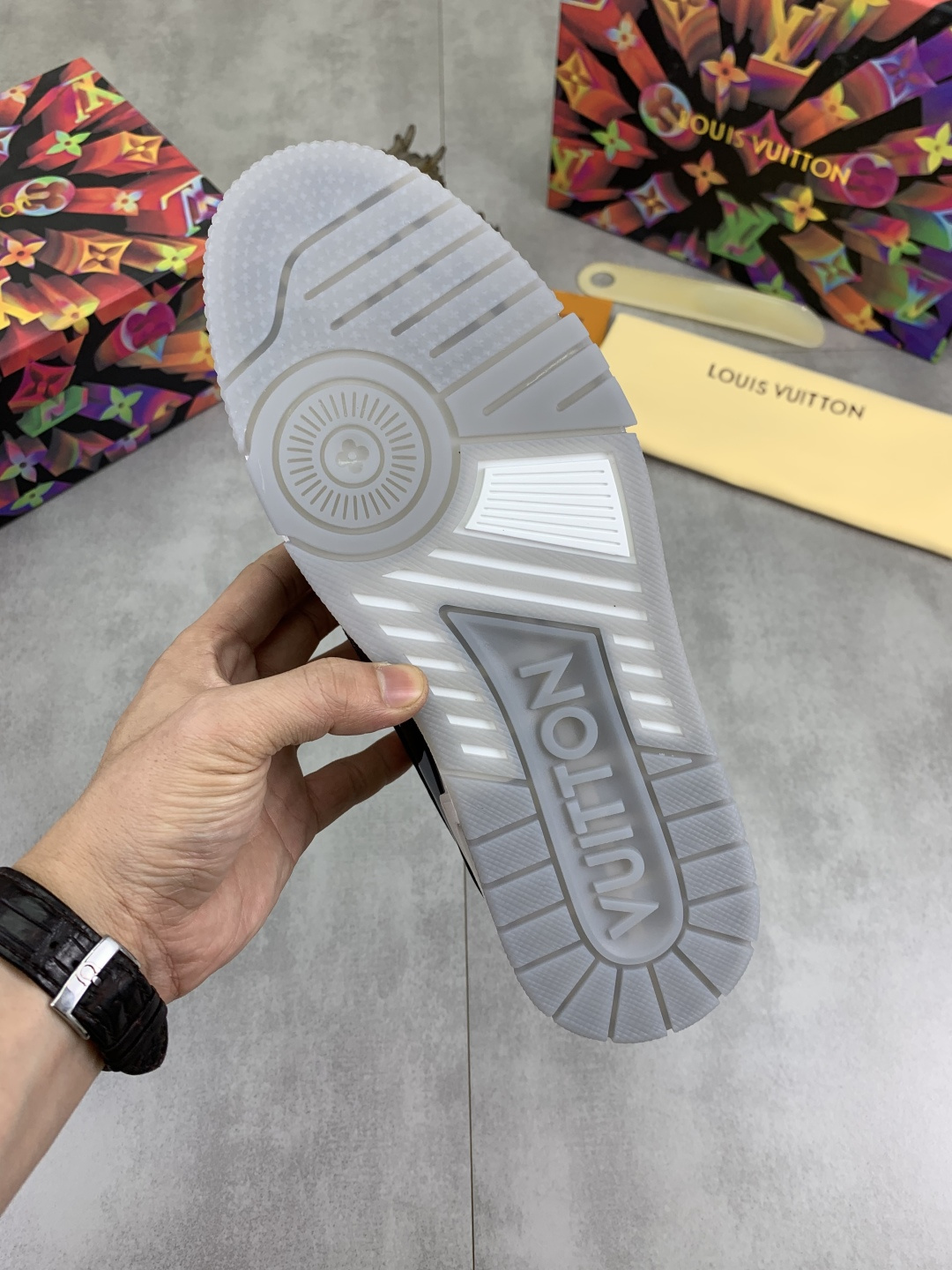 这款鞋子是AAAAA 1:1 质量 (非常棒). 使用了和原版一模一样的材料. 商标部分也保持了和路易威登/Louis Vuitton一样. 图片拍摄是实物鞋子拍摄, 您所收到的实物保证和我们图片一模一样.