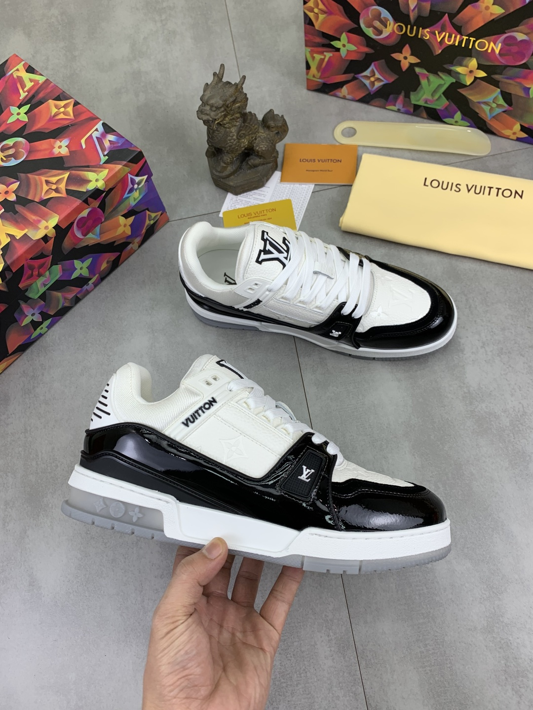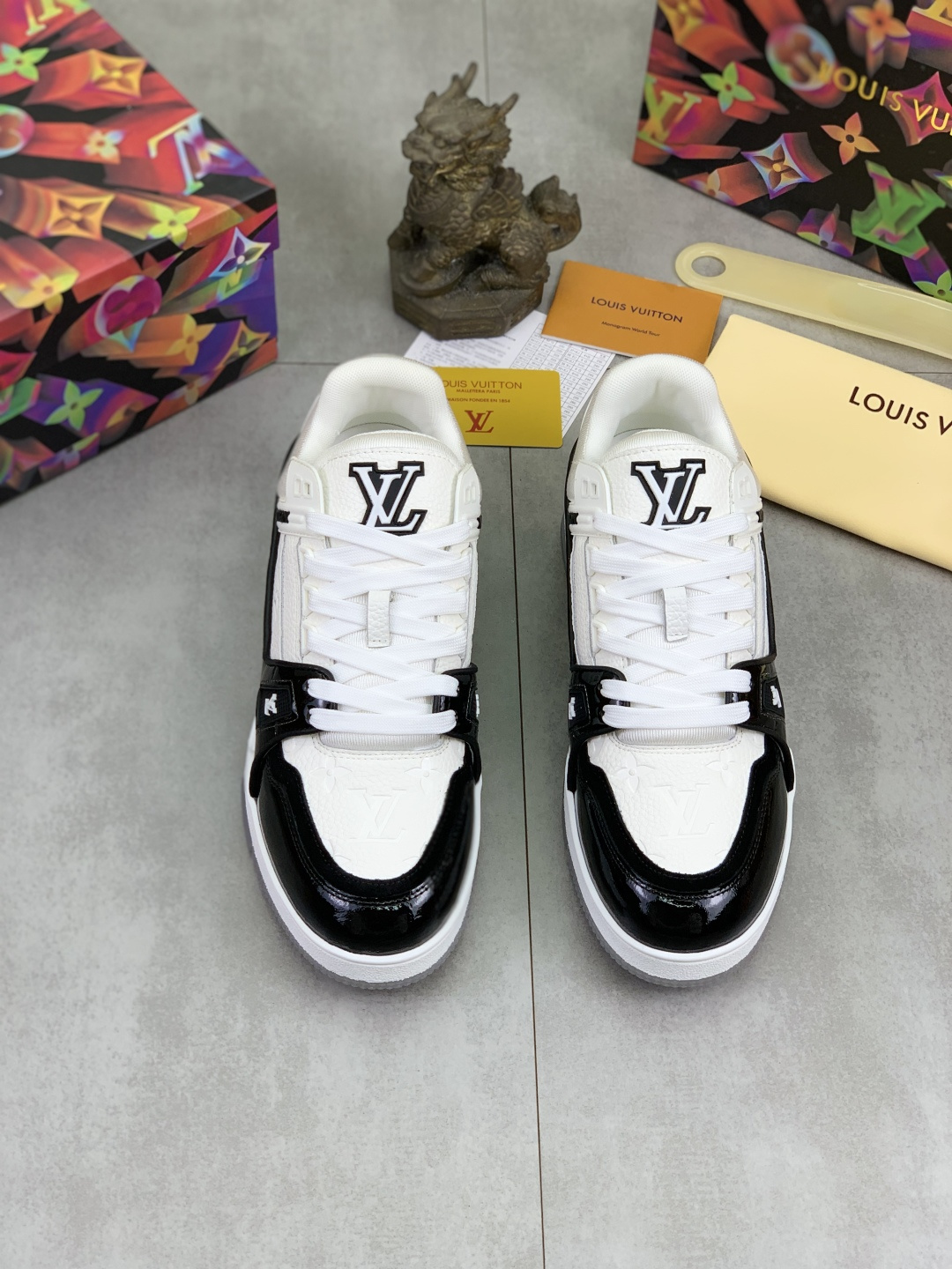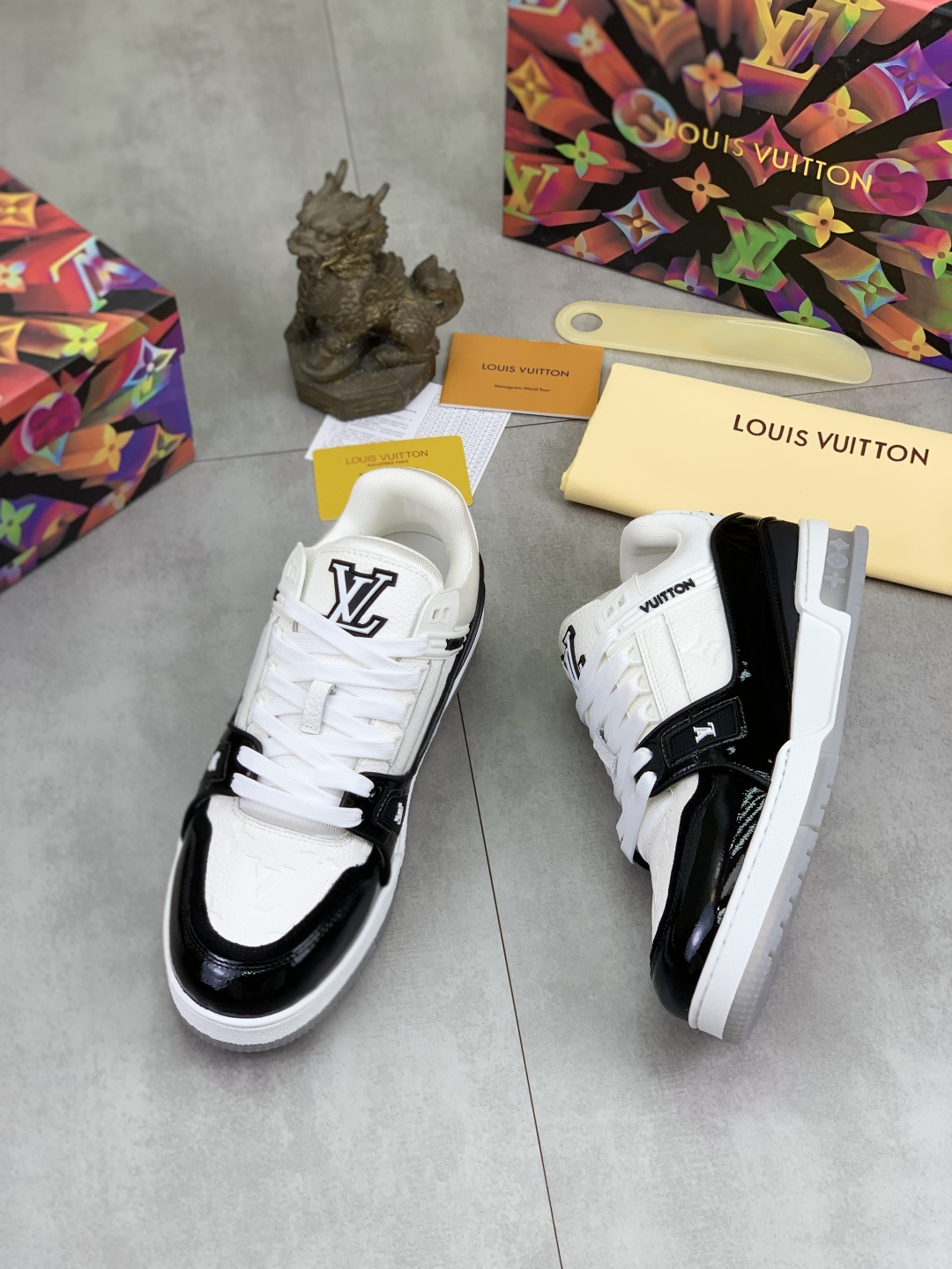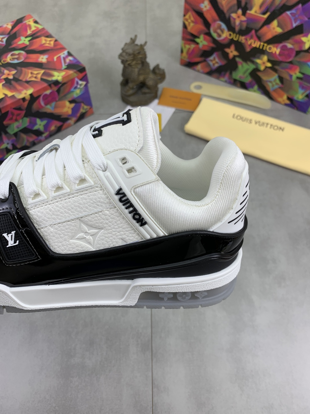 这款鞋子是AAAAA 1:1 质量 (非常棒). 使用了和原版一模一样的材料. 商标部分也保持了和路易威登/Louis Vuitton一样. 图片拍摄是实物鞋子拍摄, 您所收到的实物保证和我们图片一模一样.