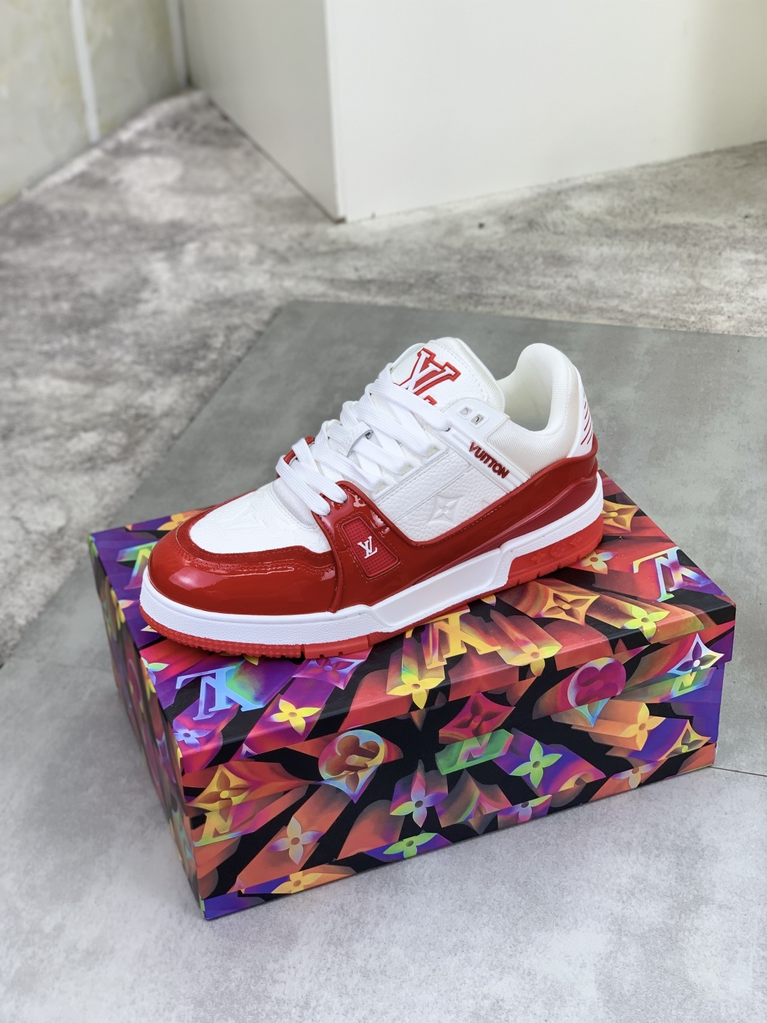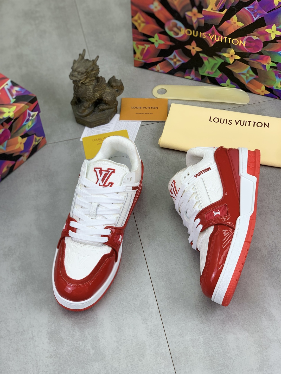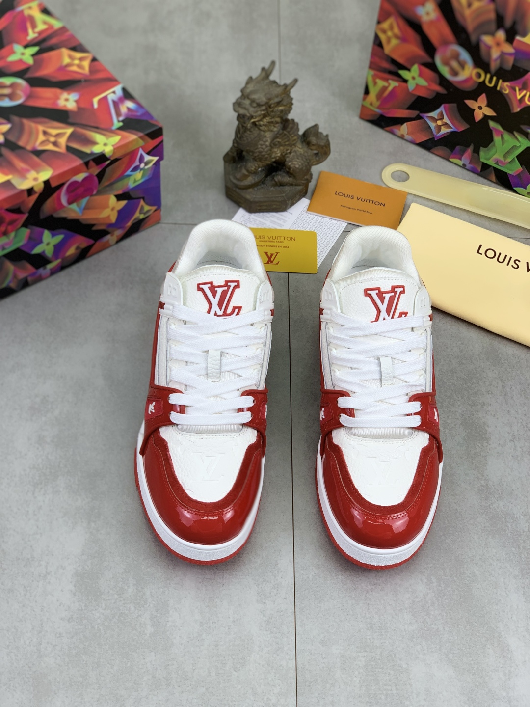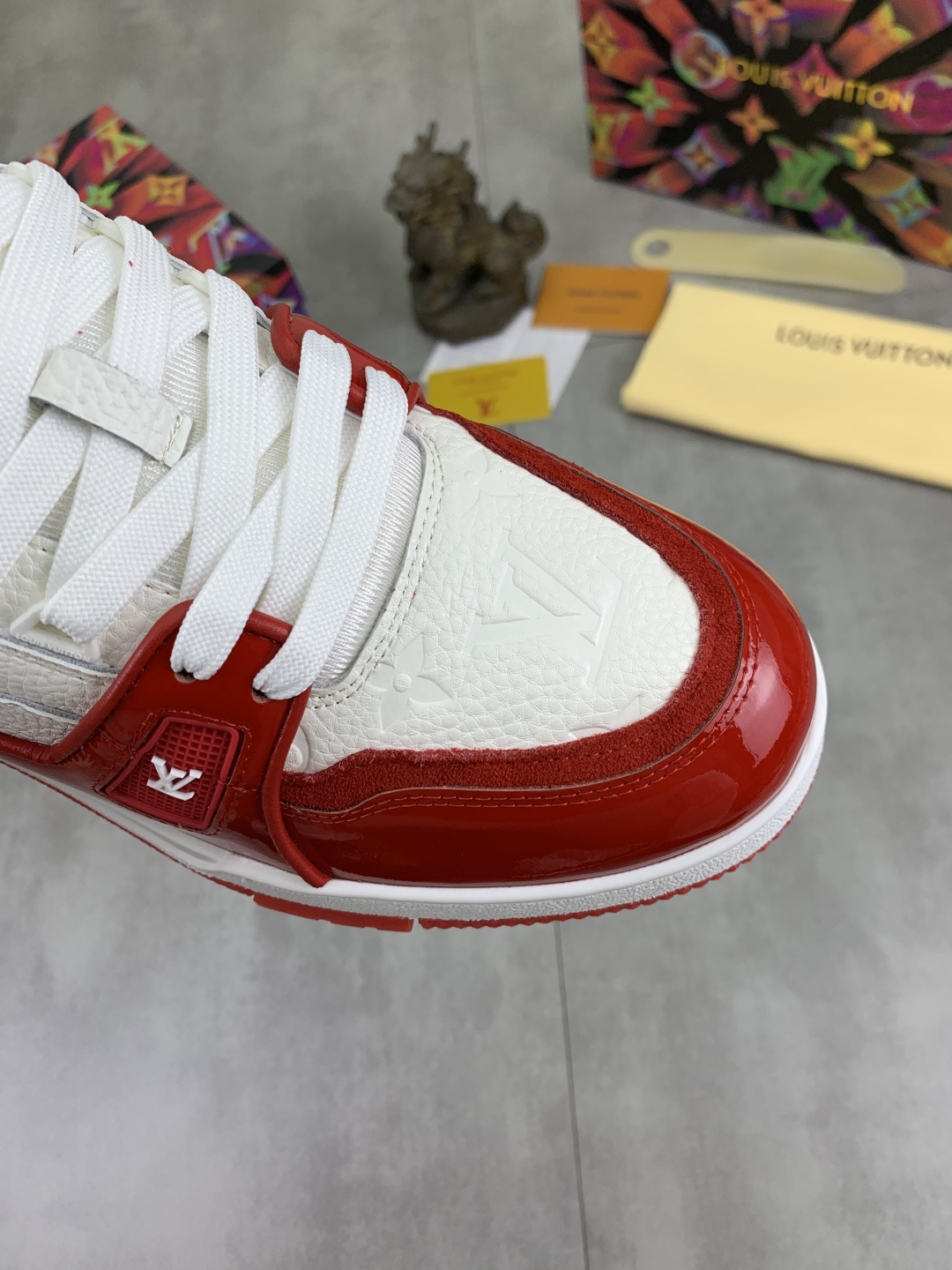 这款鞋子是AAAAA 1:1 质量 (非常棒). 使用了和原版一模一样的材料. 商标部分也保持了和路易威登/Louis Vuitton一样. 图片拍摄是实物鞋子拍摄, 您所收到的实物保证和我们图片一模一样.