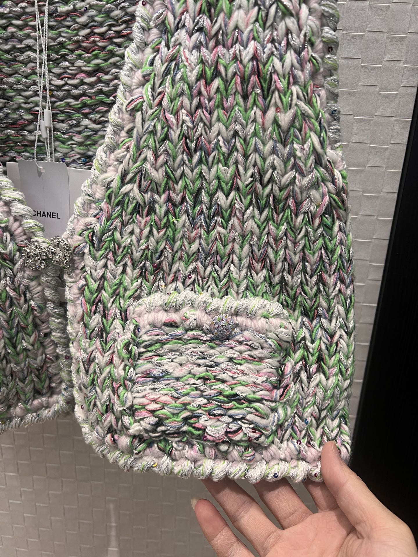 这款衣服是AAAAA 1:1 质量 (非常棒). 使用了和原版一模一样的材料. 商标部分也保持了和香奈儿/Chanel一样. 图片拍摄是实物衣服拍摄, 您所收到的实物保证和我们图片一模一样.