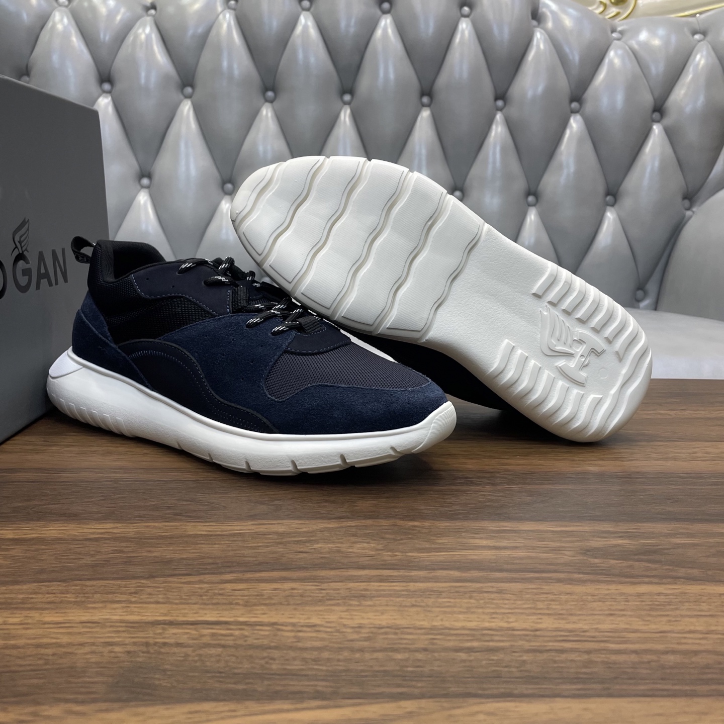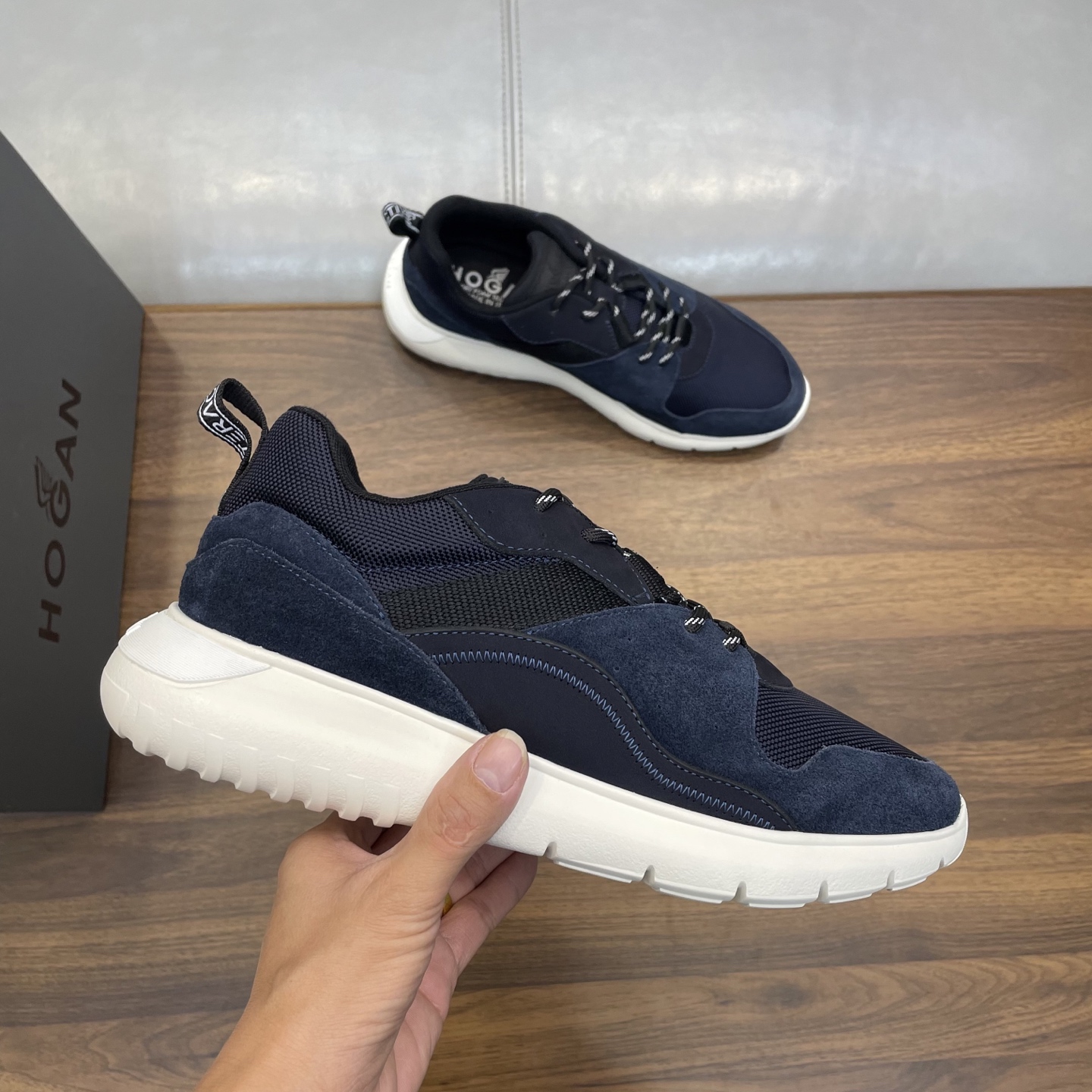 这款鞋子是AAAAA 1:1 质量 (非常棒). 使用了和原版一模一样的材料. 商标部分也保持了和Hogan一样. 图片拍摄是实物鞋子拍摄, 您所收到的实物保证和我们图片一模一样.
