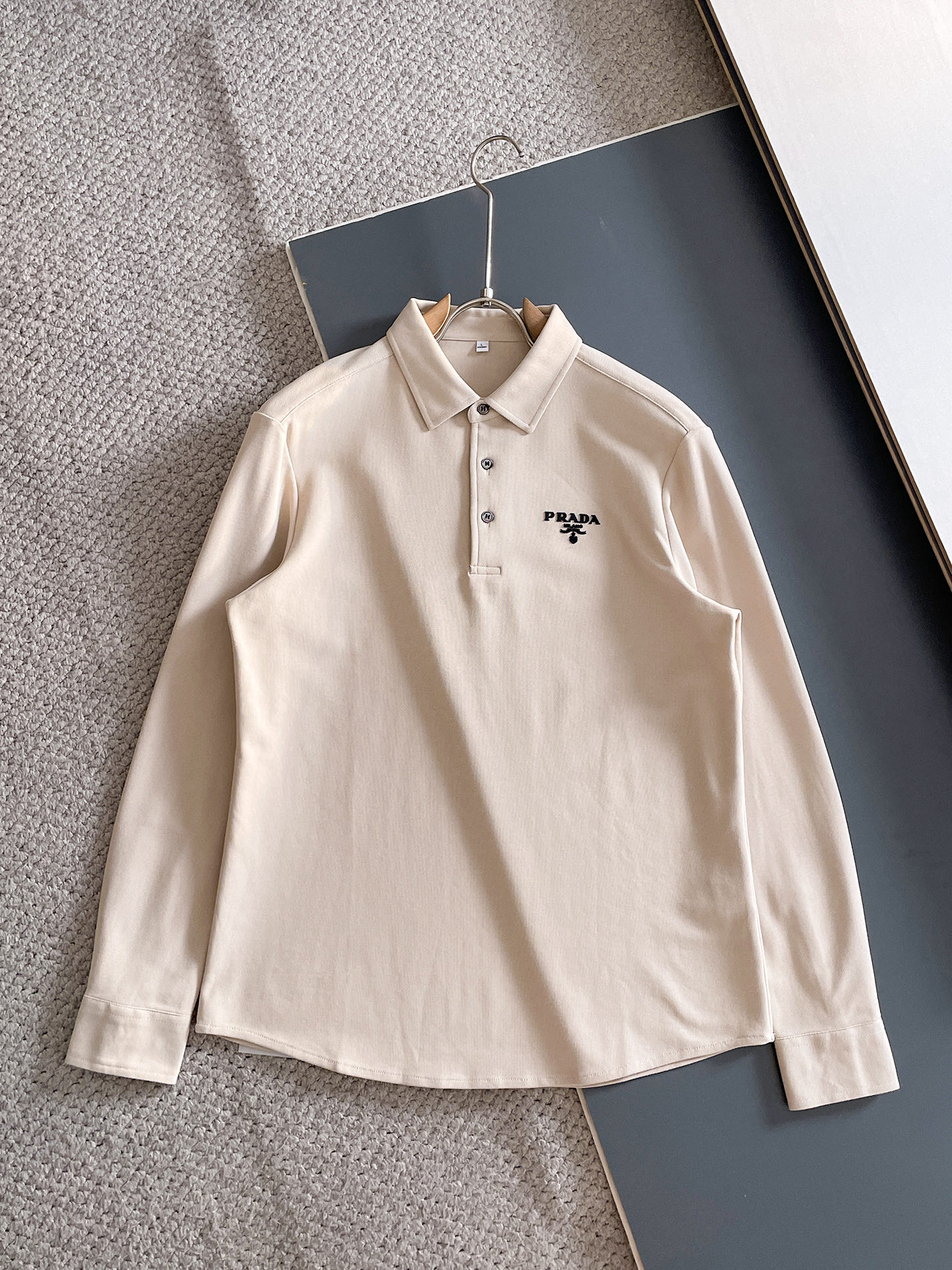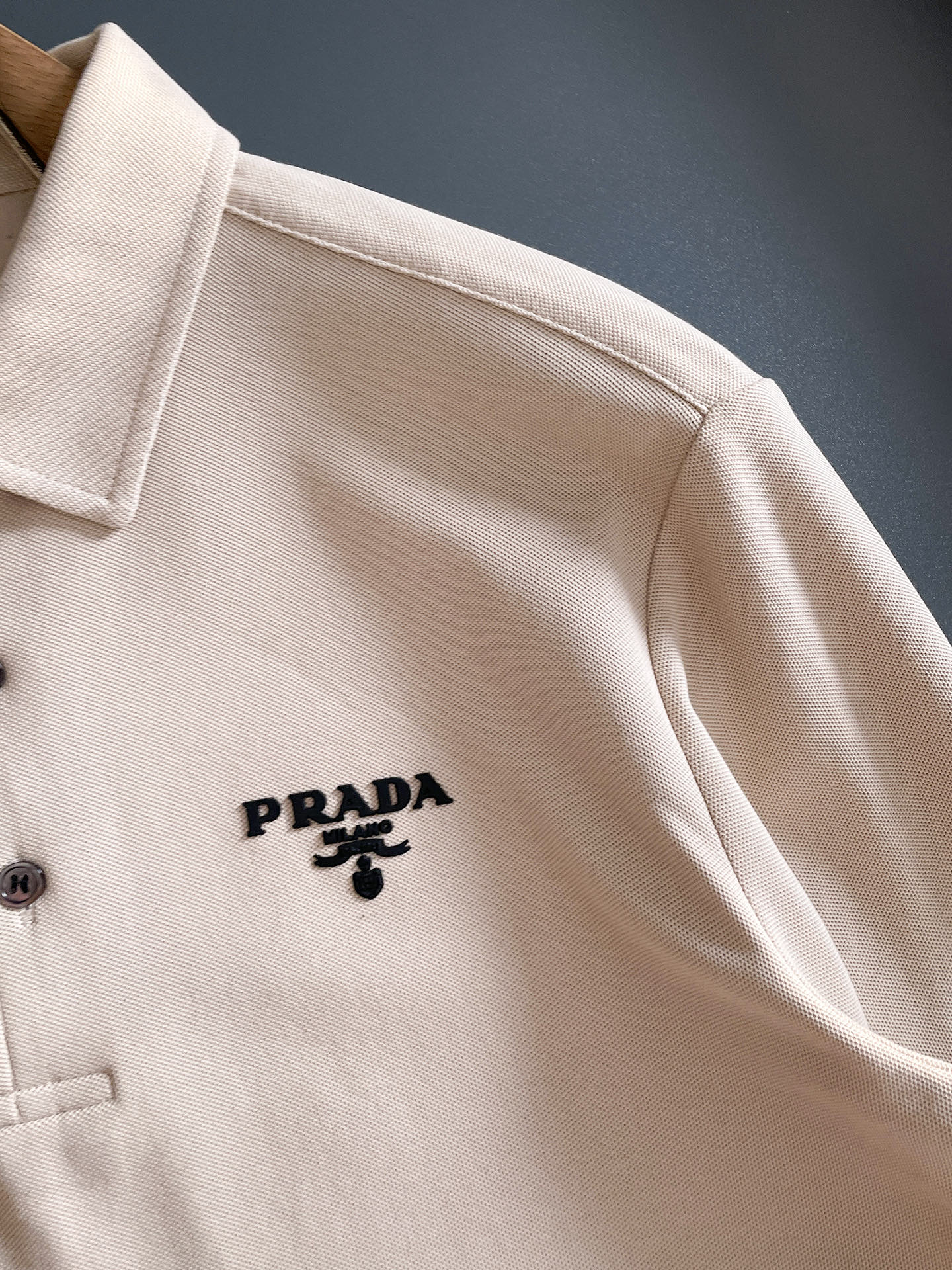 这款衣服是AAAAA 1:1 质量 (非常棒). 使用了和原版一模一样的材料. 商标部分也保持了和普拉达/Prada一样. 图片拍摄是实物衣服拍摄, 您所收到的实物保证和我们图片一模一样.
