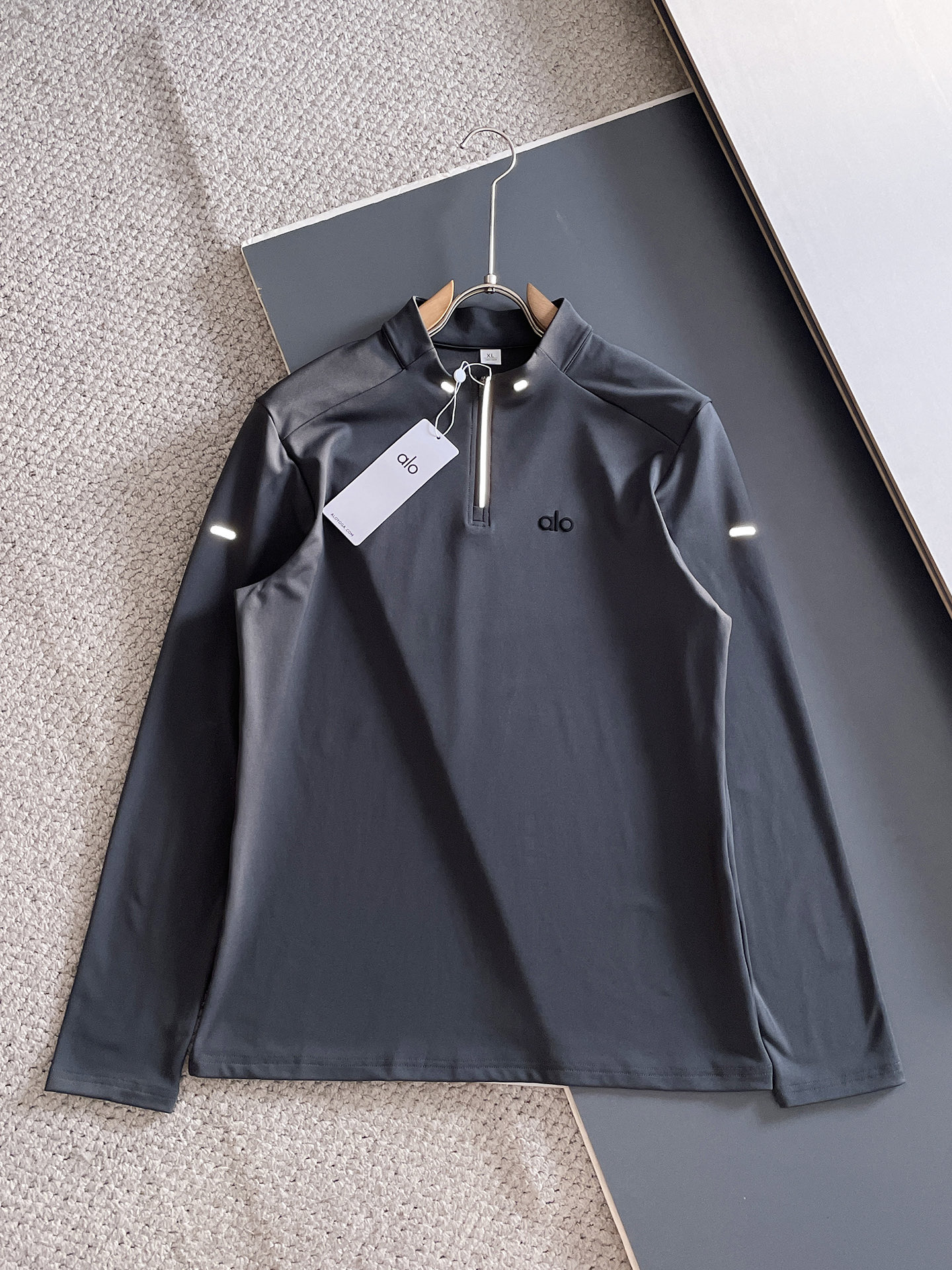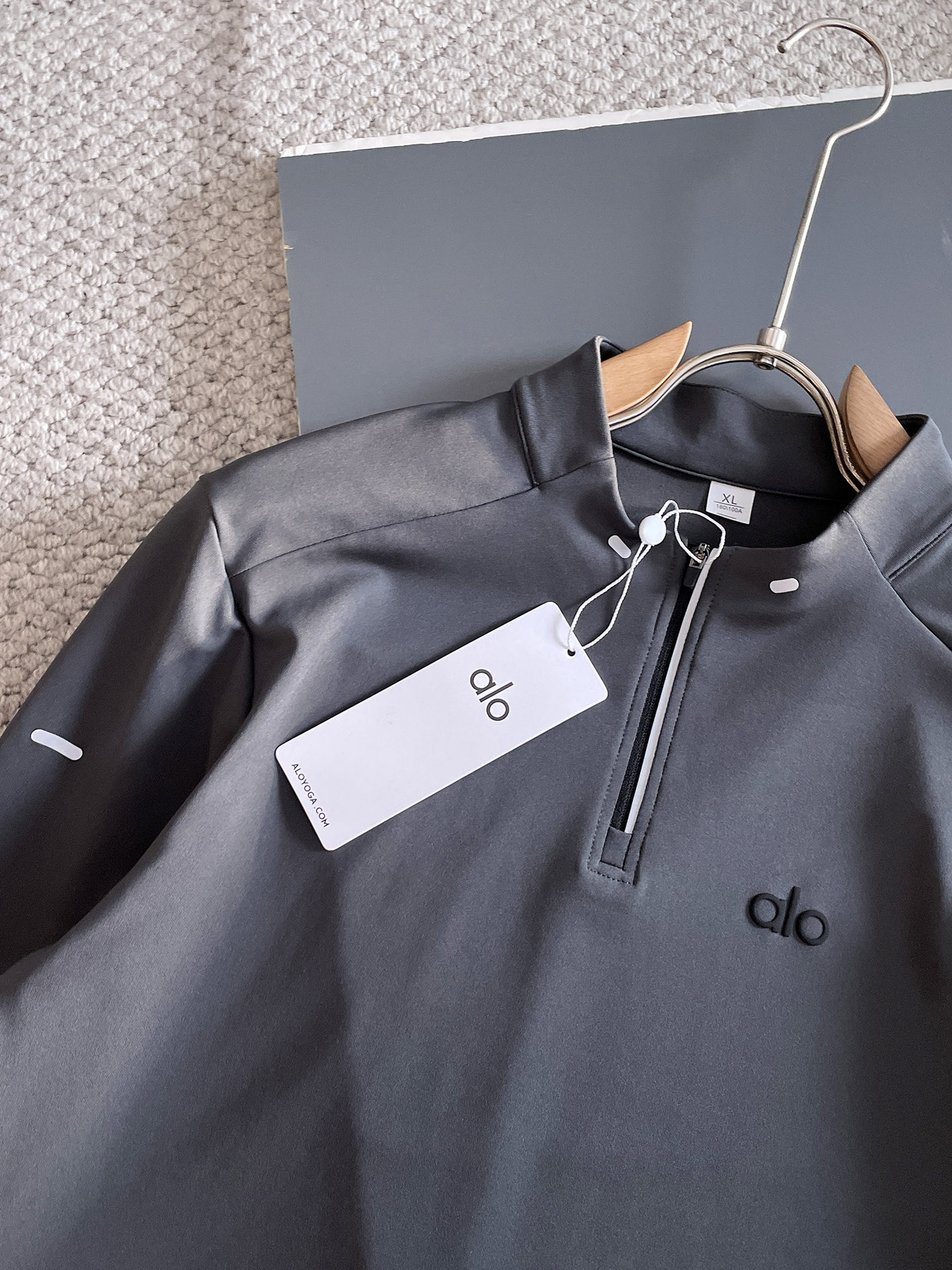这款衣服是AAAAA 1:1 质量 (非常棒). 使用了和原版一模一样的材料. 商标部分也保持了和Alo Yoga一样. 图片拍摄是实物衣服拍摄, 您所收到的实物保证和我们图片一模一样.