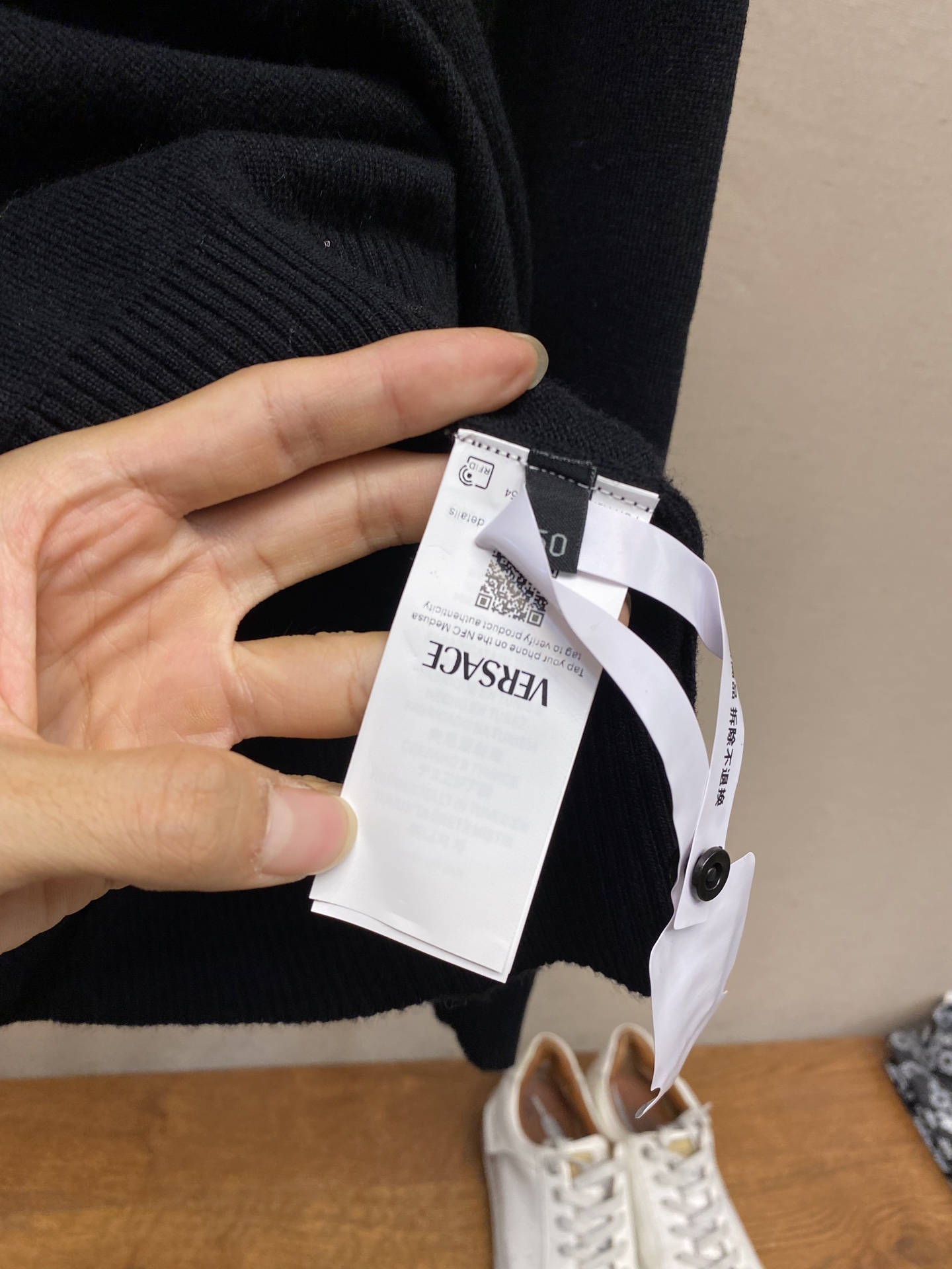 这款衣服是AAAAA 1:1 质量 (非常棒). 使用了和原版一模一样的材料. 商标部分也保持了和范思哲/Versace一样. 图片拍摄是实物衣服拍摄, 您所收到的实物保证和我们图片一模一样.