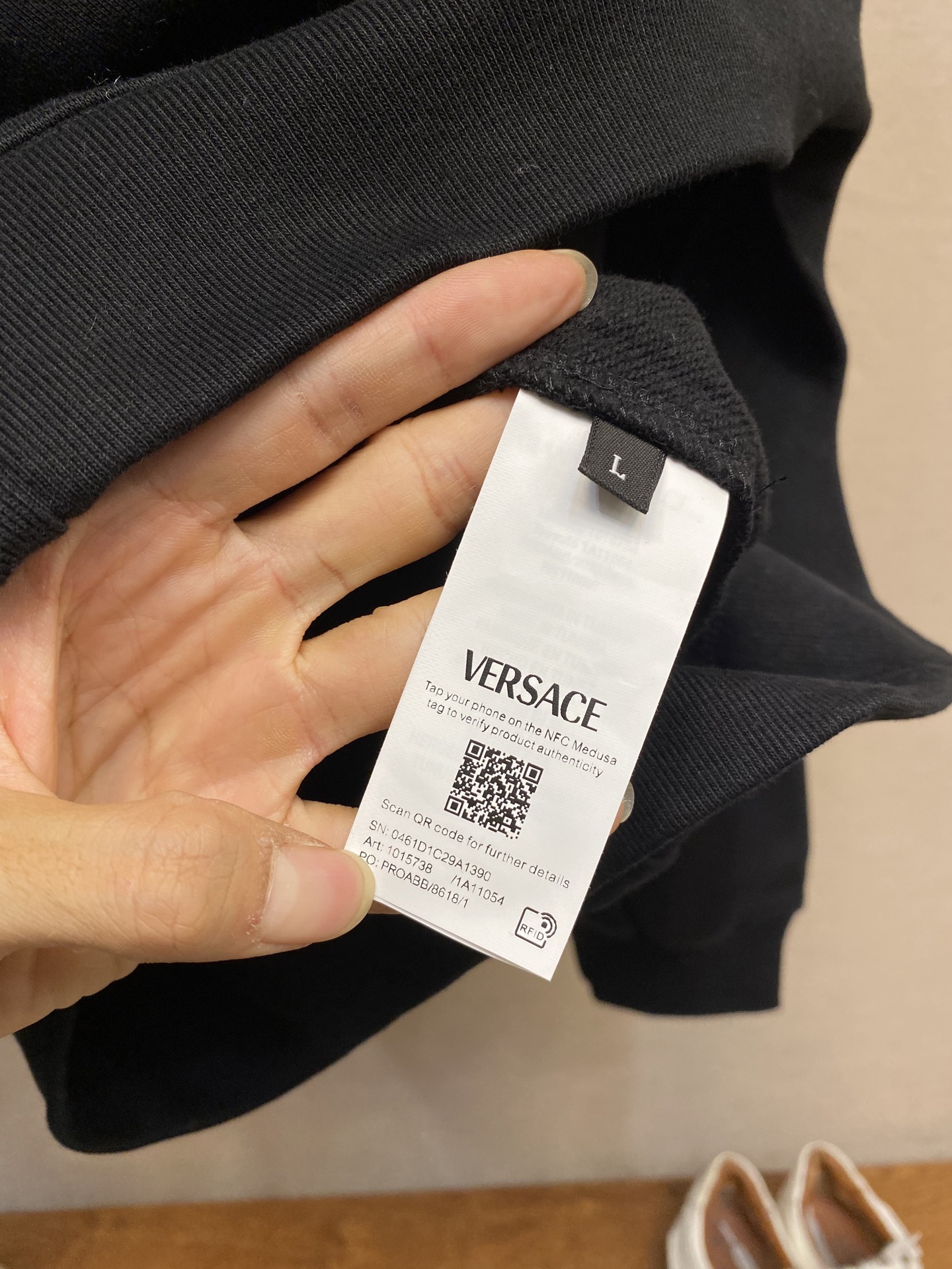 这款衣服是AAAAA 1:1 质量 (非常棒). 使用了和原版一模一样的材料. 商标部分也保持了和范思哲/Versace一样. 图片拍摄是实物衣服拍摄, 您所收到的实物保证和我们图片一模一样.