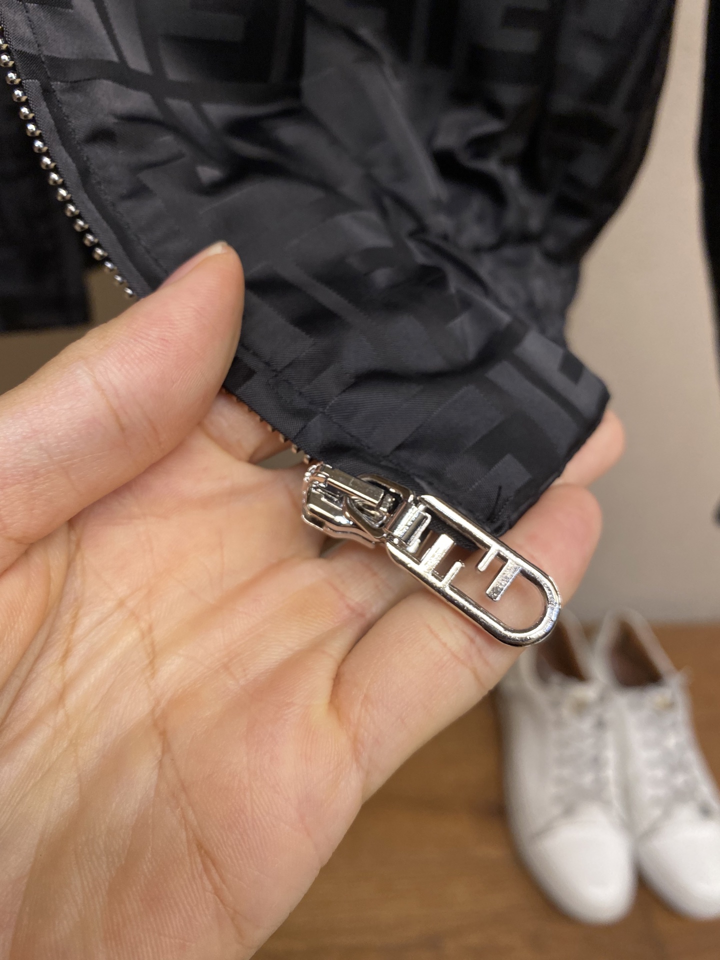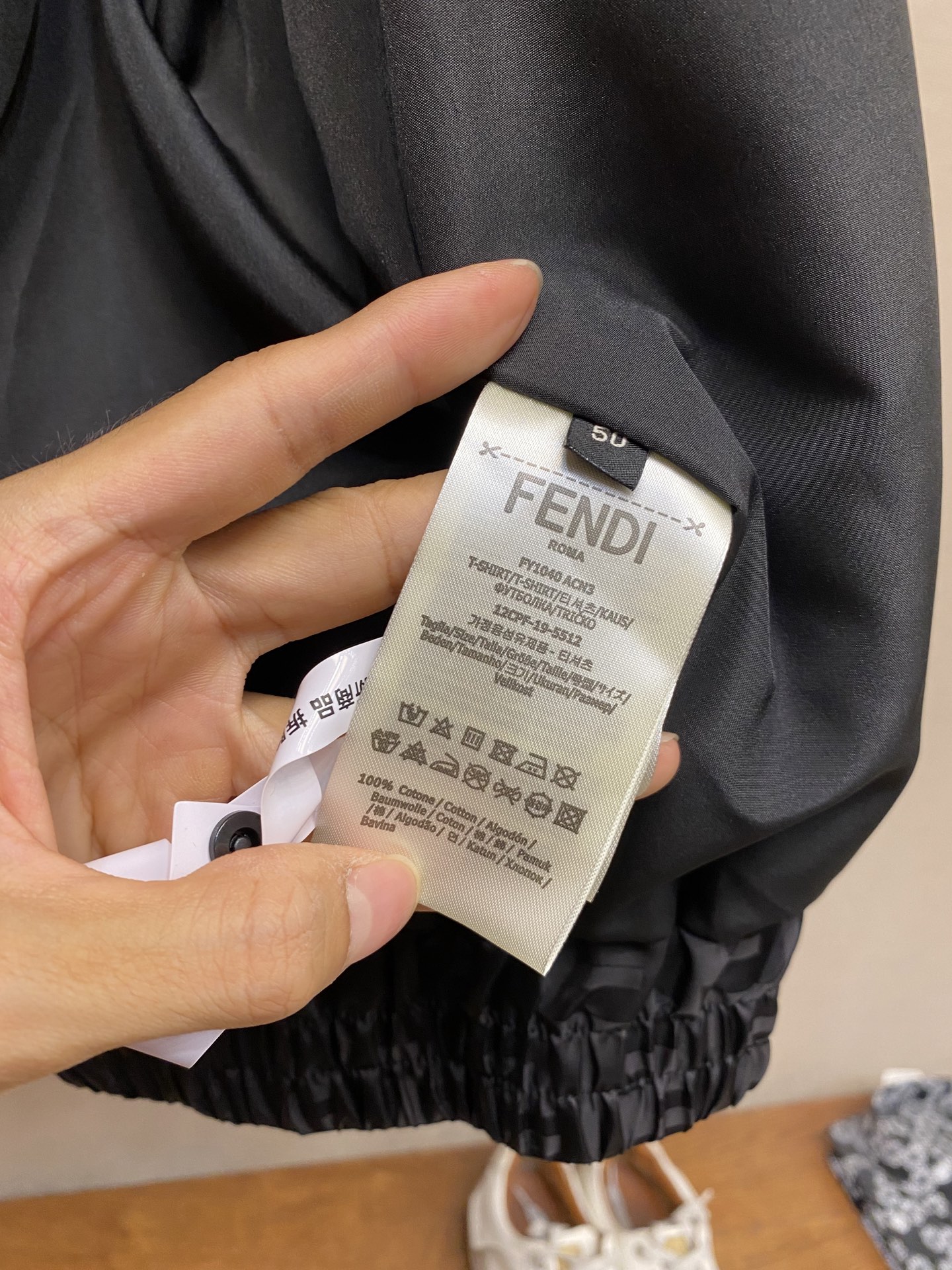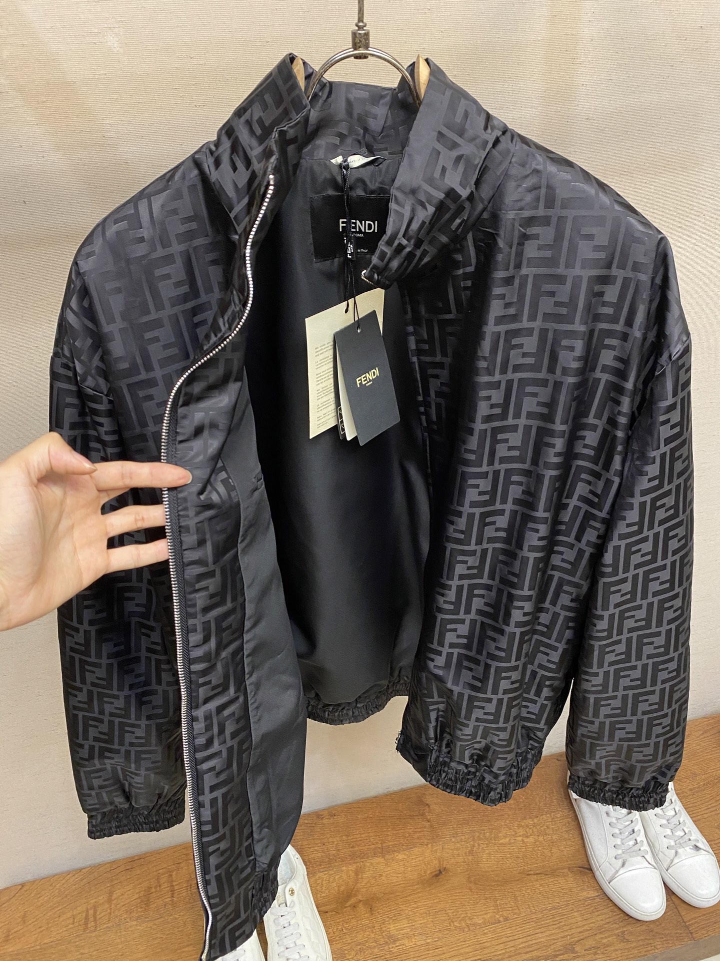 这款衣服是AAAAA 1:1 质量 (非常棒). 使用了和原版一模一样的材料. 商标部分也保持了和芬迪/Fendi一样. 图片拍摄是实物衣服拍摄, 您所收到的实物保证和我们图片一模一样.