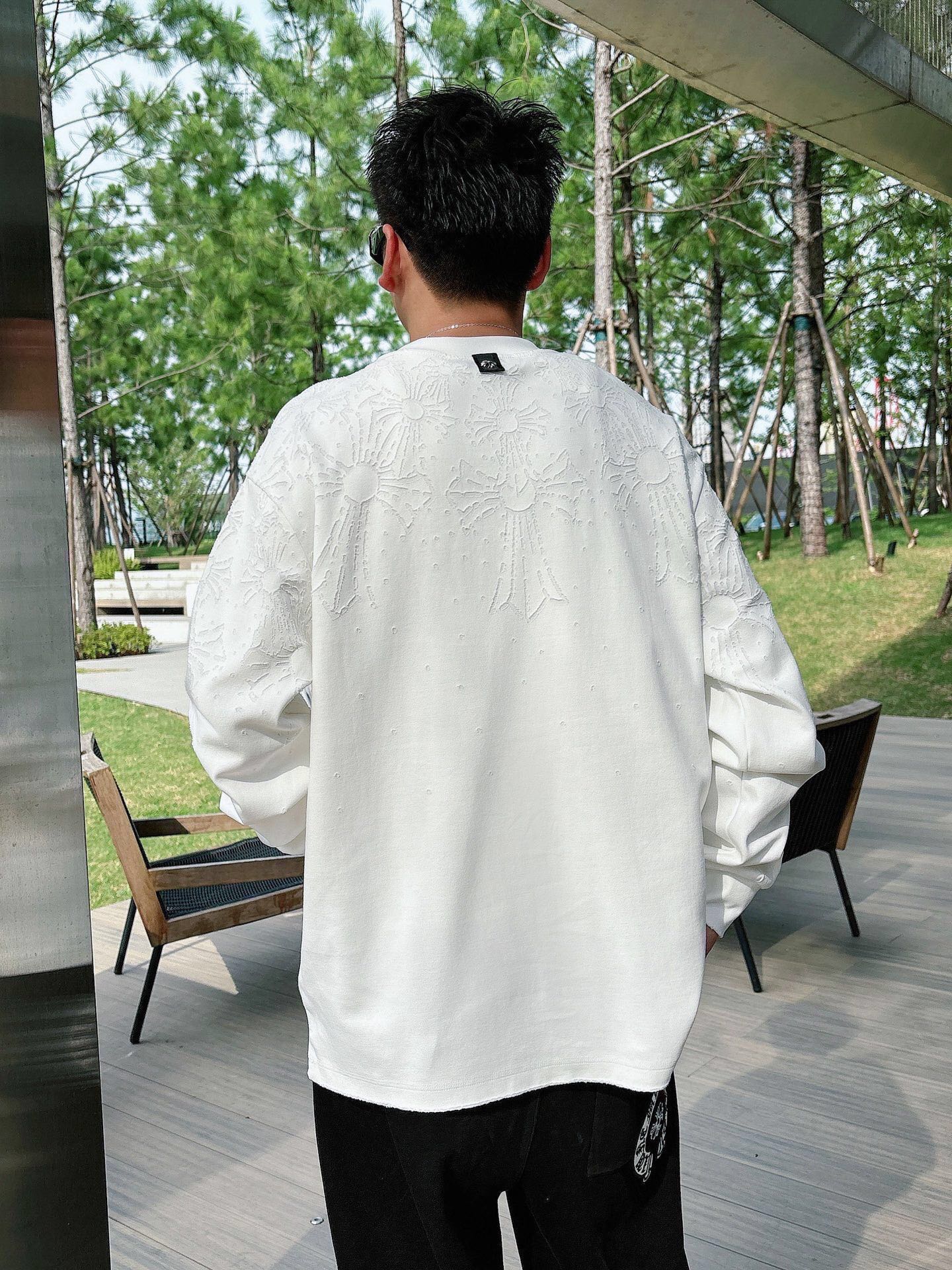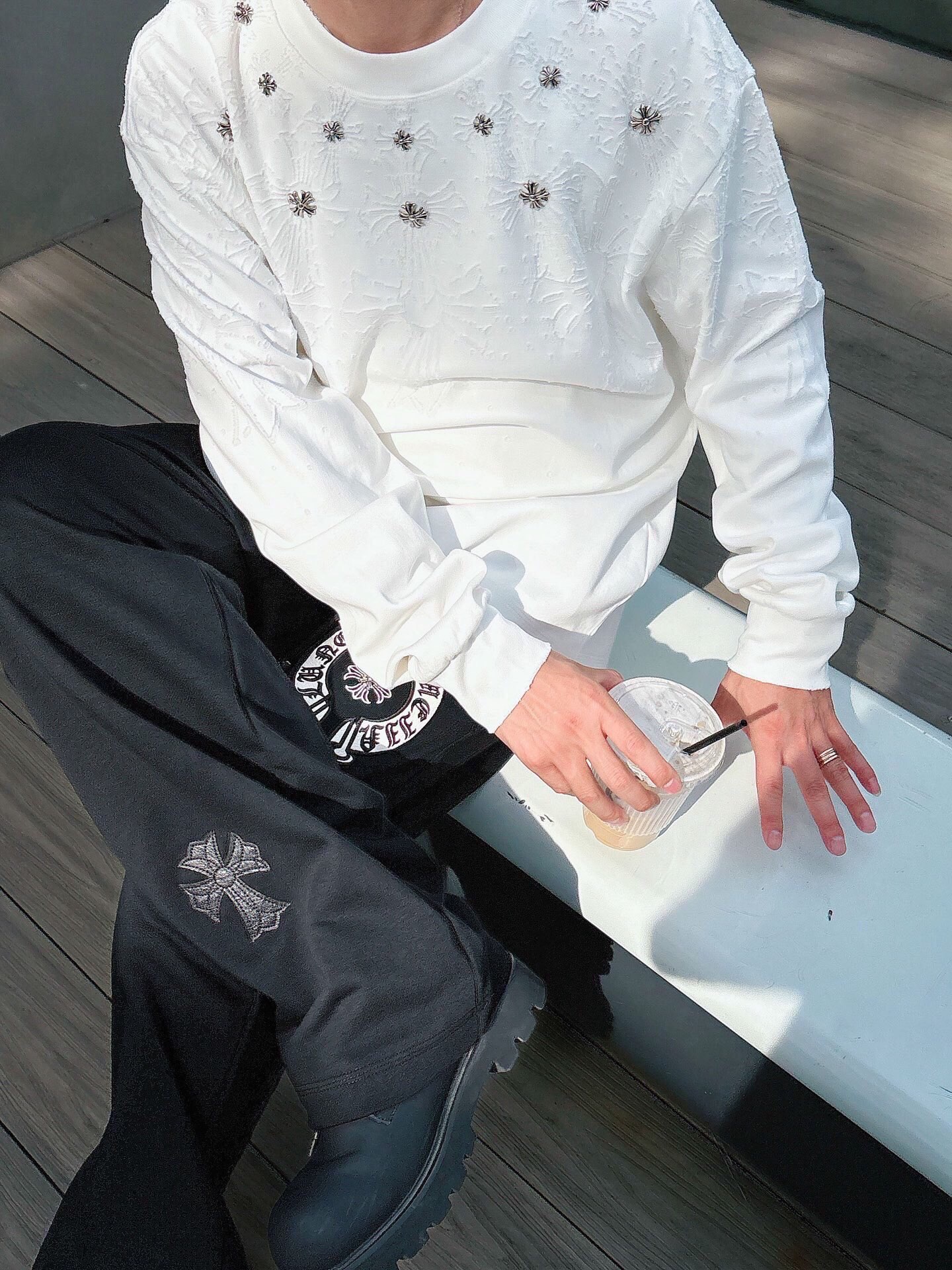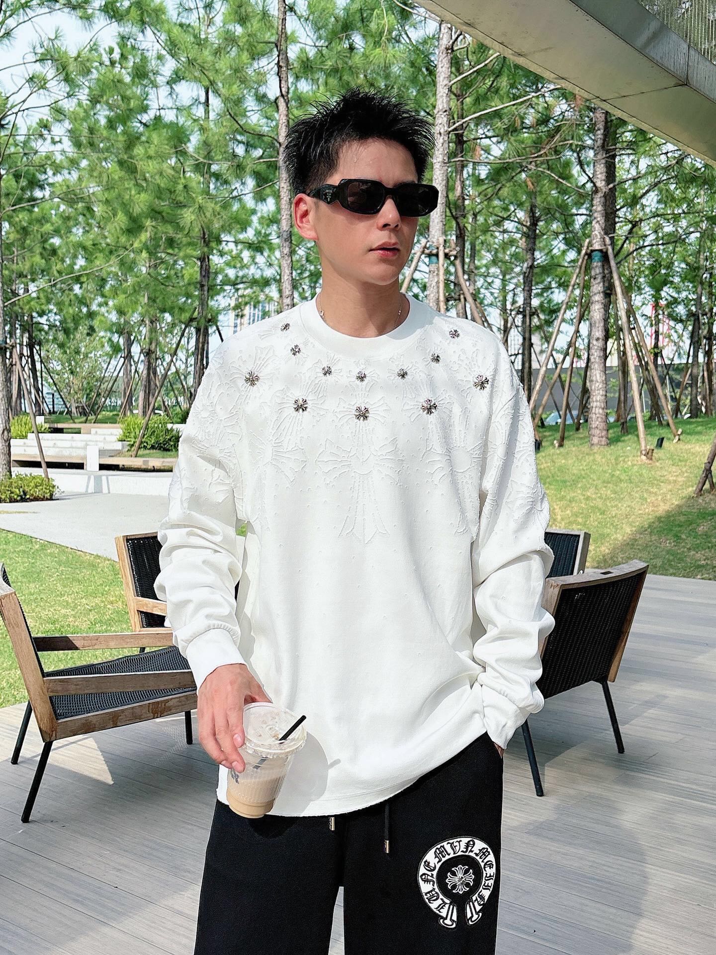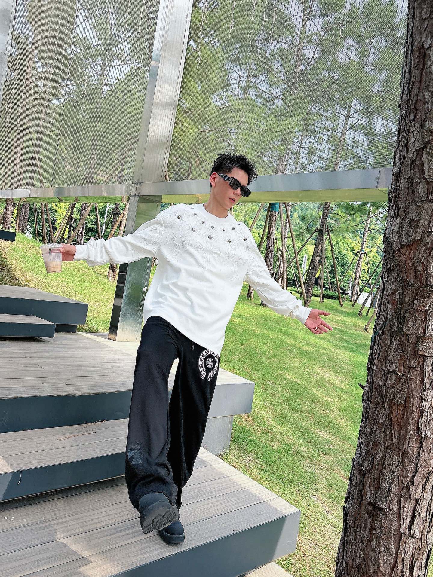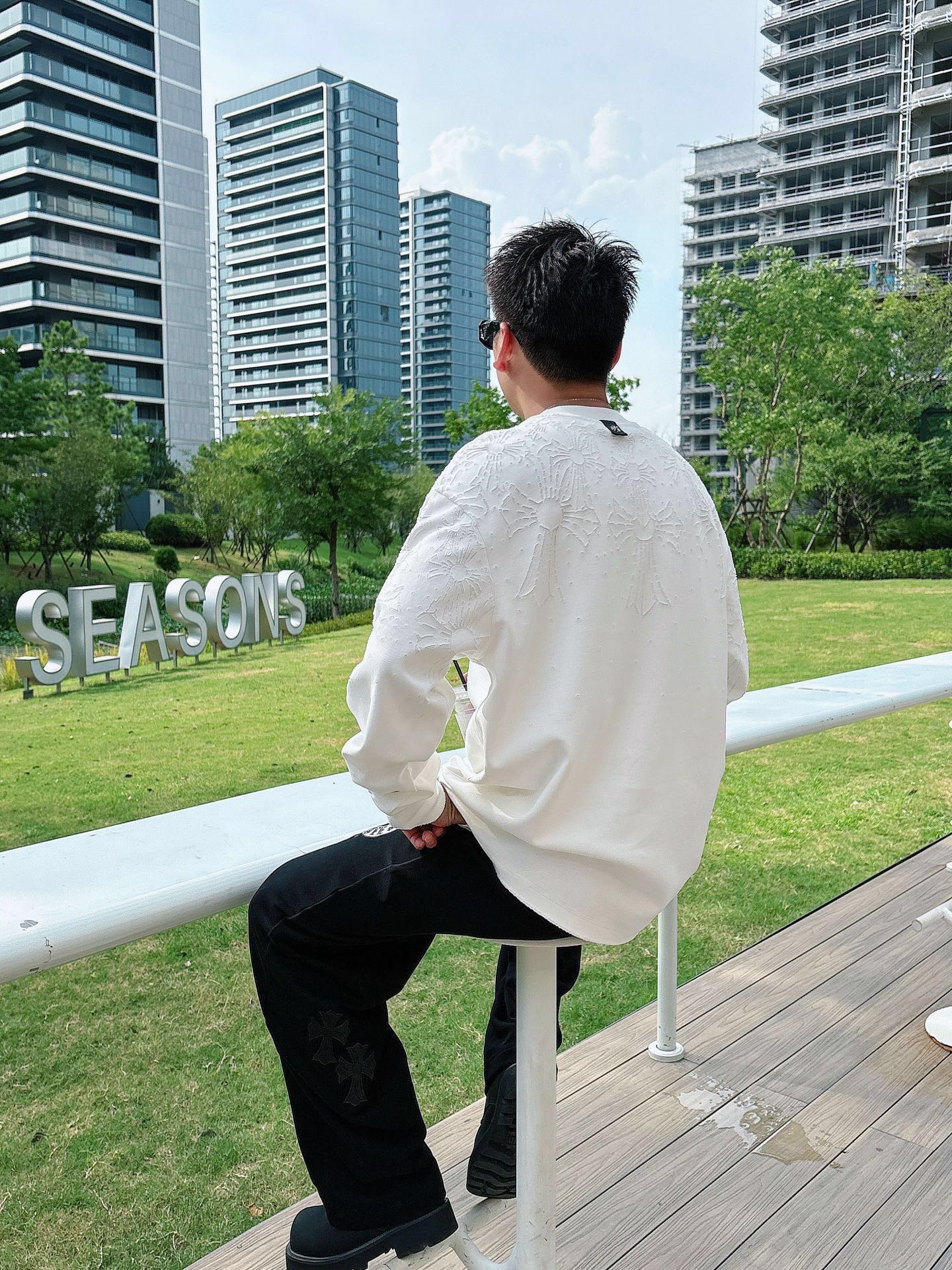 这款衣服是AAAAA 1:1 质量 (非常棒). 使用了和原版一模一样的材料. 商标部分也保持了和克罗心/Chrome Hearts一样. 图片拍摄是实物衣服拍摄, 您所收到的实物保证和我们图片一模一样.