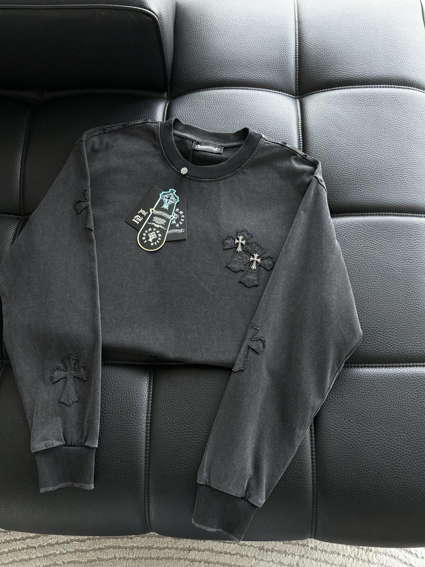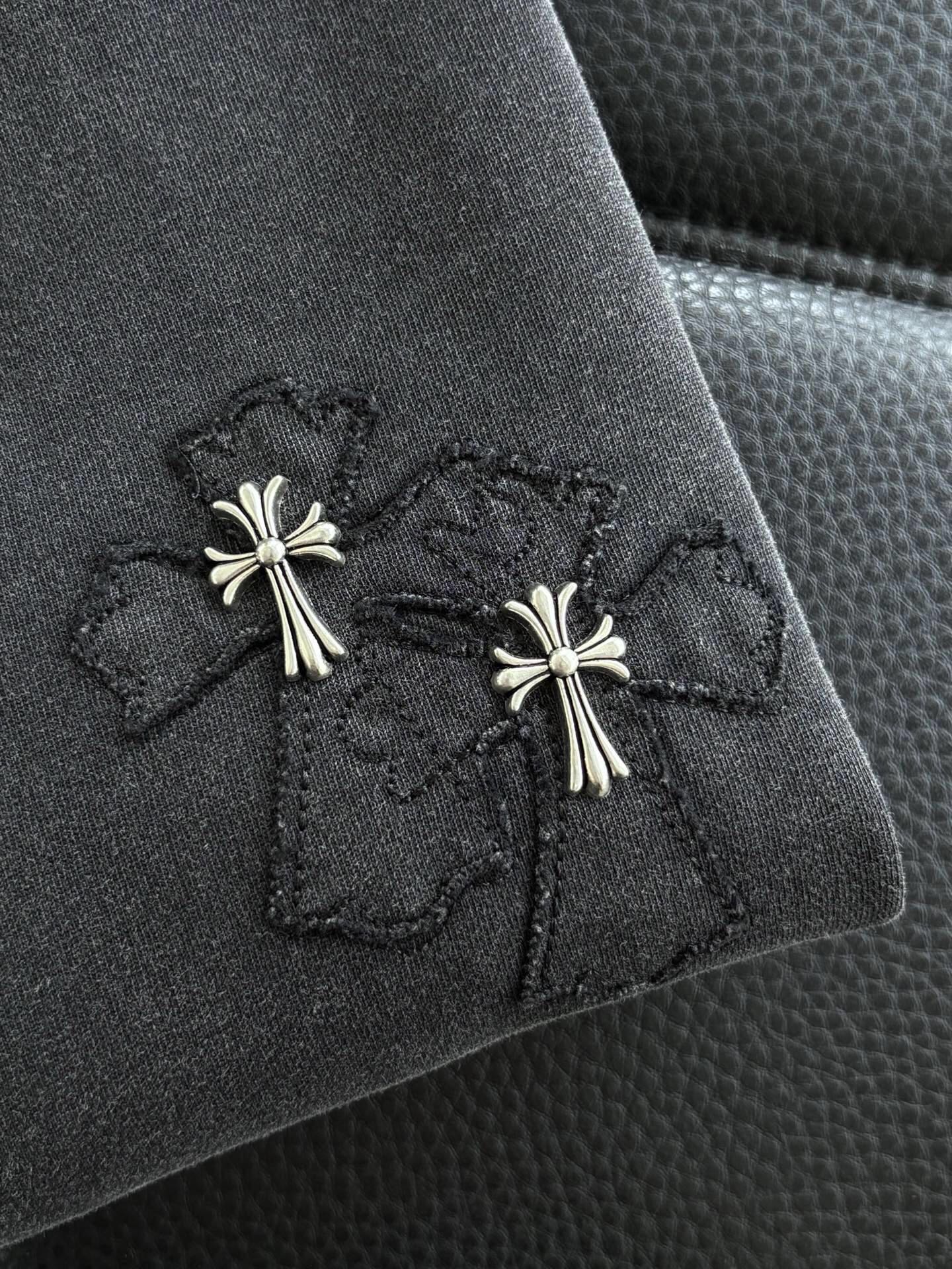 这款衣服是AAAAA 1:1 质量 (非常棒). 使用了和原版一模一样的材料. 商标部分也保持了和克罗心/Chrome Hearts一样. 图片拍摄是实物衣服拍摄, 您所收到的实物保证和我们图片一模一样.