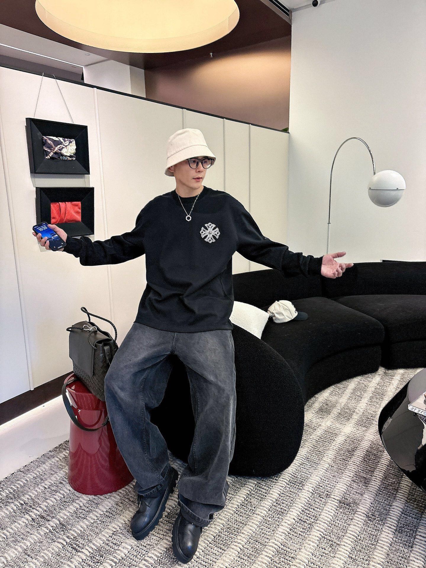这款衣服是AAAAA 1:1 质量 (非常棒). 使用了和原版一模一样的材料. 商标部分也保持了和克罗心/Chrome Hearts一样. 图片拍摄是实物衣服拍摄, 您所收到的实物保证和我们图片一模一样.