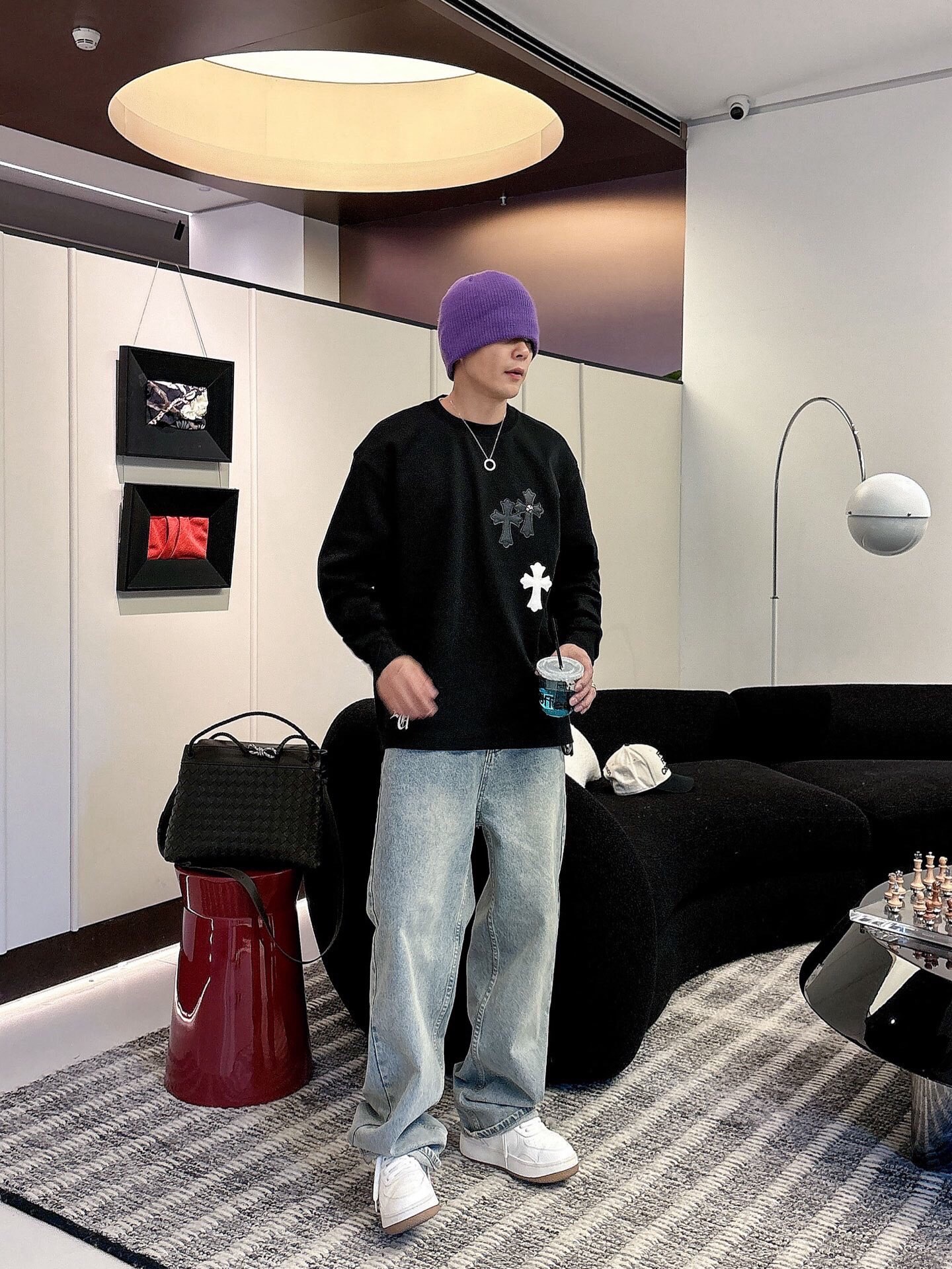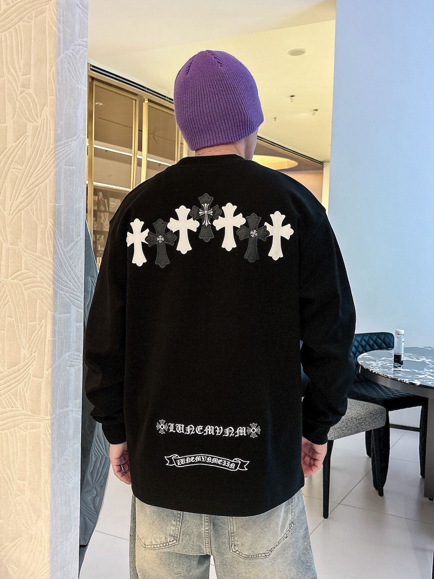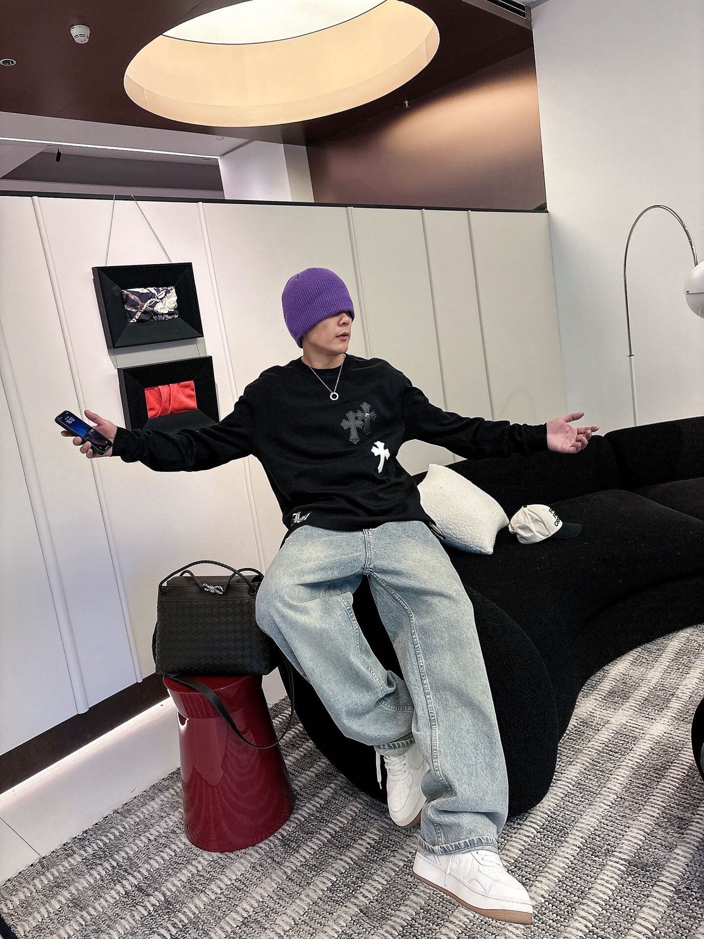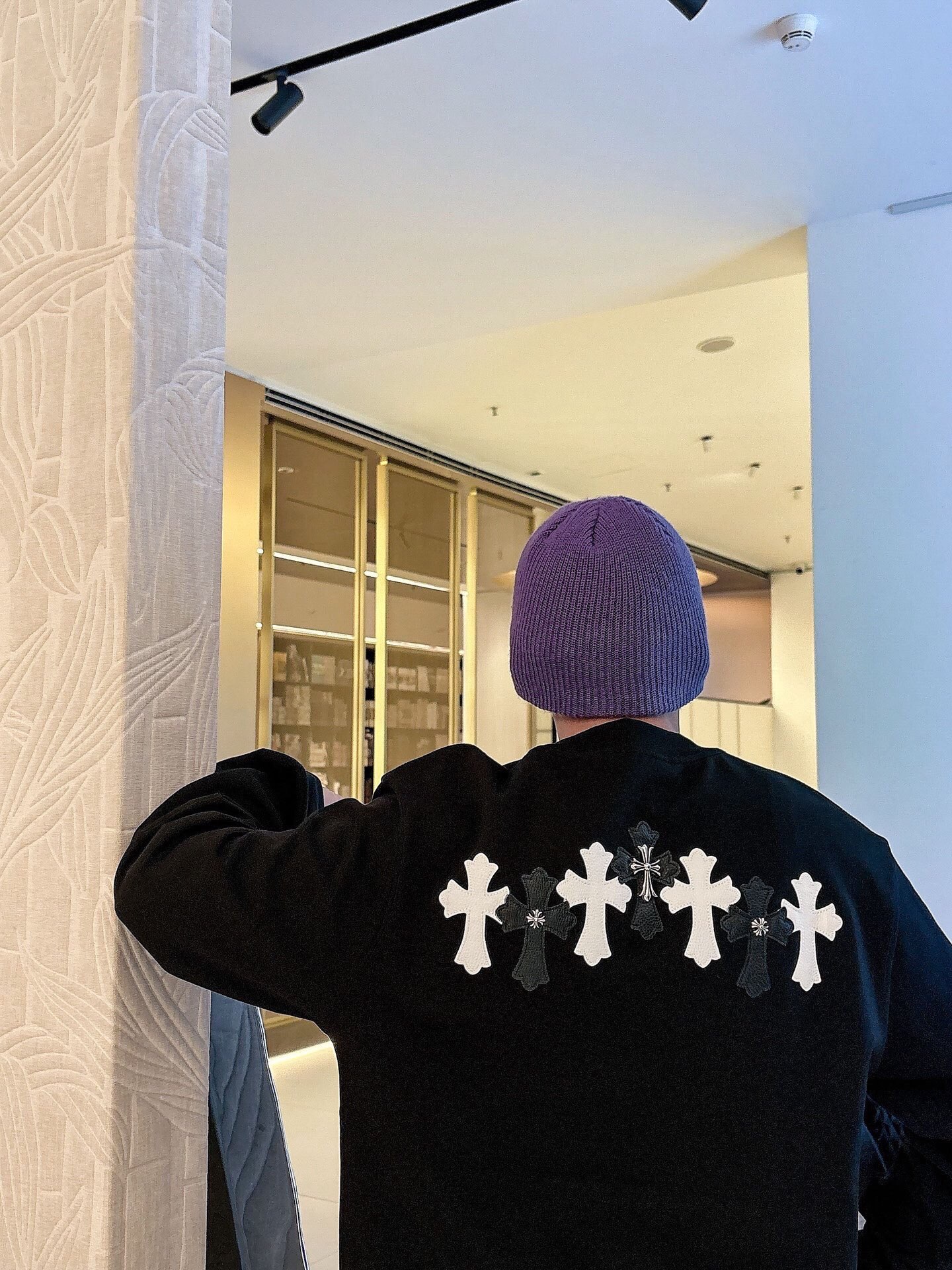 这款衣服是AAAAA 1:1 质量 (非常棒). 使用了和原版一模一样的材料. 商标部分也保持了和克罗心/Chrome Hearts一样. 图片拍摄是实物衣服拍摄, 您所收到的实物保证和我们图片一模一样.