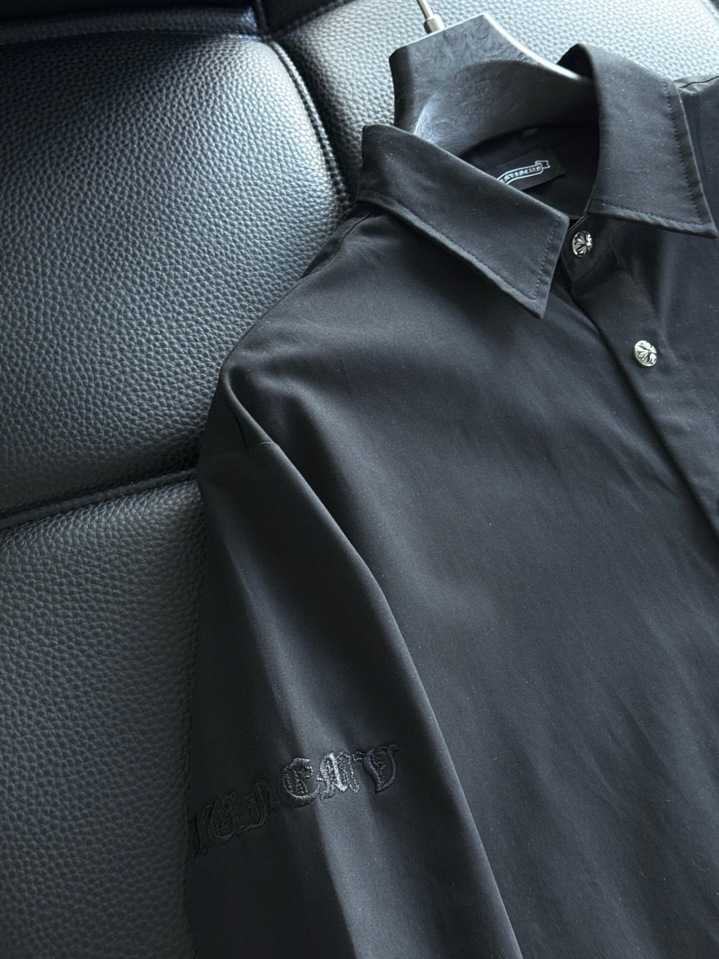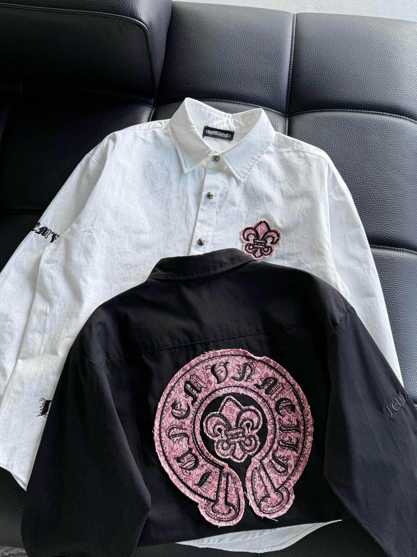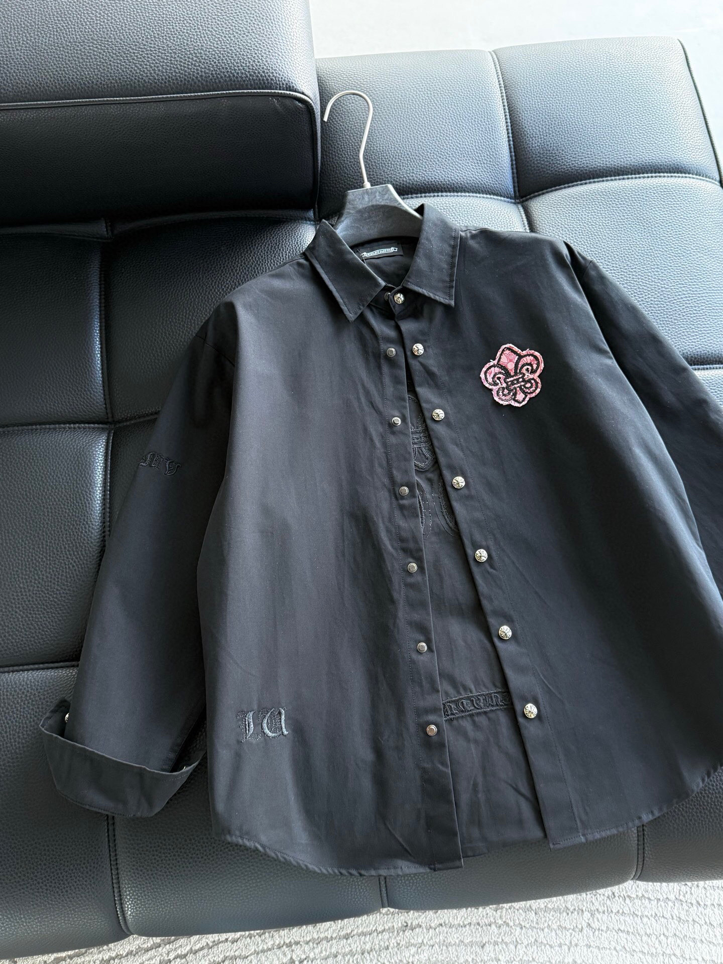 这款衣服是AAAAA 1:1 质量 (非常棒). 使用了和原版一模一样的材料. 商标部分也保持了和克罗心/Chrome Hearts一样. 图片拍摄是实物衣服拍摄, 您所收到的实物保证和我们图片一模一样.
