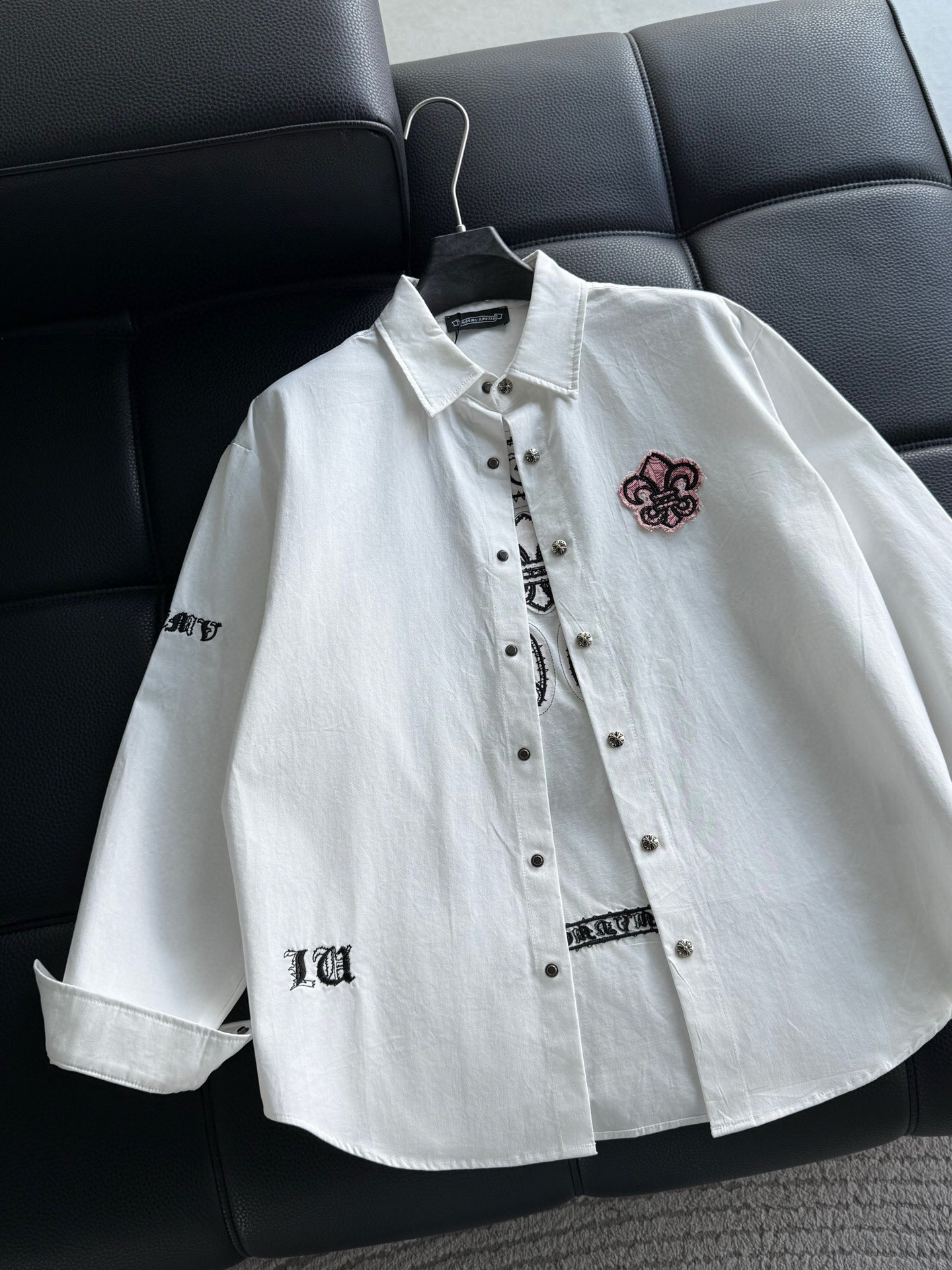 这款衣服是AAAAA 1:1 质量 (非常棒). 使用了和原版一模一样的材料. 商标部分也保持了和克罗心/Chrome Hearts一样. 图片拍摄是实物衣服拍摄, 您所收到的实物保证和我们图片一模一样.