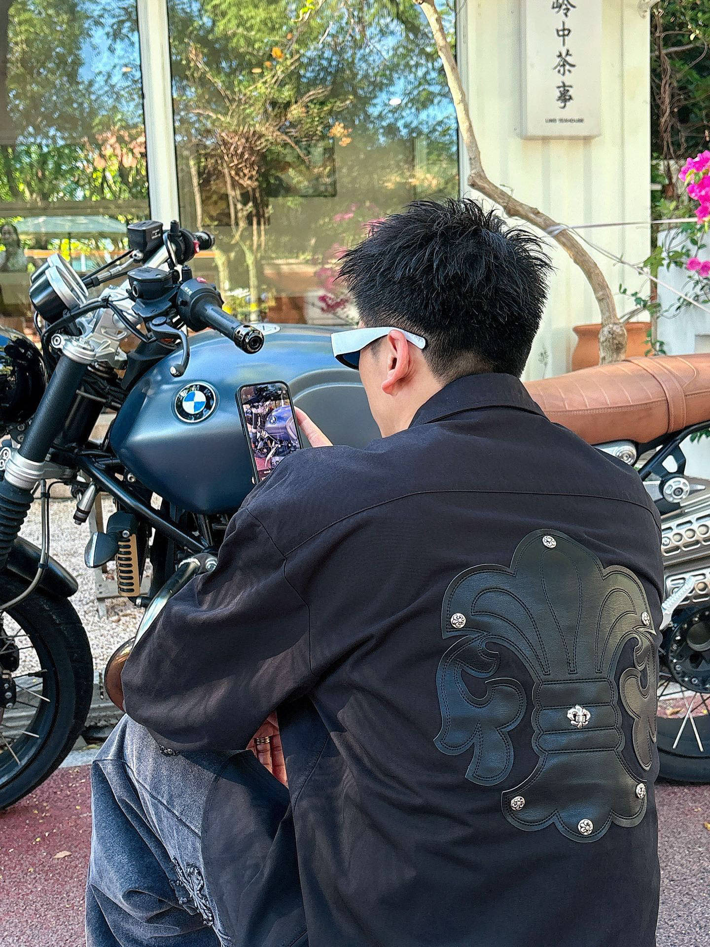 这款衣服是AAAAA 1:1 质量 (非常棒). 使用了和原版一模一样的材料. 商标部分也保持了和克罗心/Chrome Hearts一样. 图片拍摄是实物衣服拍摄, 您所收到的实物保证和我们图片一模一样.