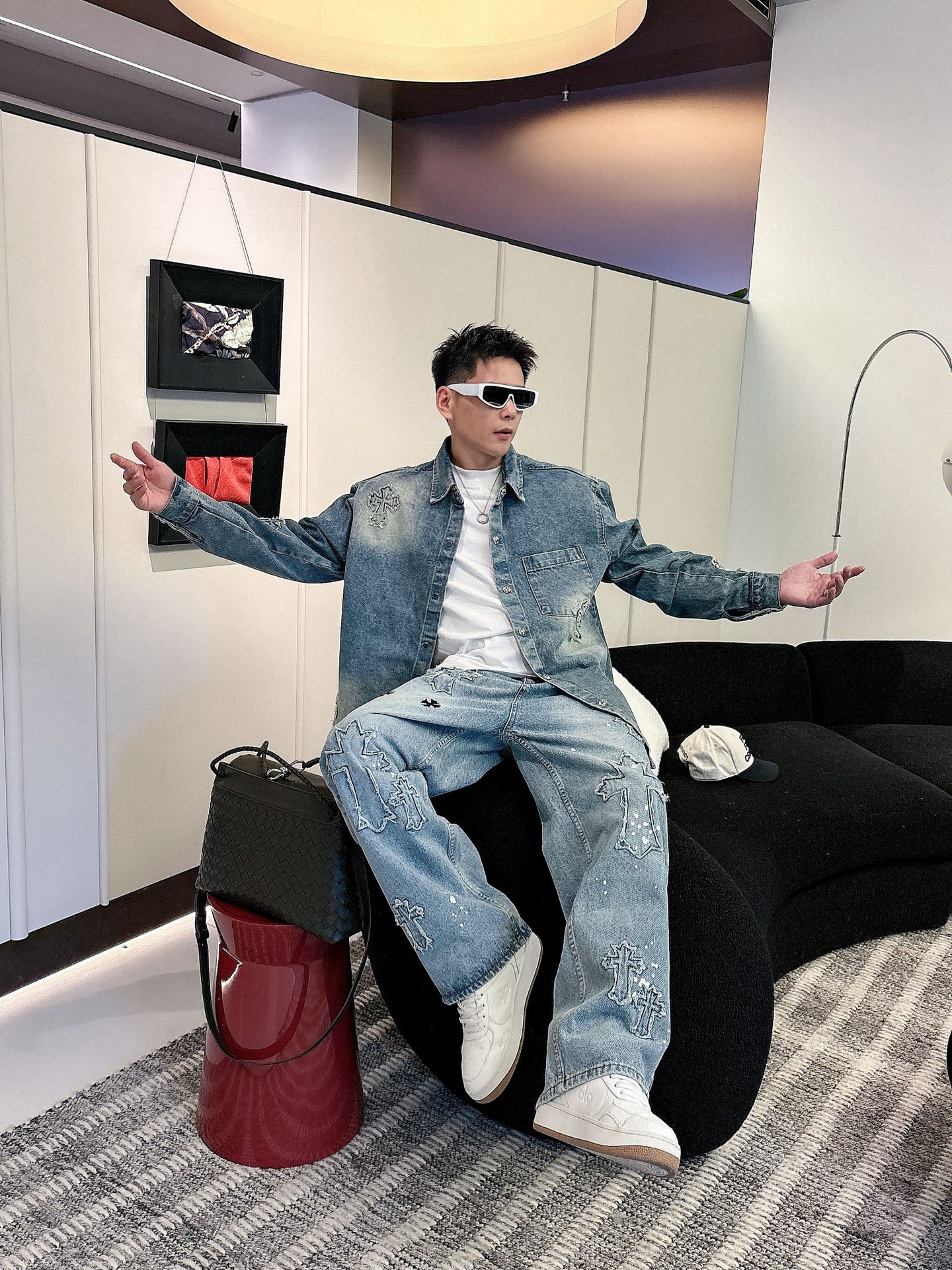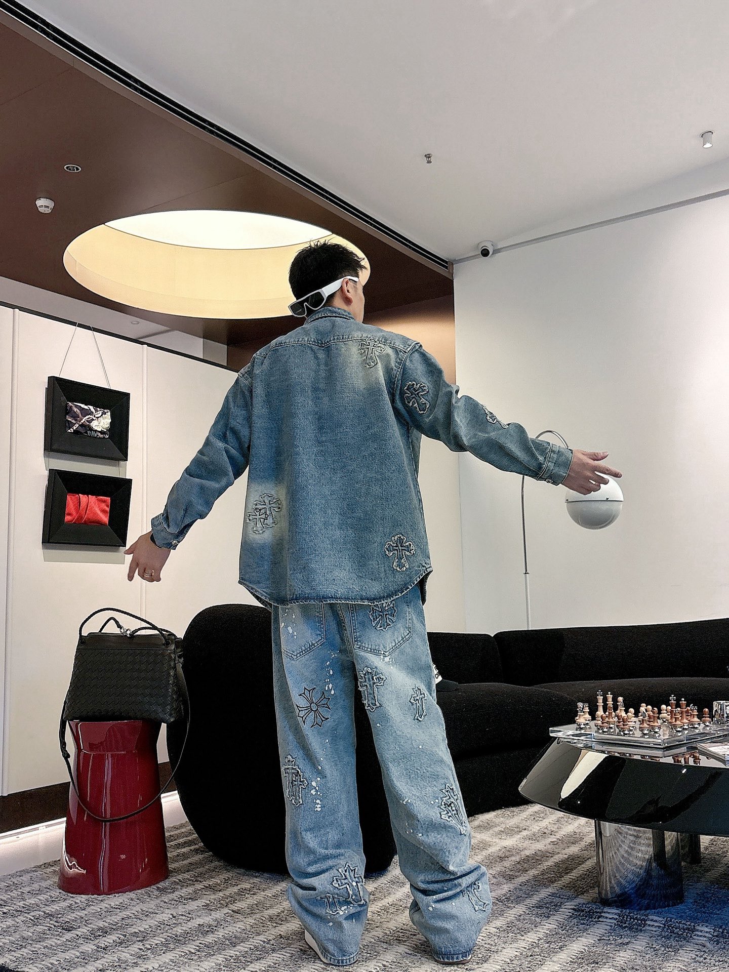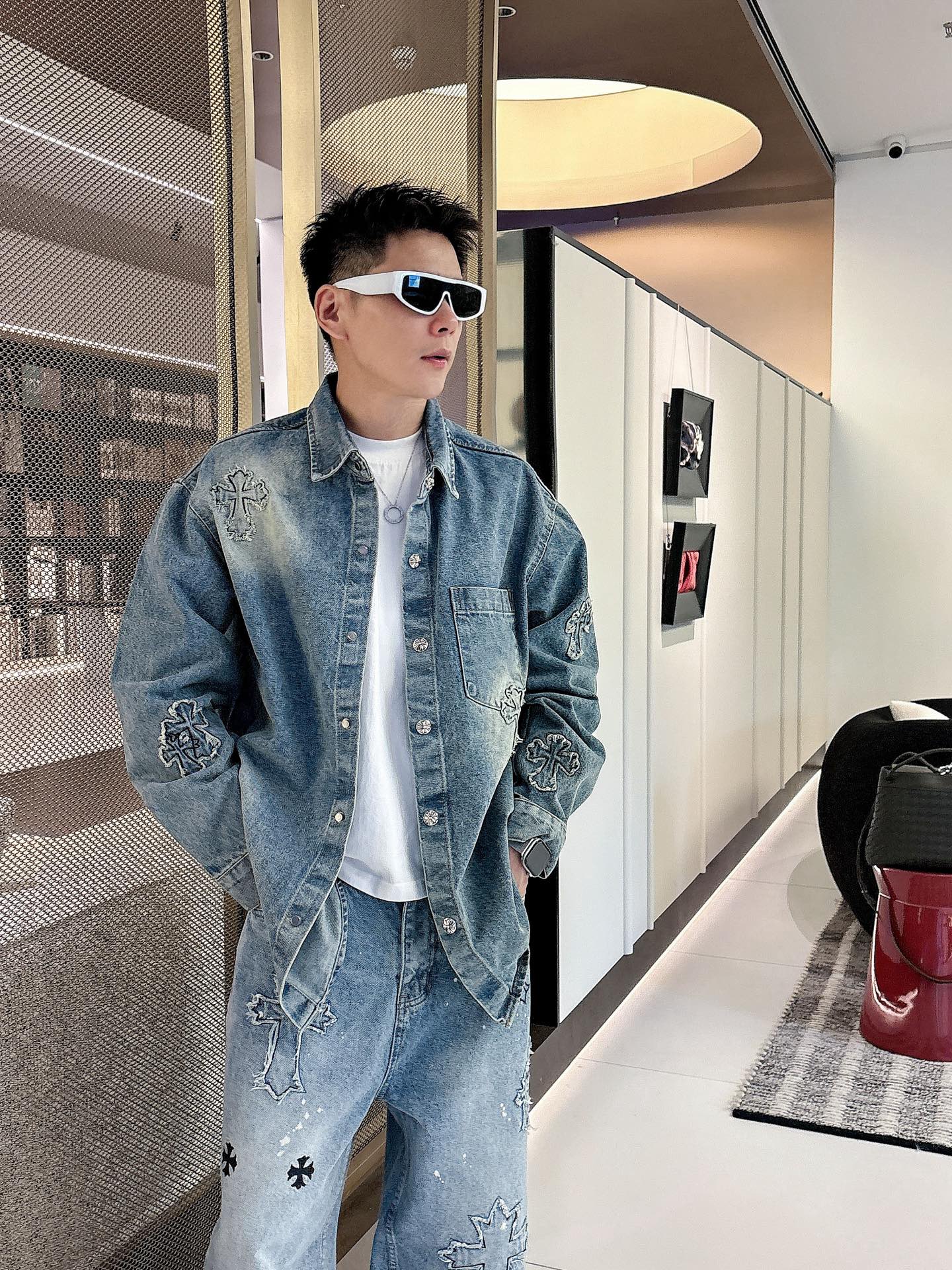 这款衣服是AAAAA 1:1 质量 (非常棒). 使用了和原版一模一样的材料. 商标部分也保持了和克罗心/Chrome Hearts一样. 图片拍摄是实物衣服拍摄, 您所收到的实物保证和我们图片一模一样.